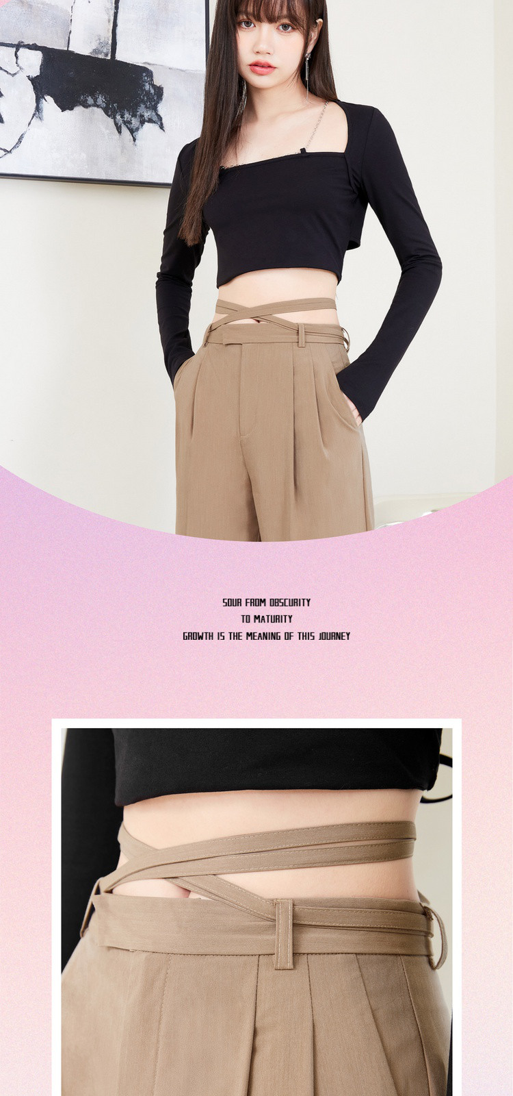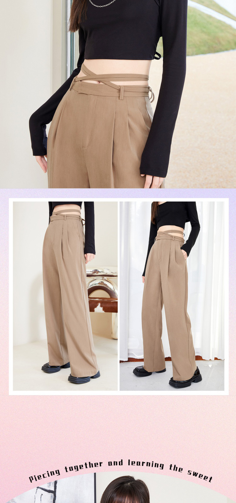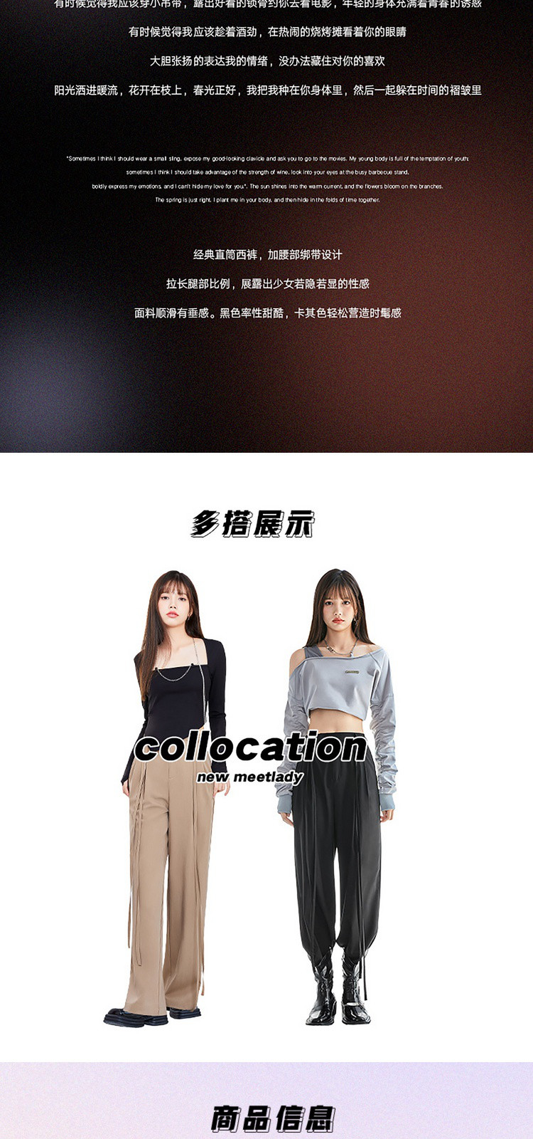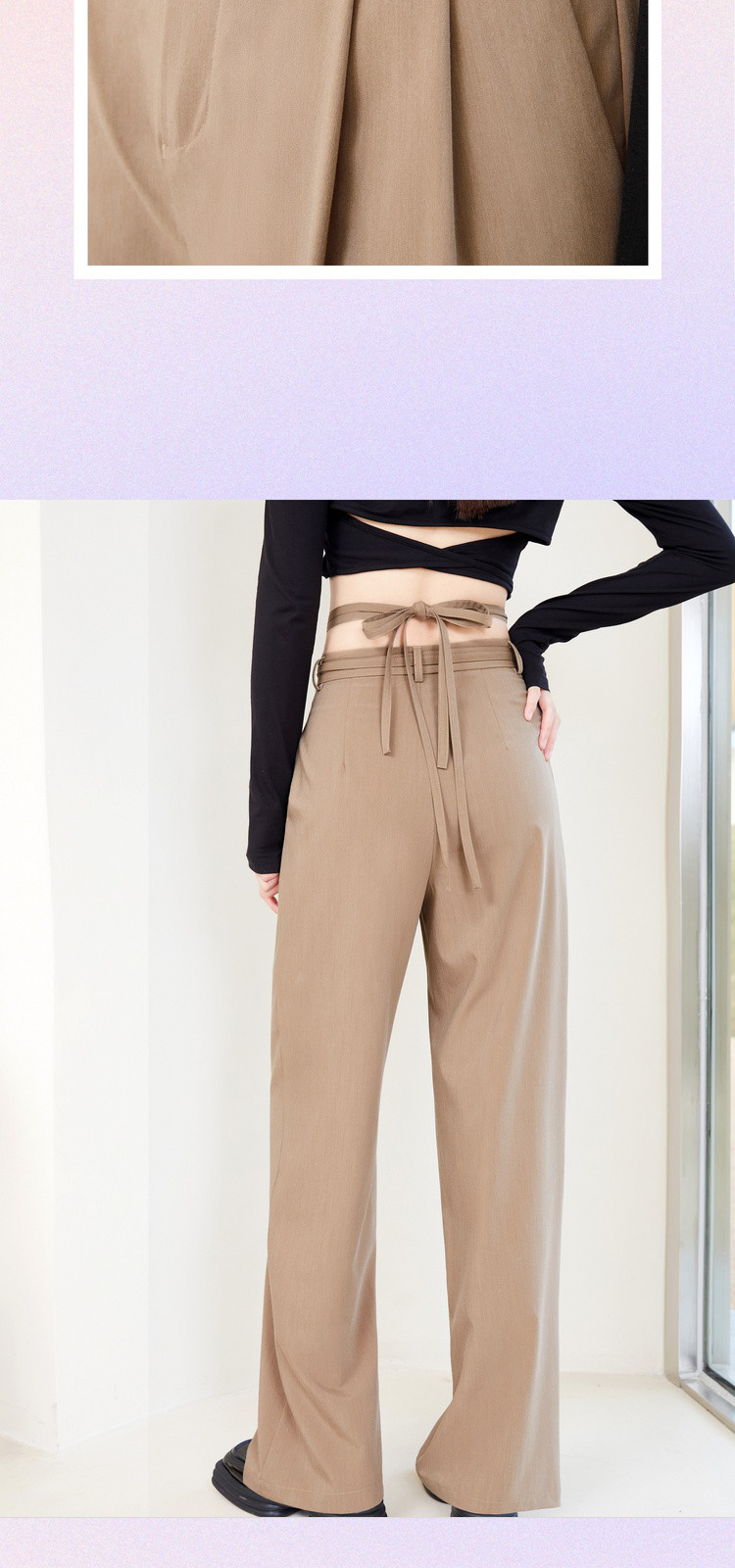 商品名称:春秋纯色直筒休闲裤女绑带简约百搭坠感梭织阔腿裤 295380