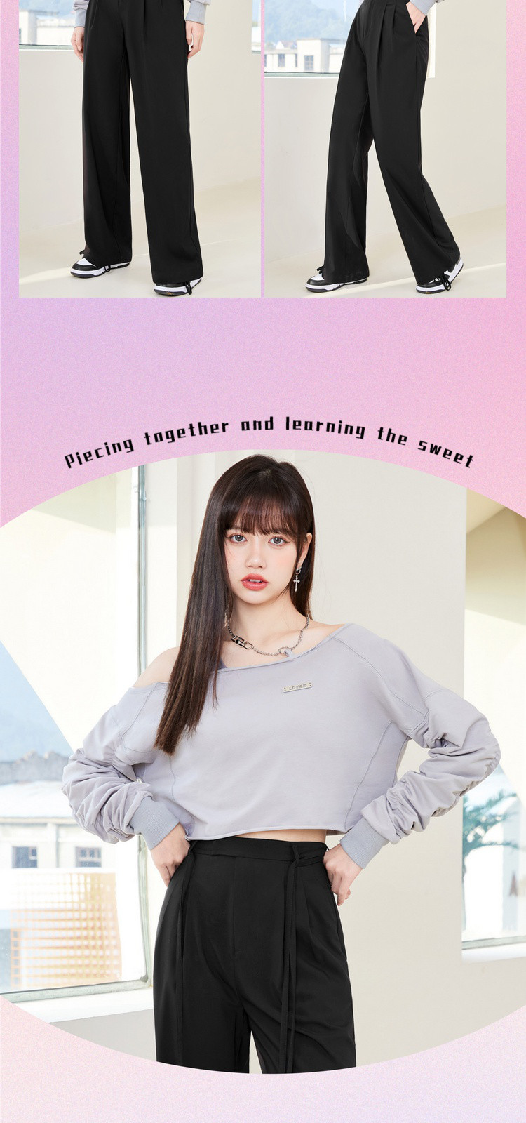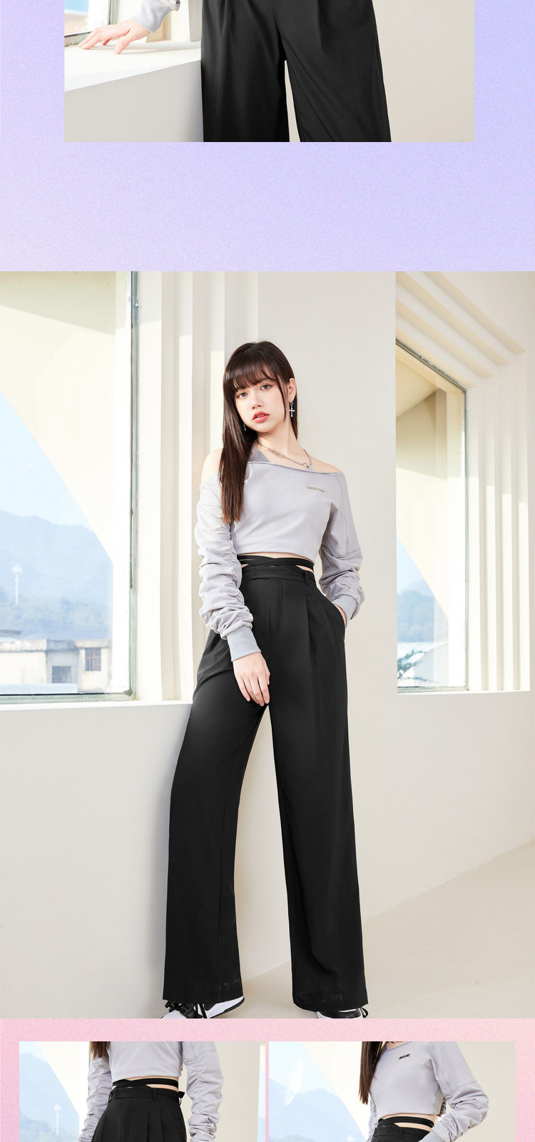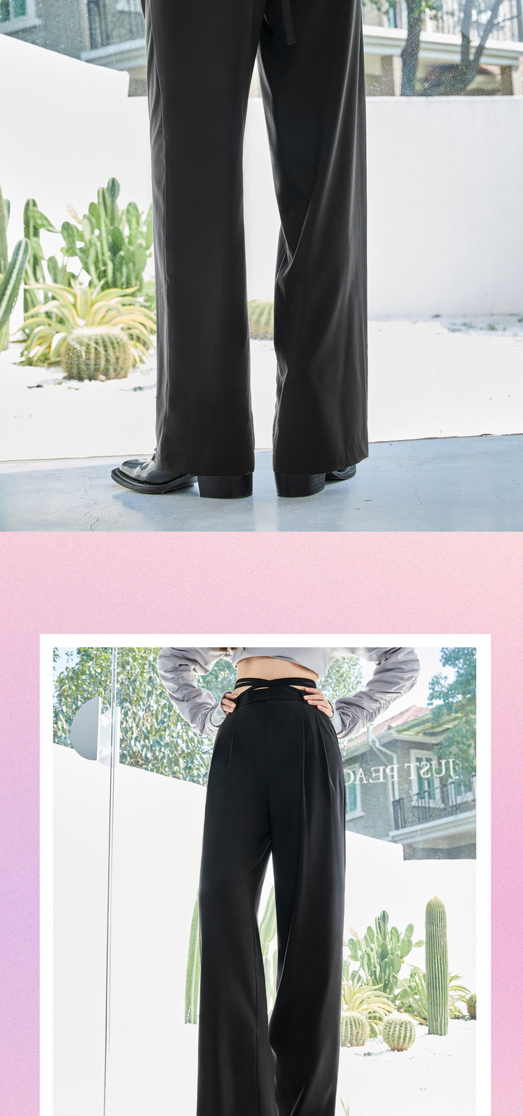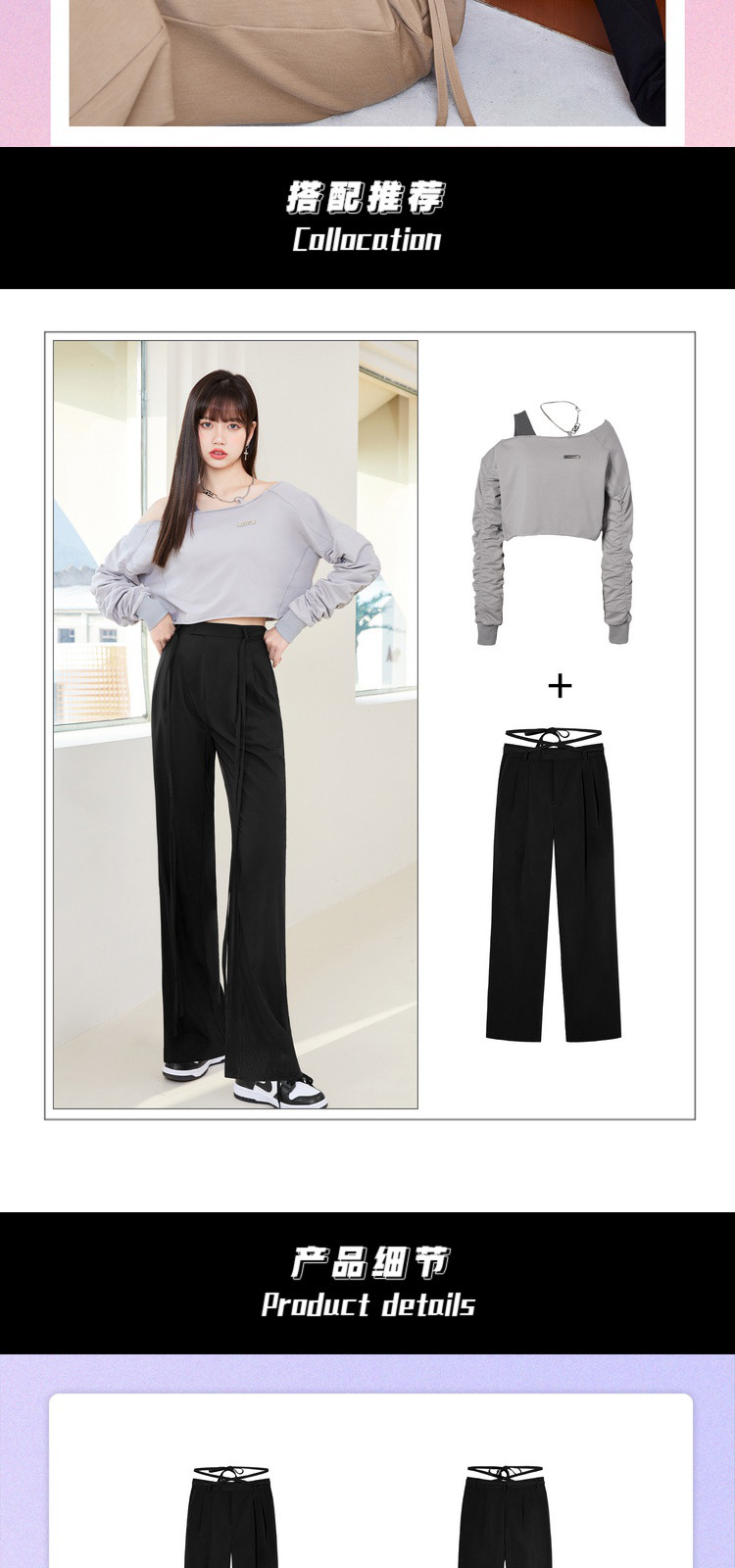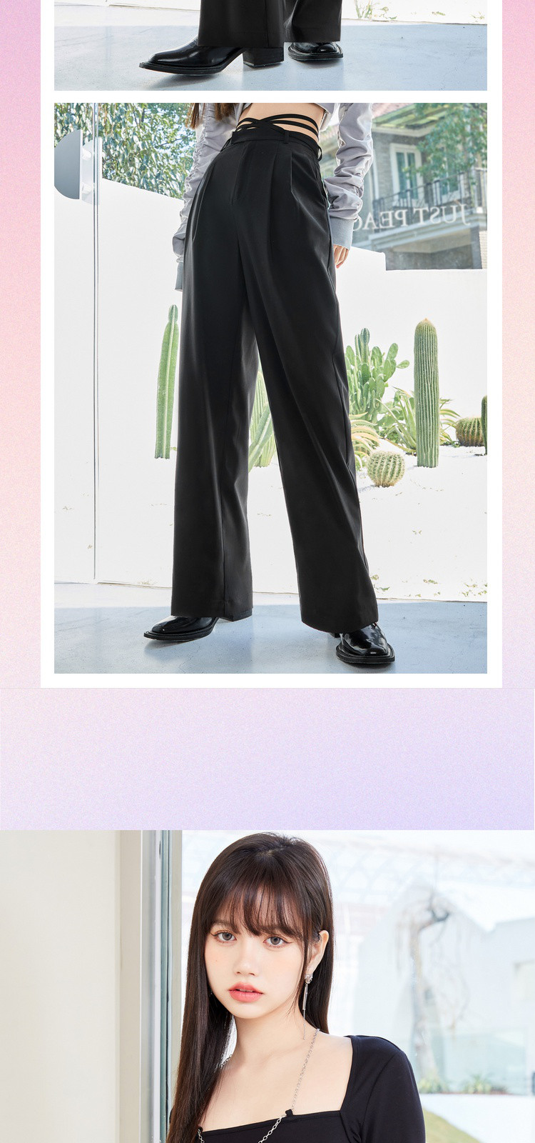 商品名称:春秋纯色直筒休闲裤女绑带简约百搭坠感梭织阔腿裤 295380