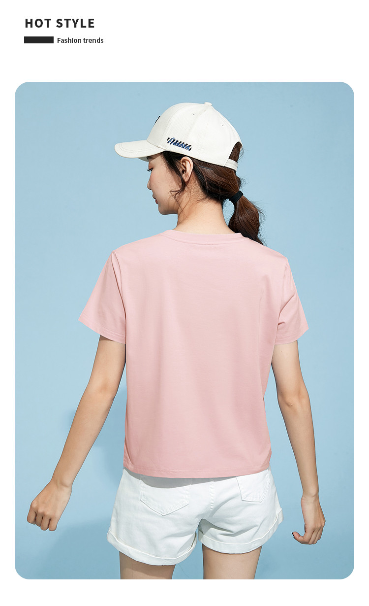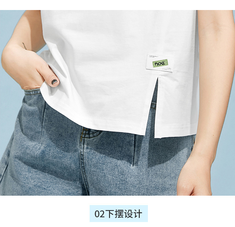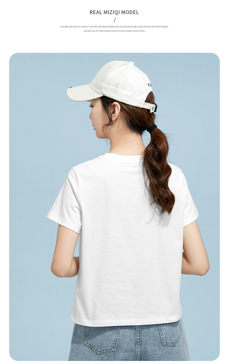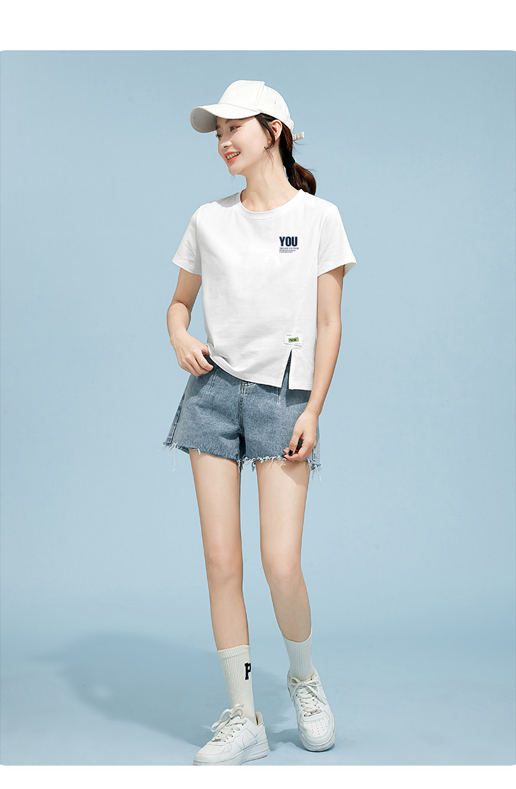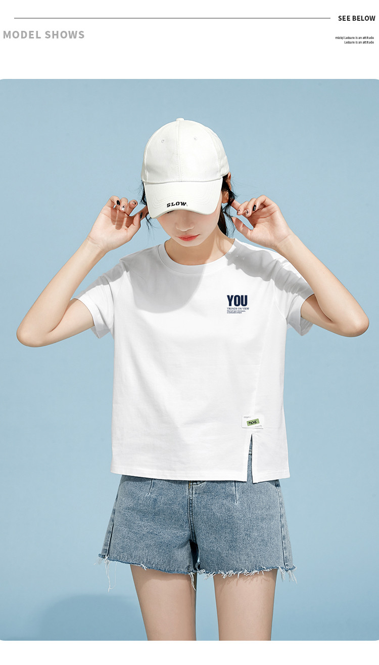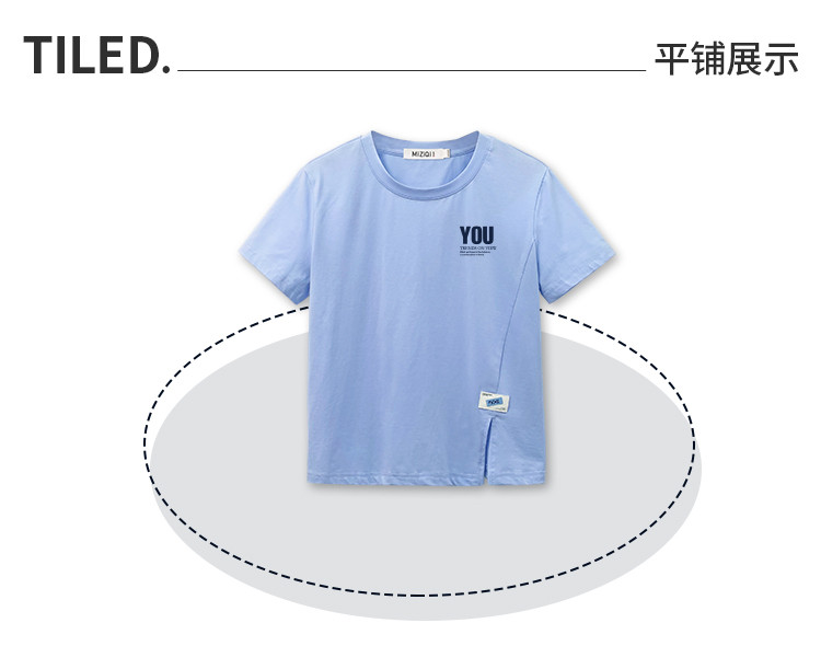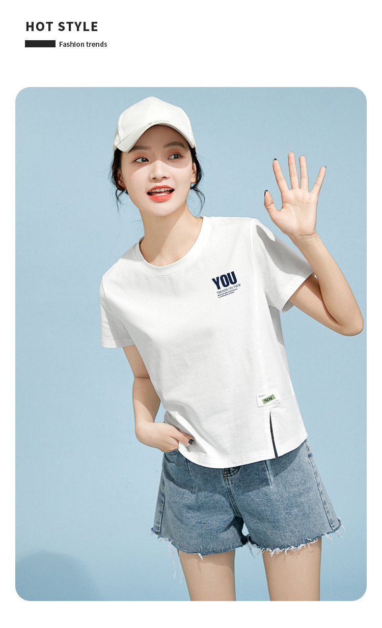 商品名称:米子旗夏季圆领印花T恤女下摆开叉设计宽松休闲短袖上衣 948890
