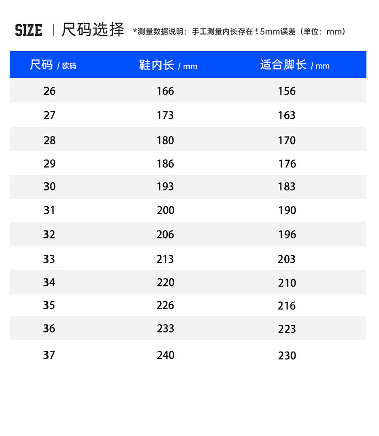 鞋内长(mm)