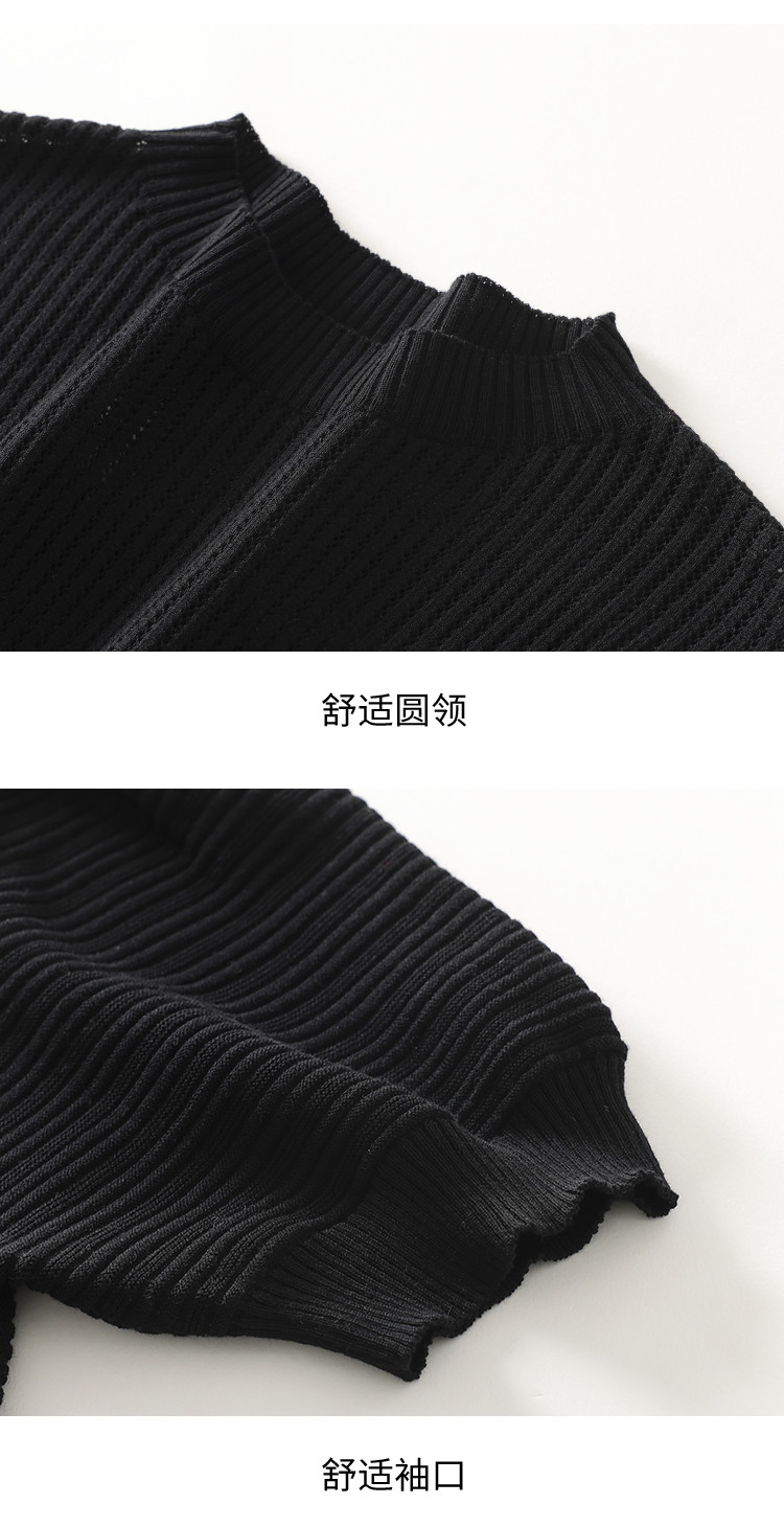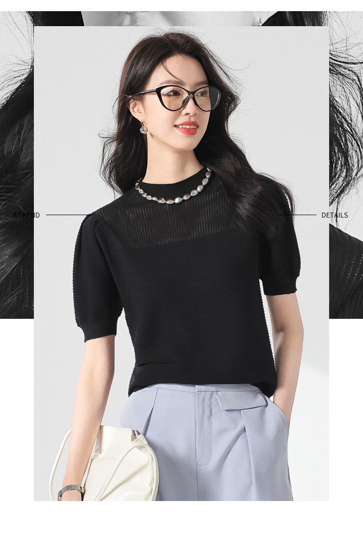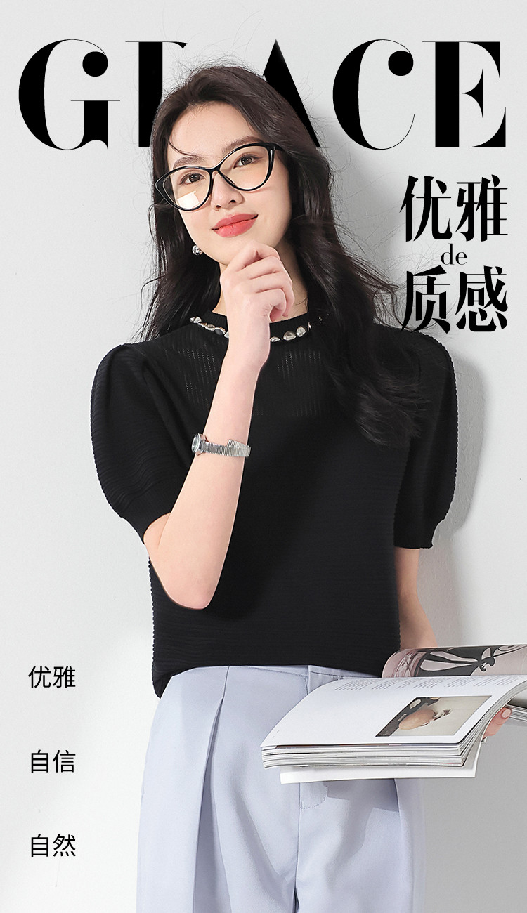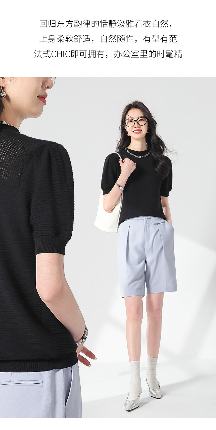 商品名称:【含桑蚕丝】轻薄透气纯色泡泡袖针织衫女夏短袖T恤 083155