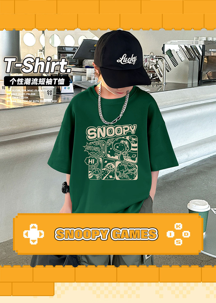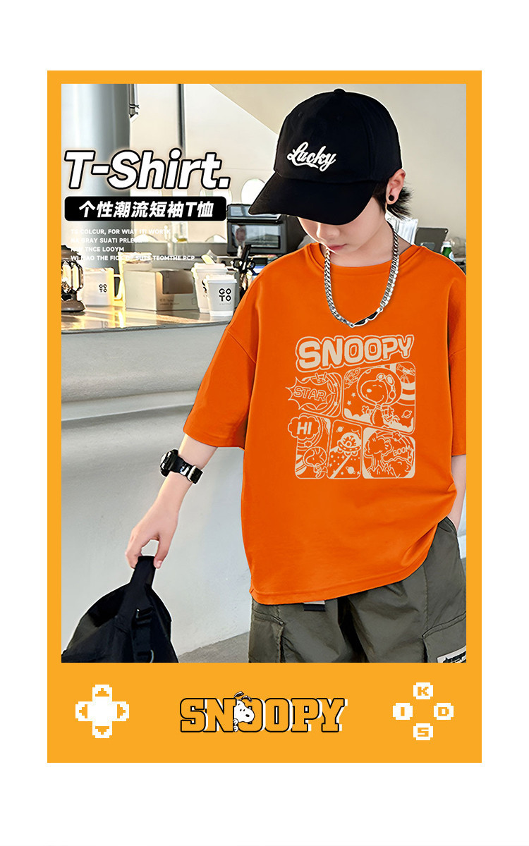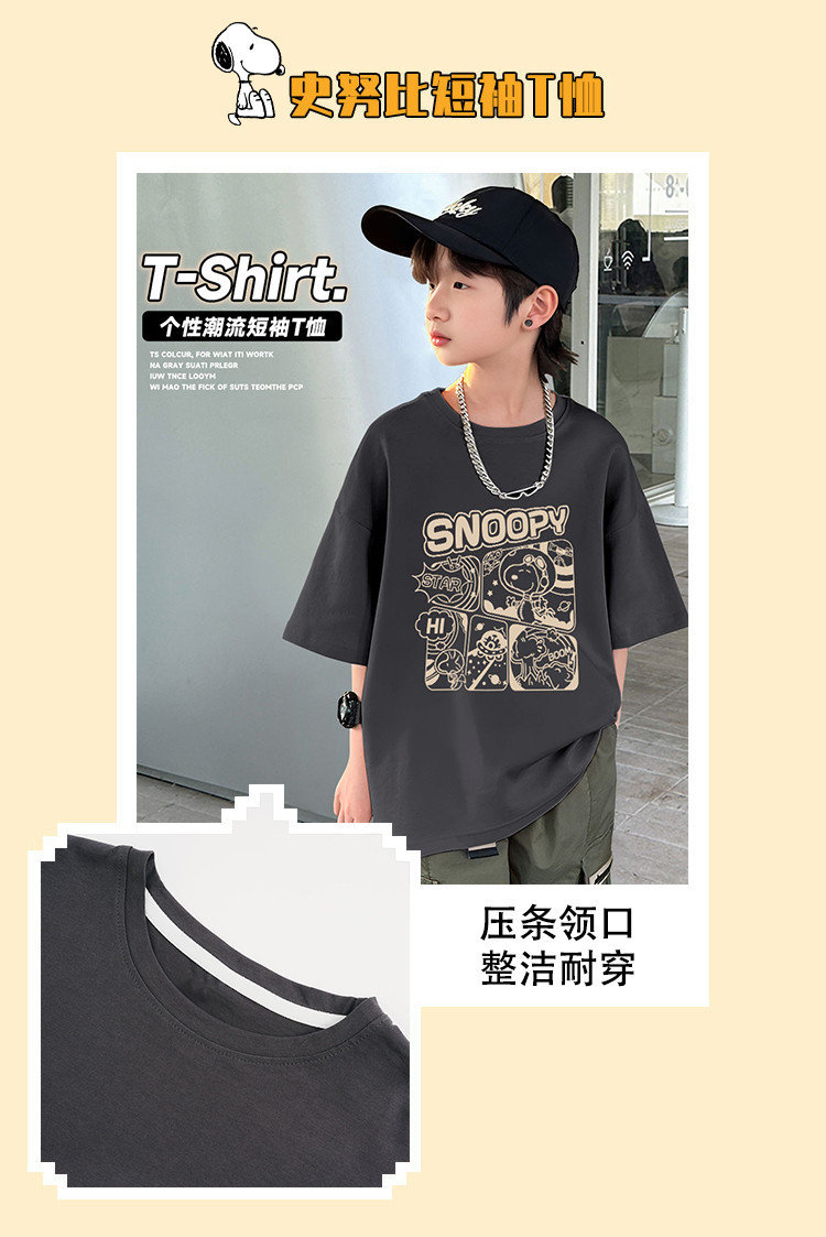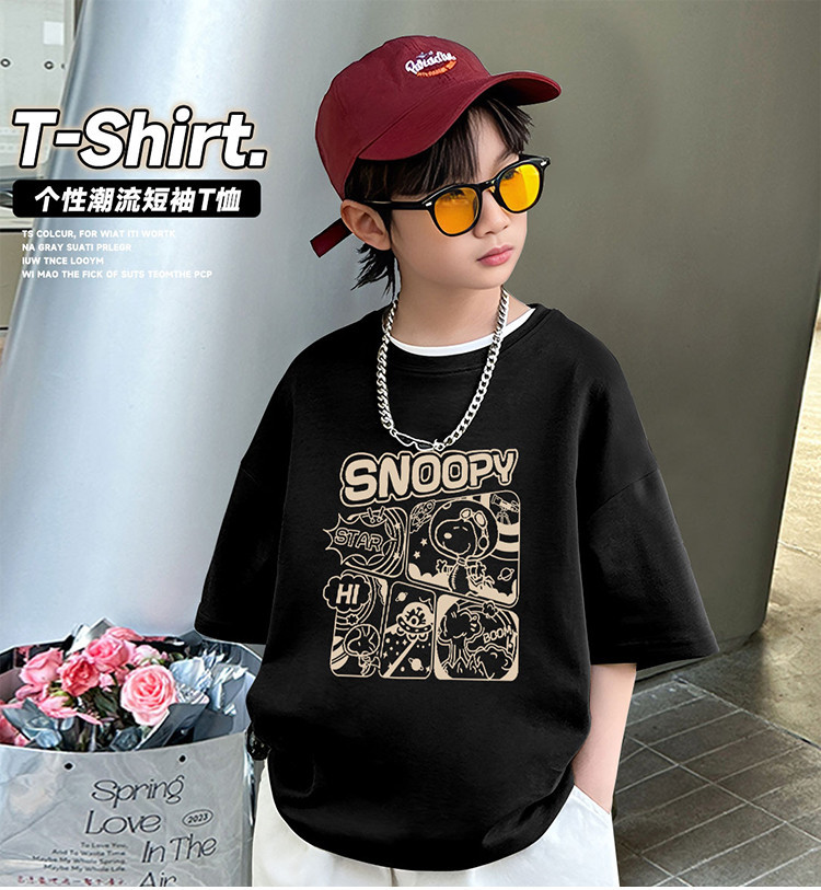 商品名称:2025夏季男童纯棉短袖T恤时尚潮流中大童休闲宽松运动上衣 353119