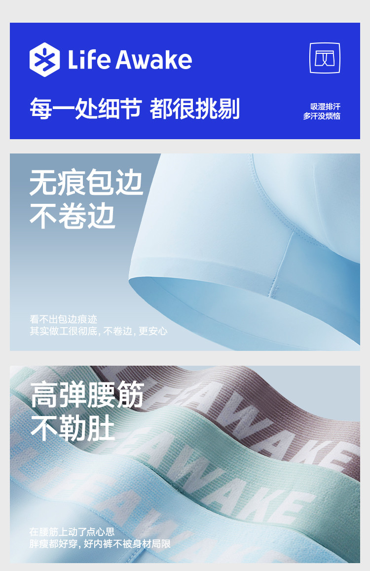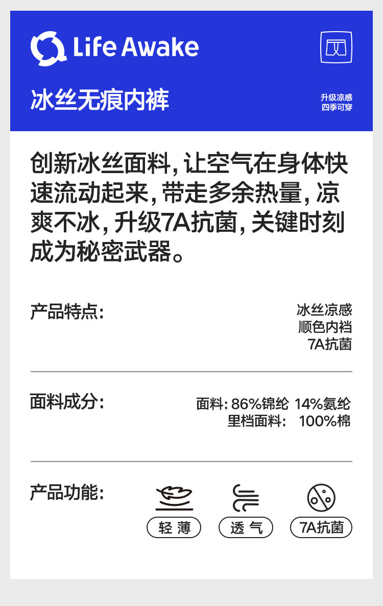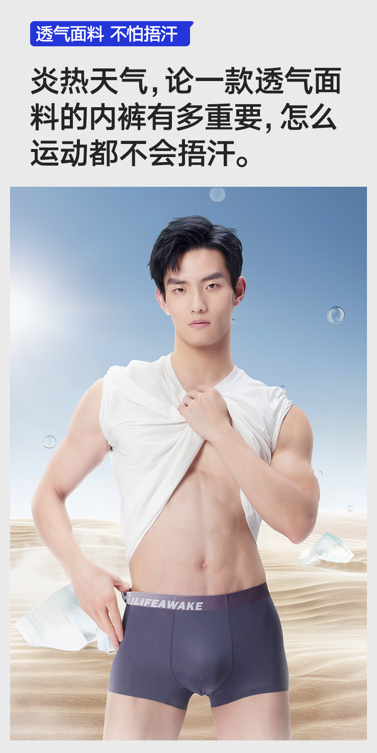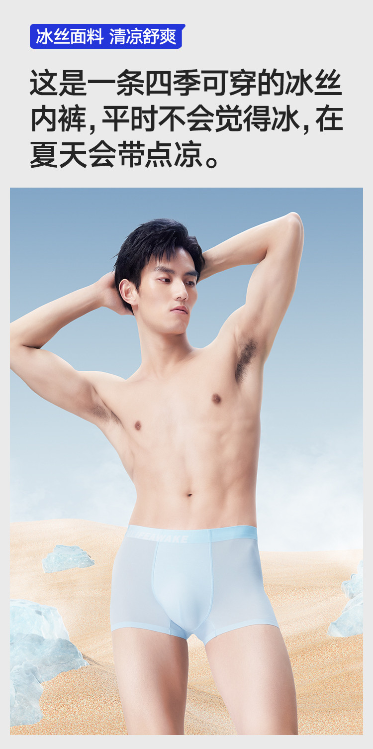 商品名称:【冰丝凉感 7A抑菌消臭】3条装夏季男士超薄无痕内裤平角短裤 339354