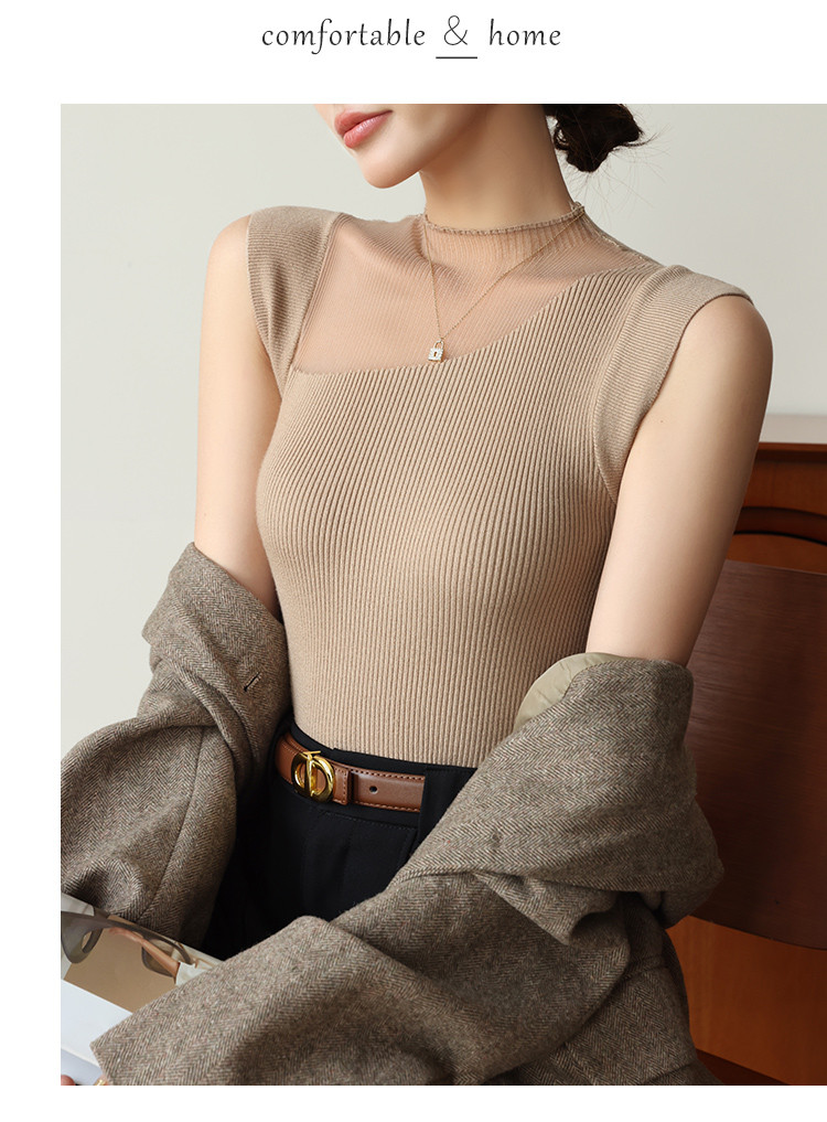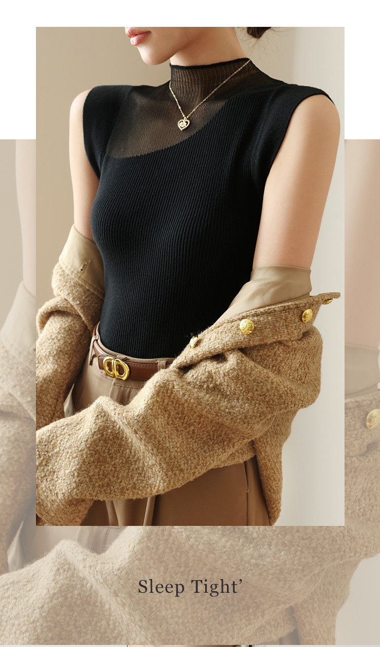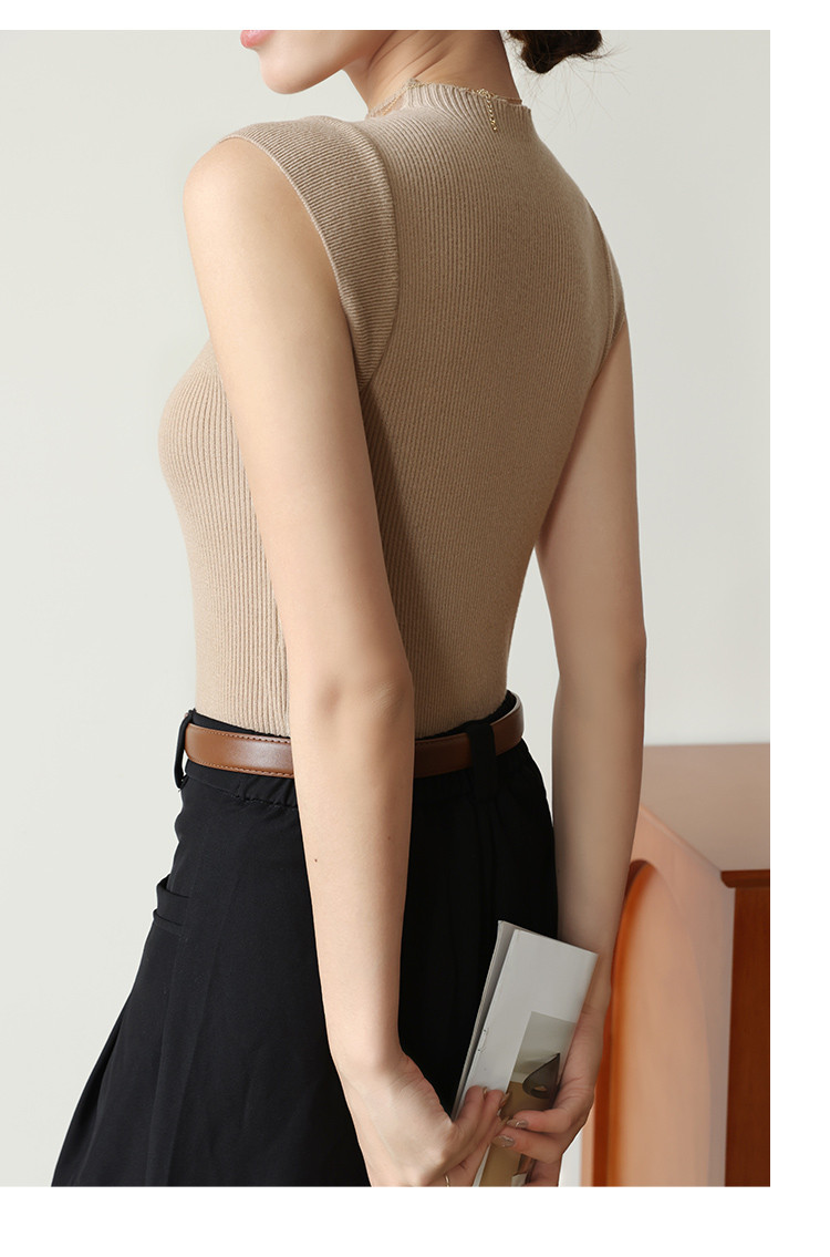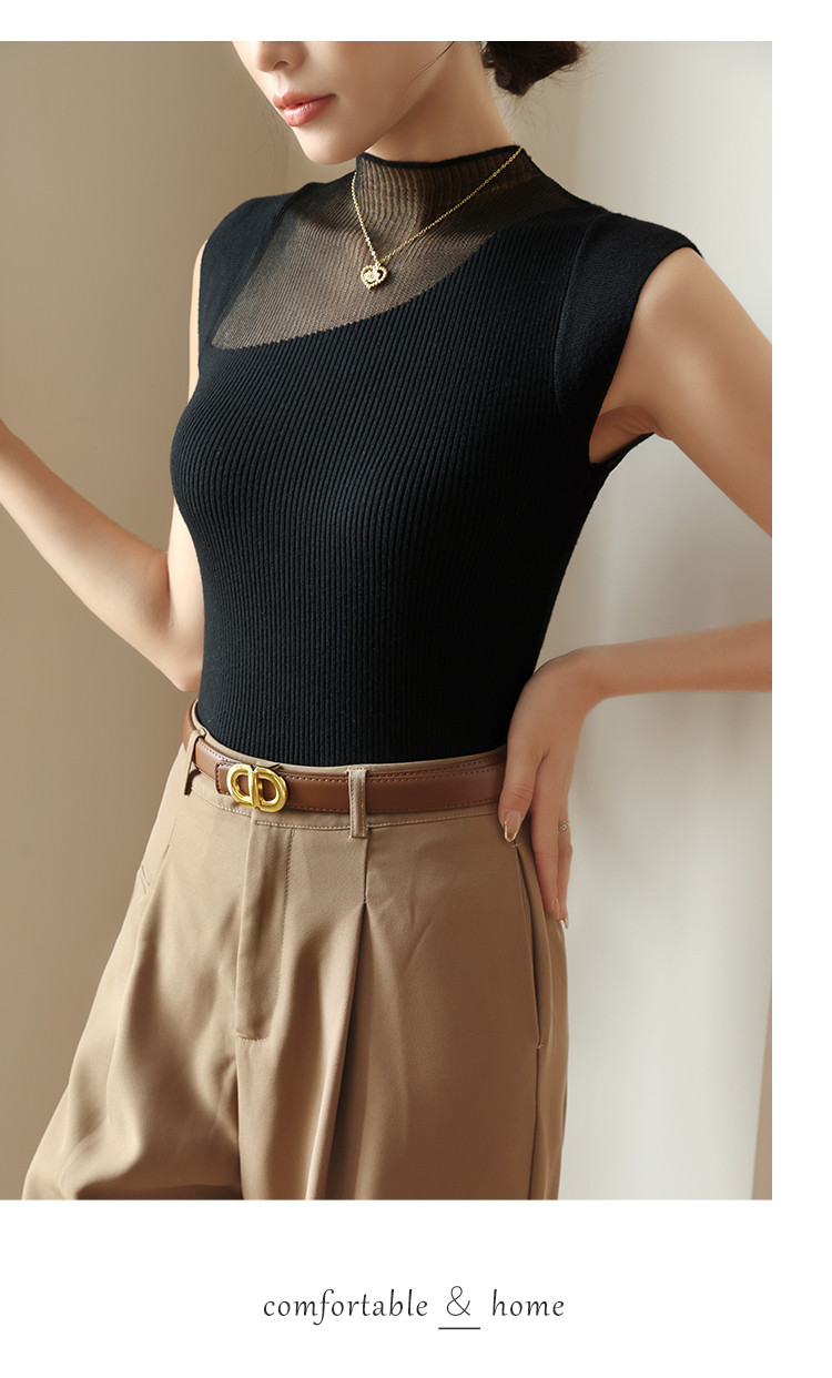 商品名称:【半高领镂空】基础时尚百搭舒适亲肤针织性感打底背心女打底内搭 025867