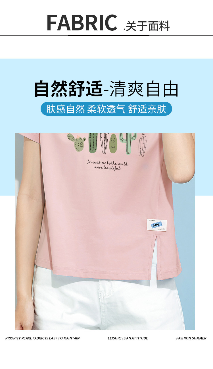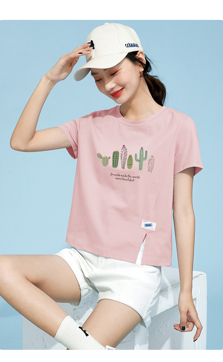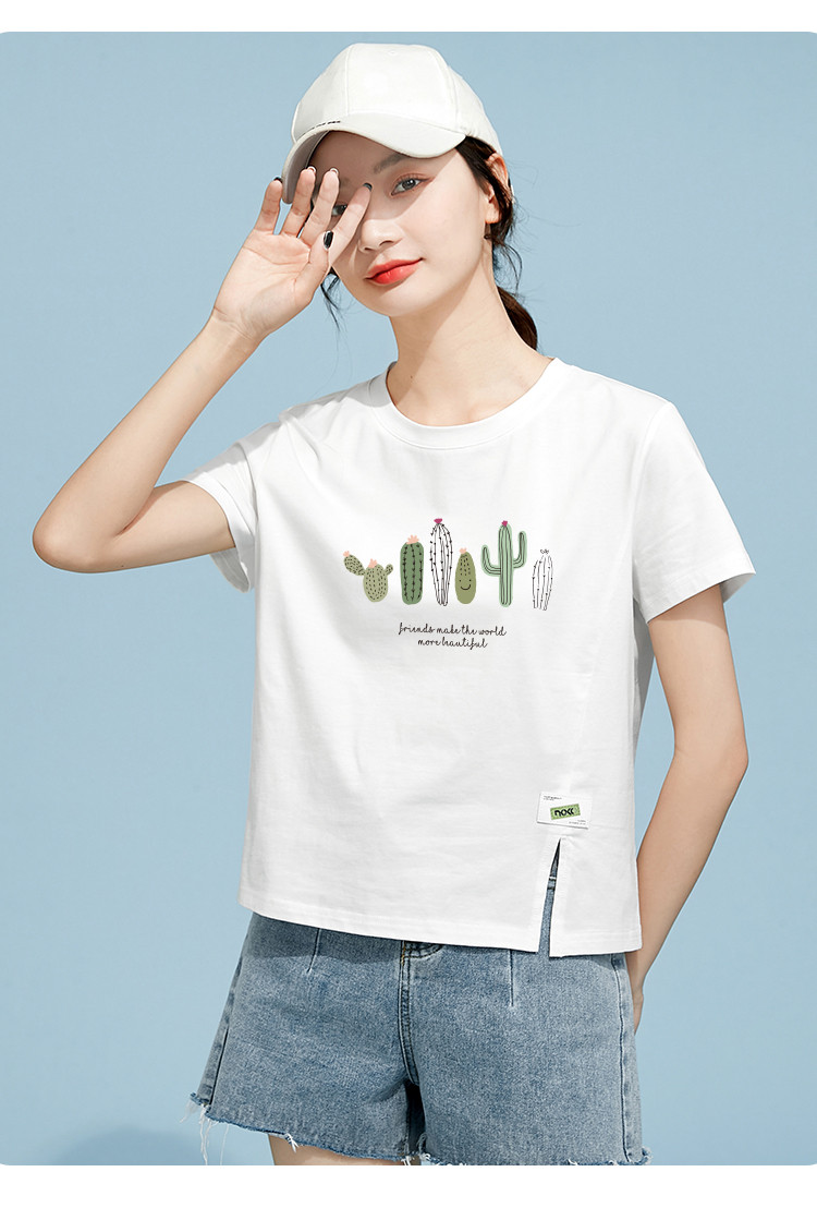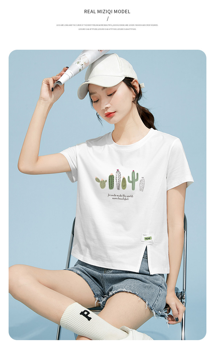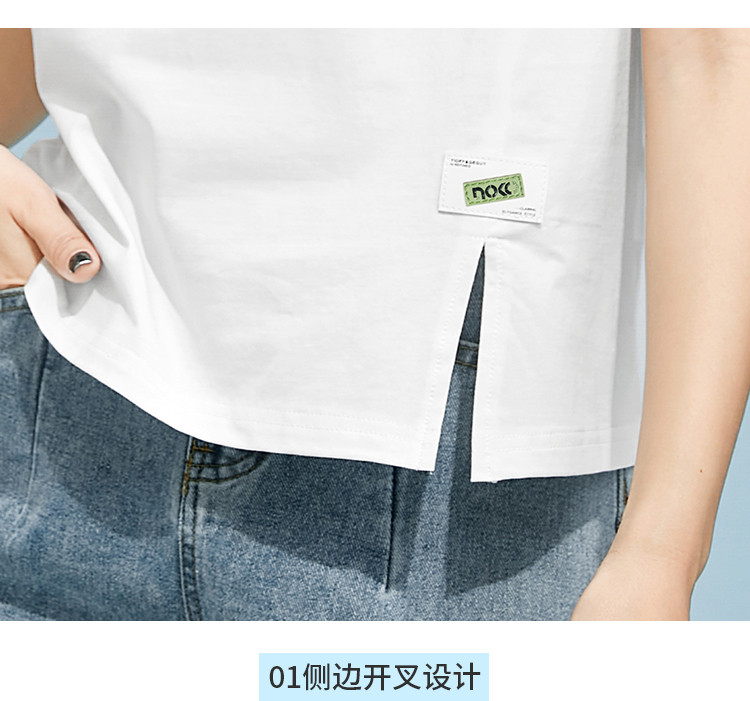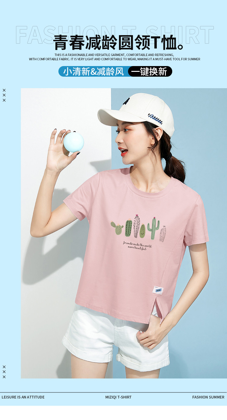 商品名称:米子旗夏装款圆领印花T恤女宽松侧边开叉短袖上衣 182426