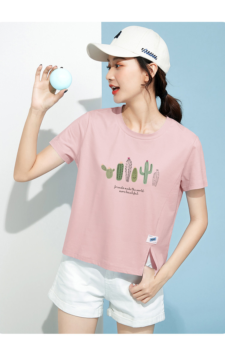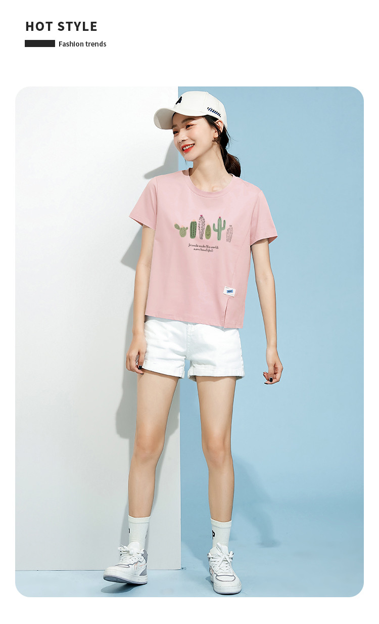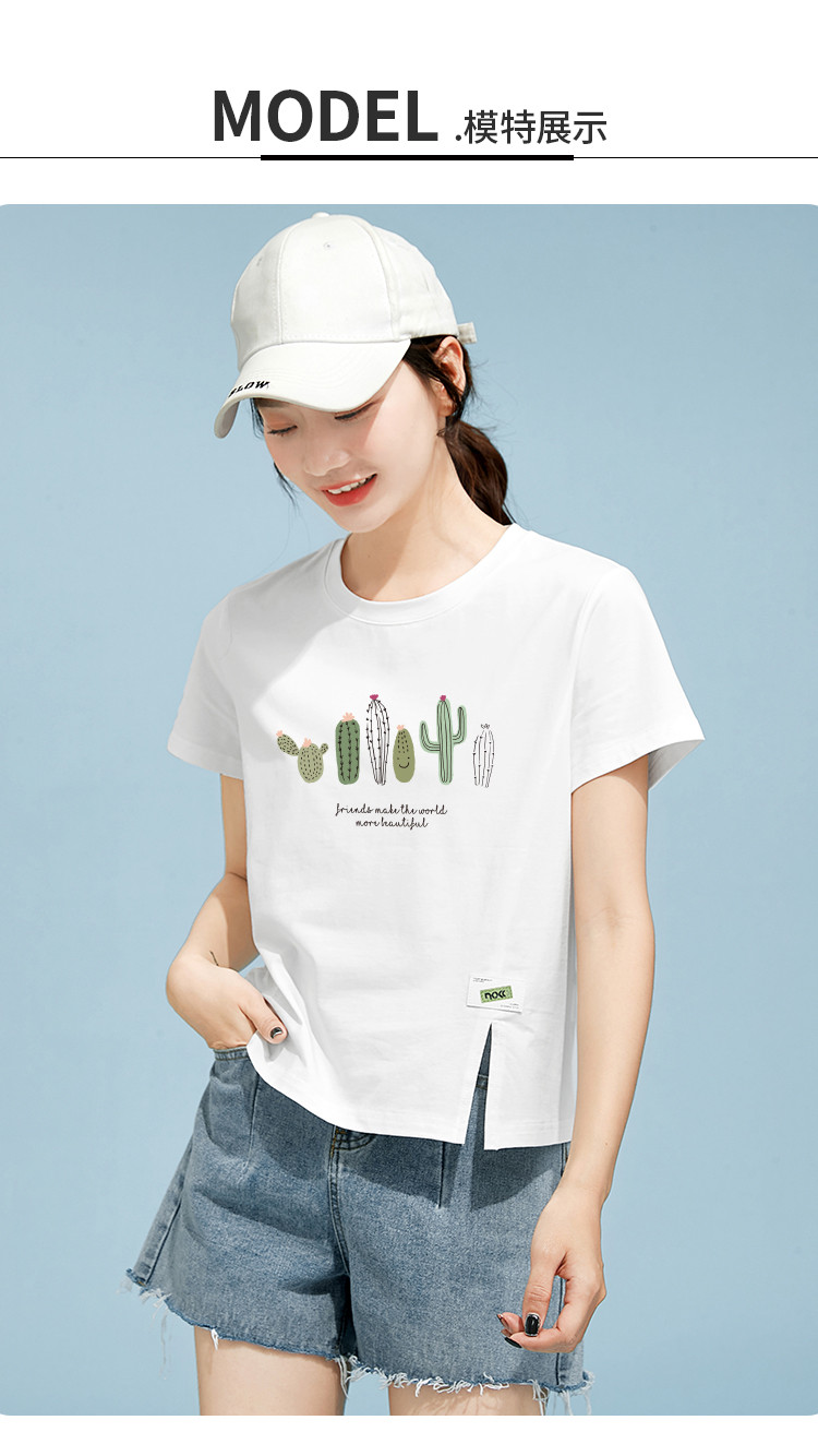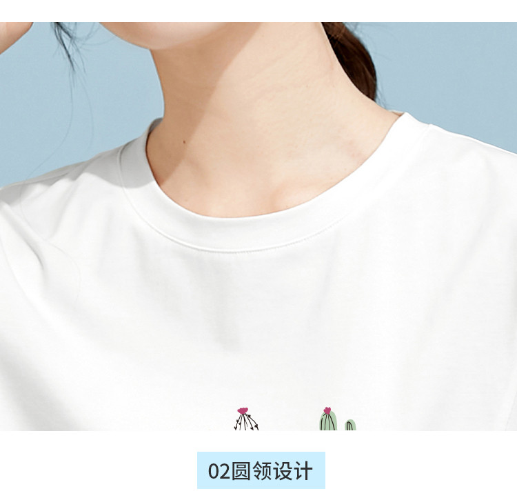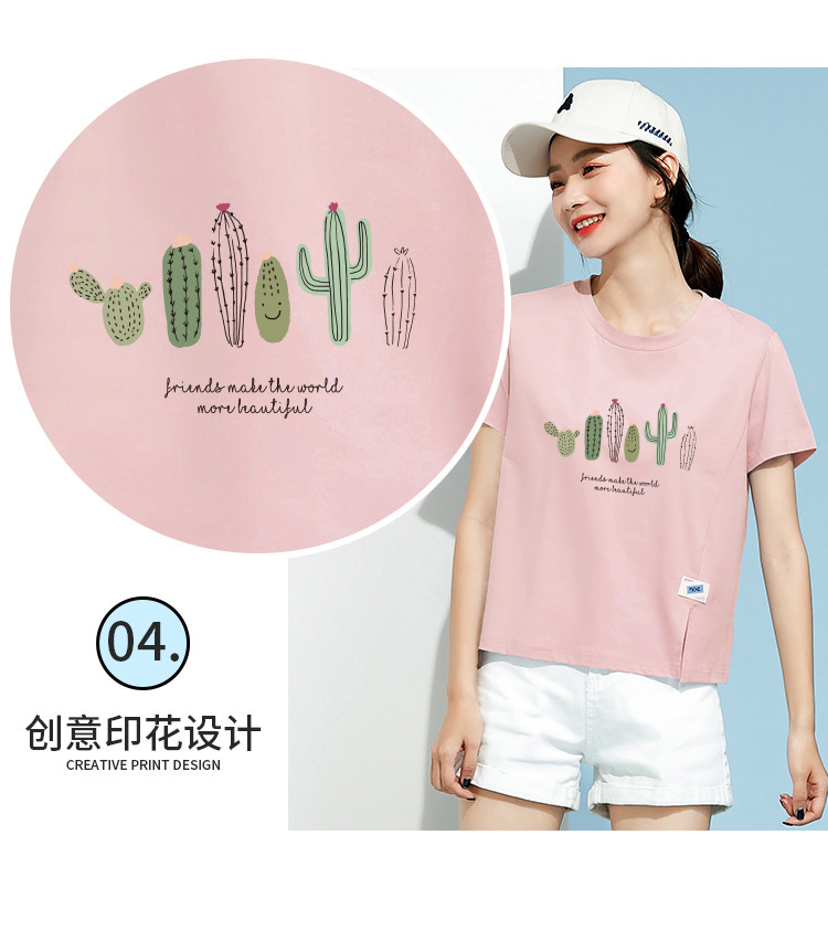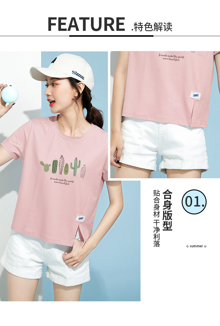 商品名称:米子旗夏装款圆领印花T恤女宽松侧边开叉短袖上衣 182426