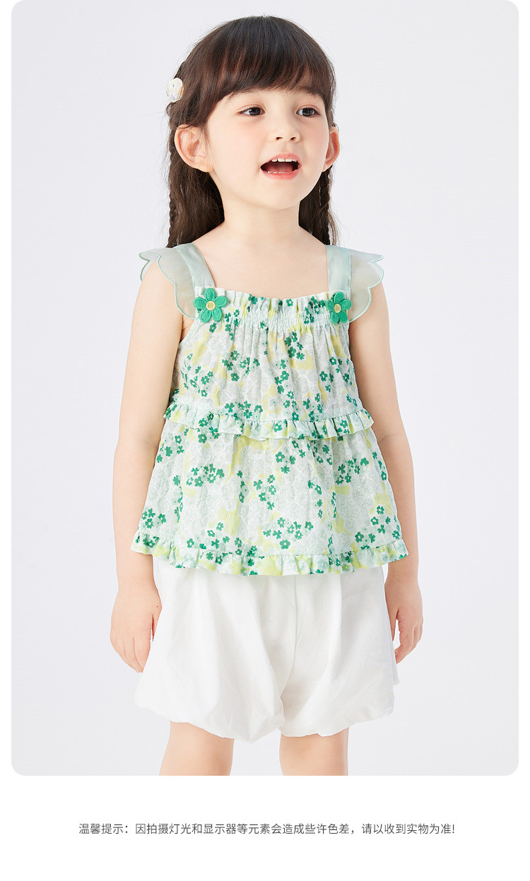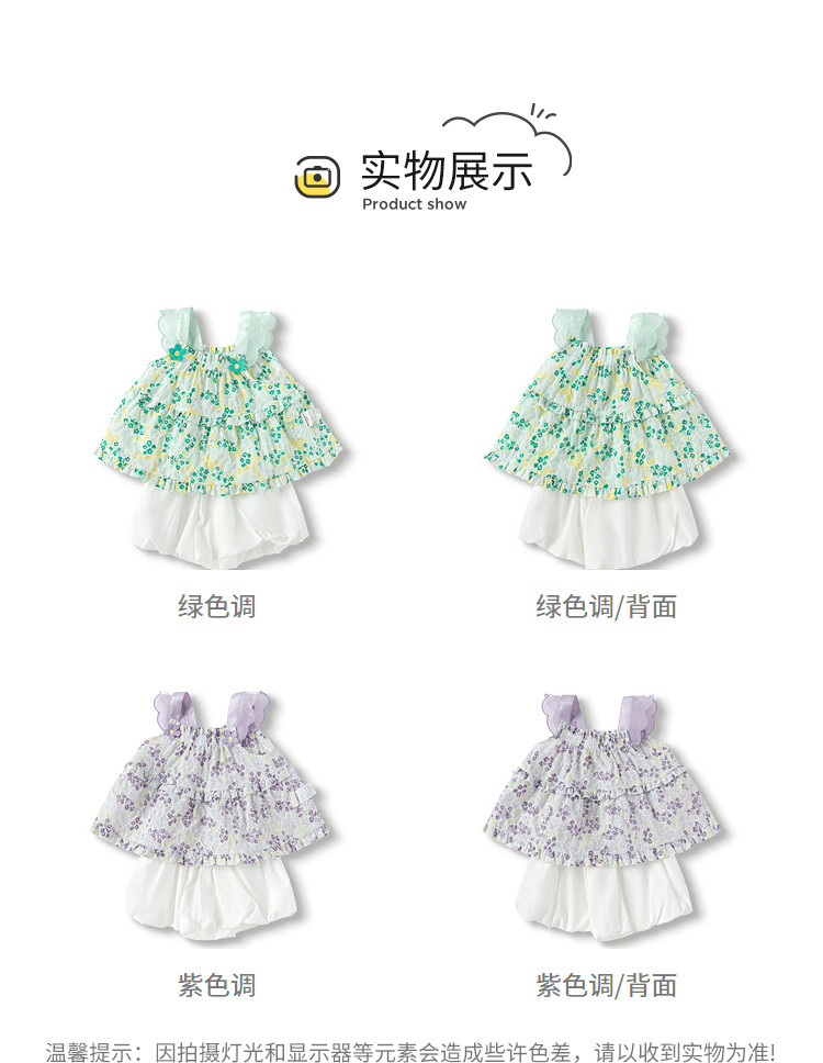 商品名称:吊带两件套儿童套装童装女童短袖夏装碎花短裤 589189