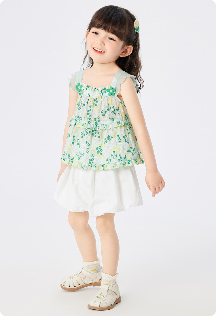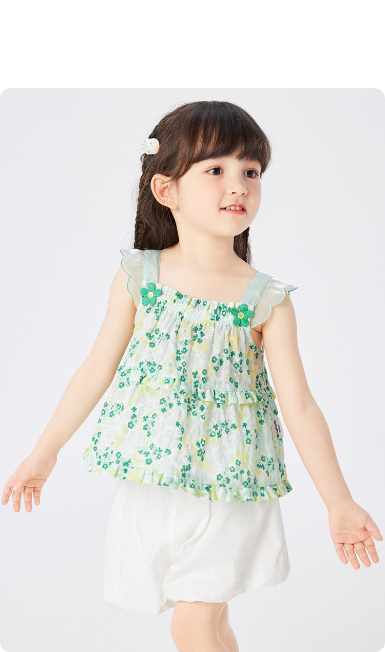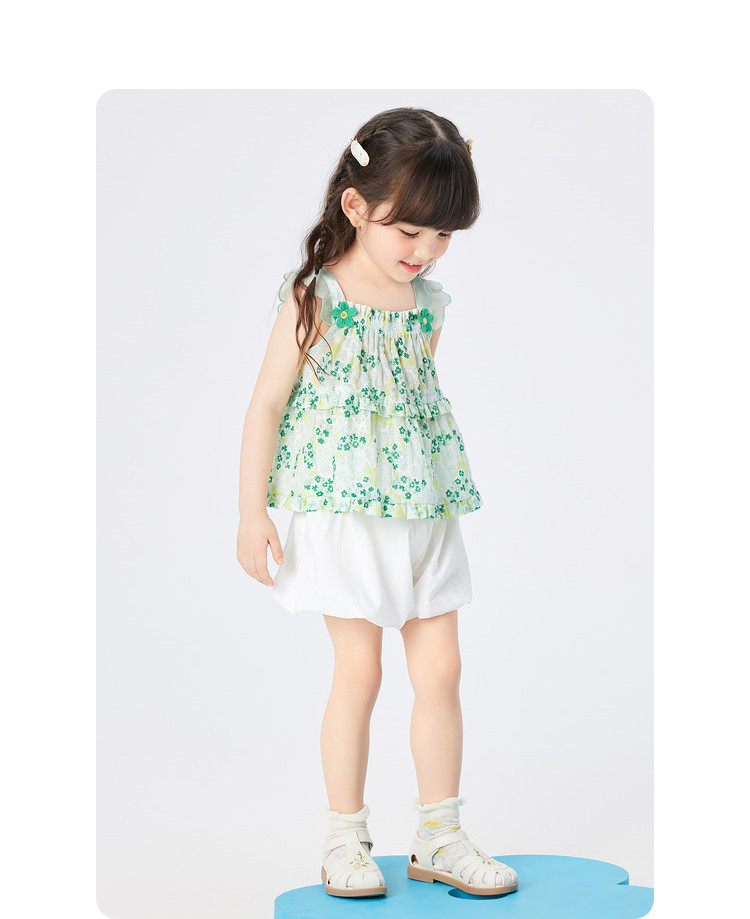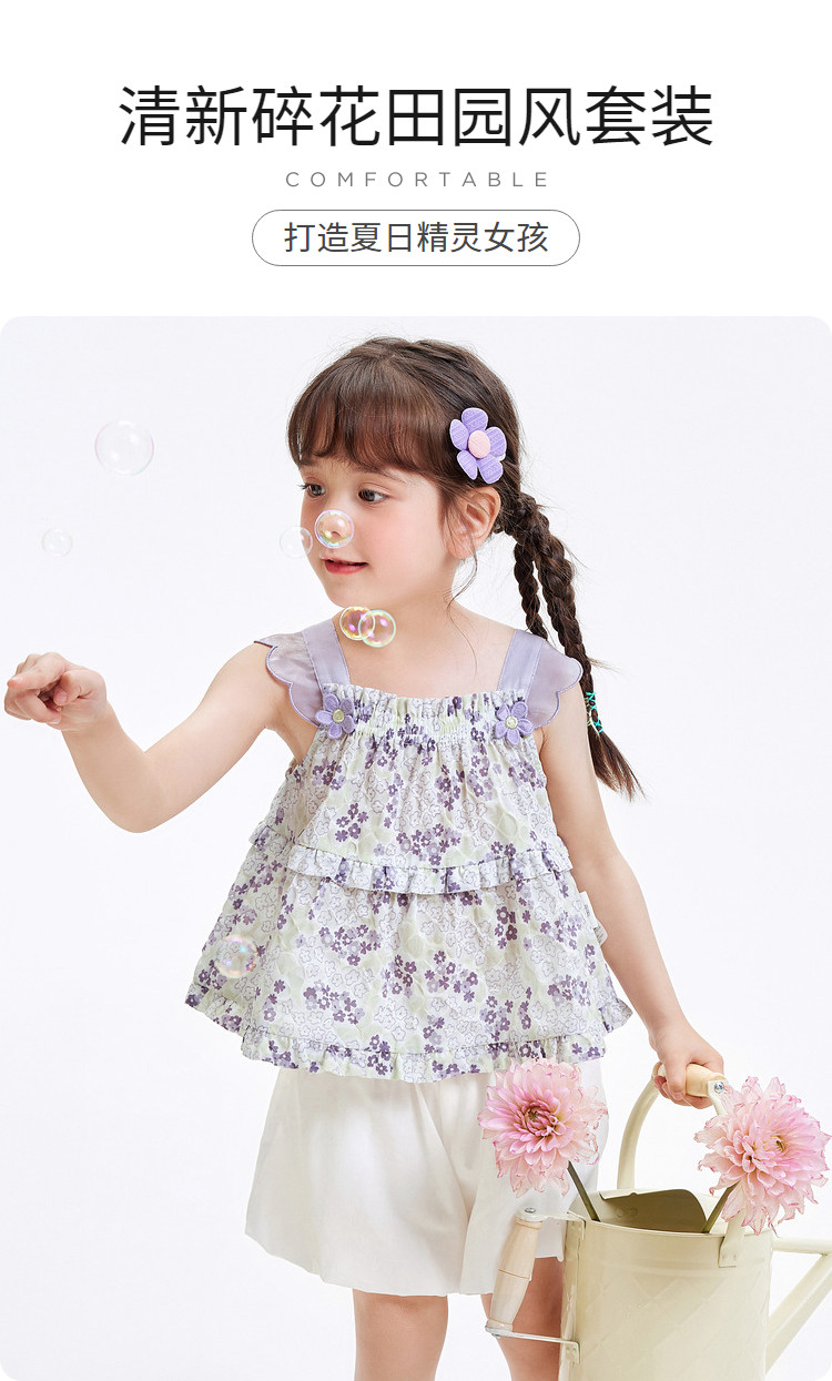 吊带两件套儿童套装童装女童短袖夏装碎花短裤 589189