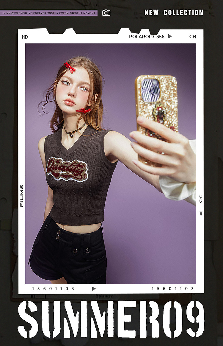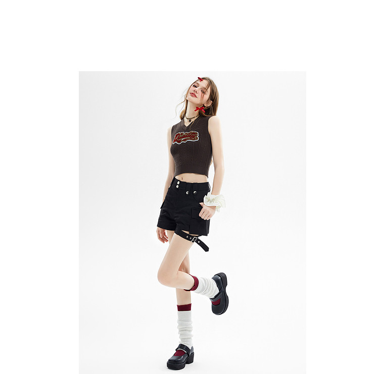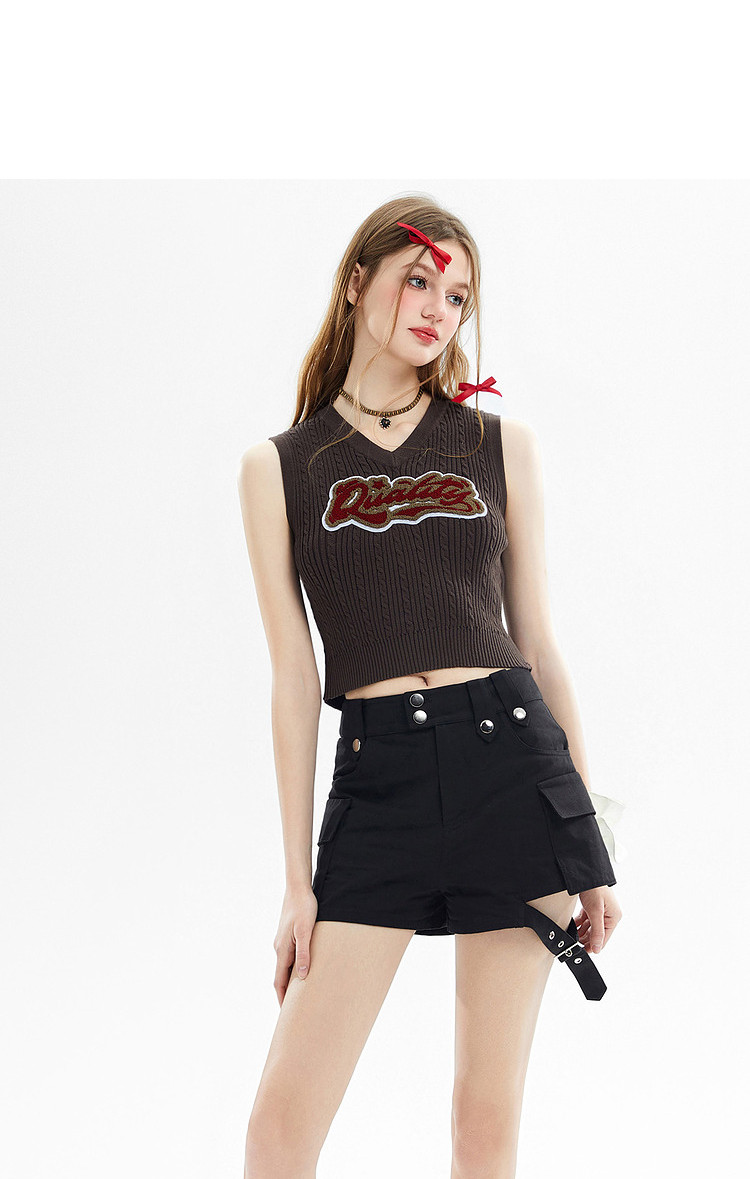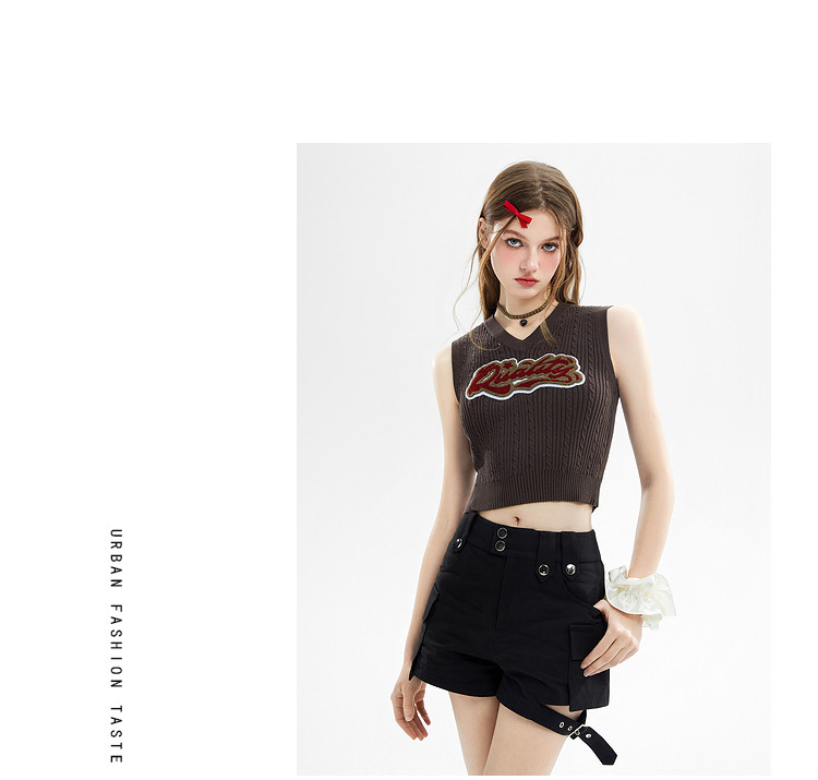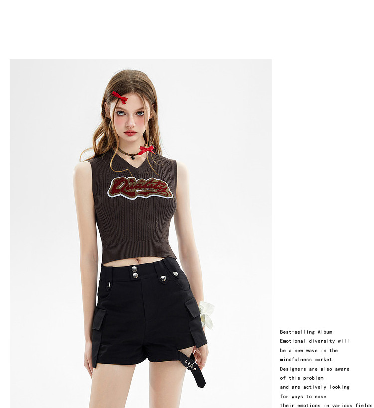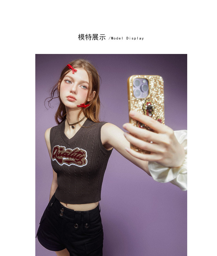 商品名称:美式复古挂脖背心女内搭辣妹宽肩针织吊带衫 061332