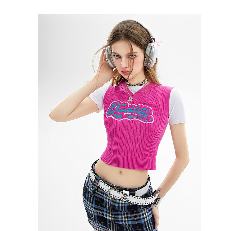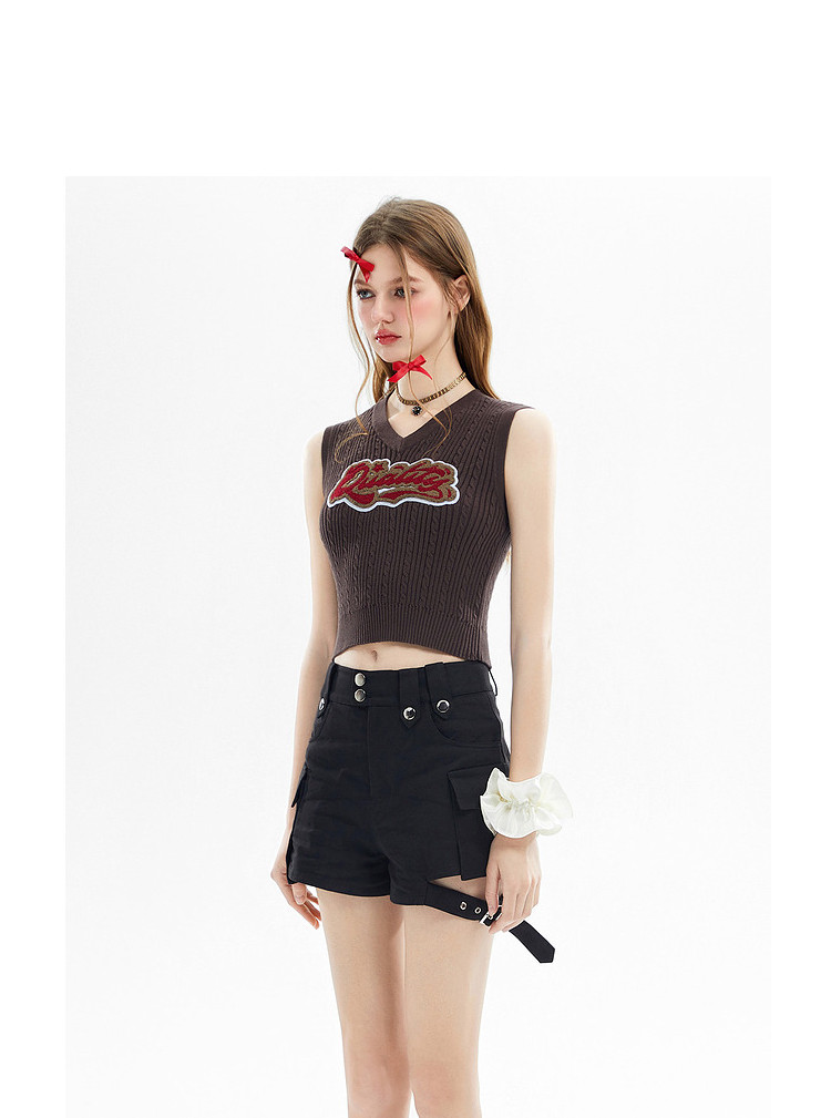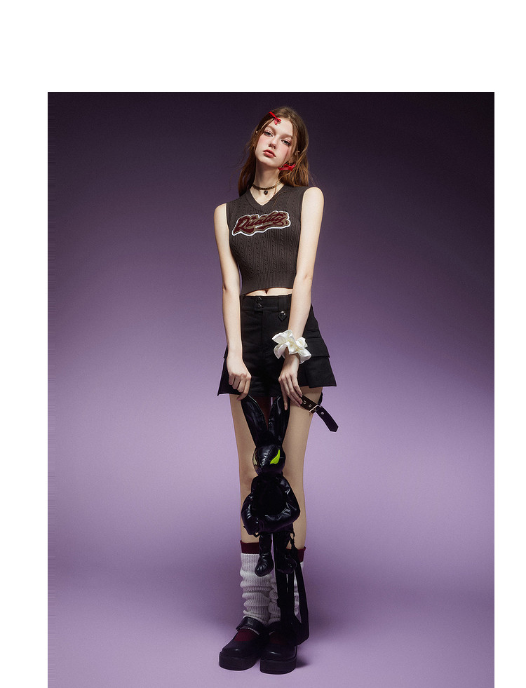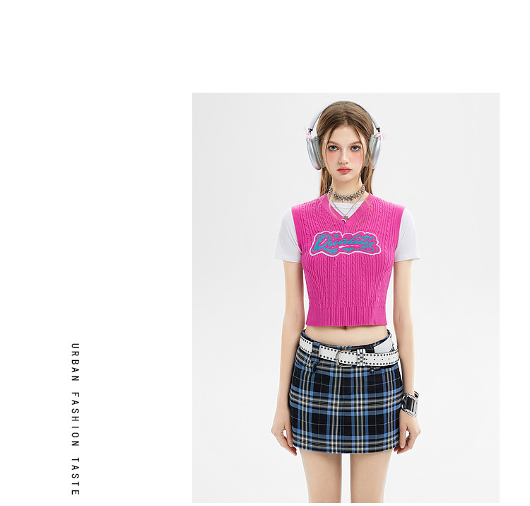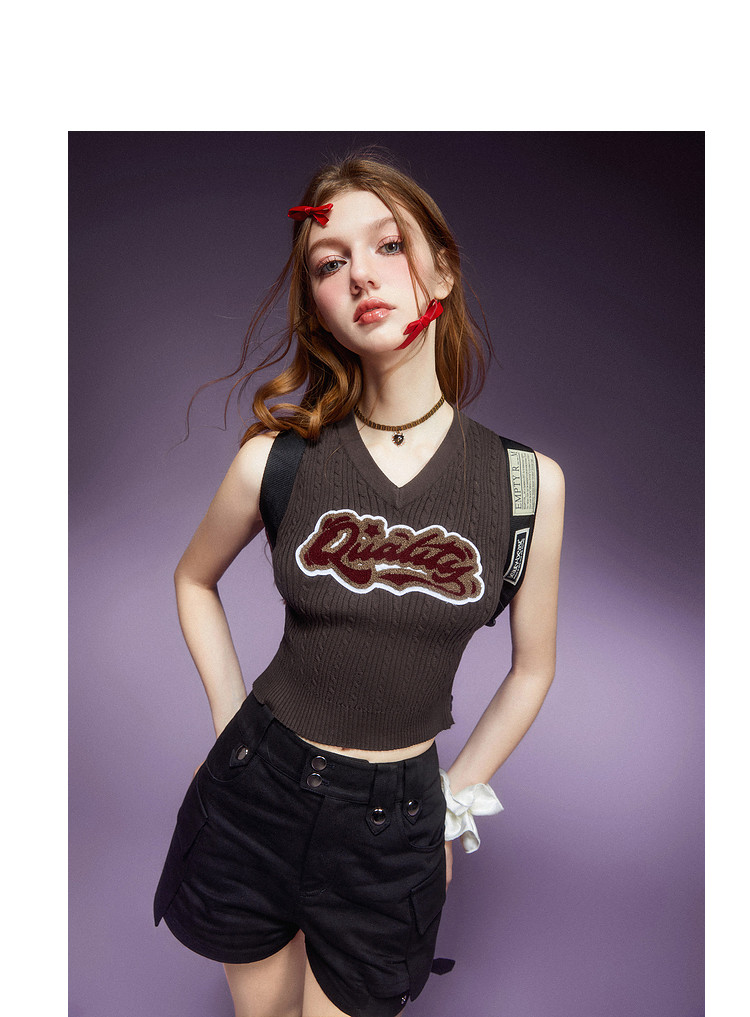 商品名称:美式复古挂脖背心女内搭辣妹宽肩针织吊带衫 061332