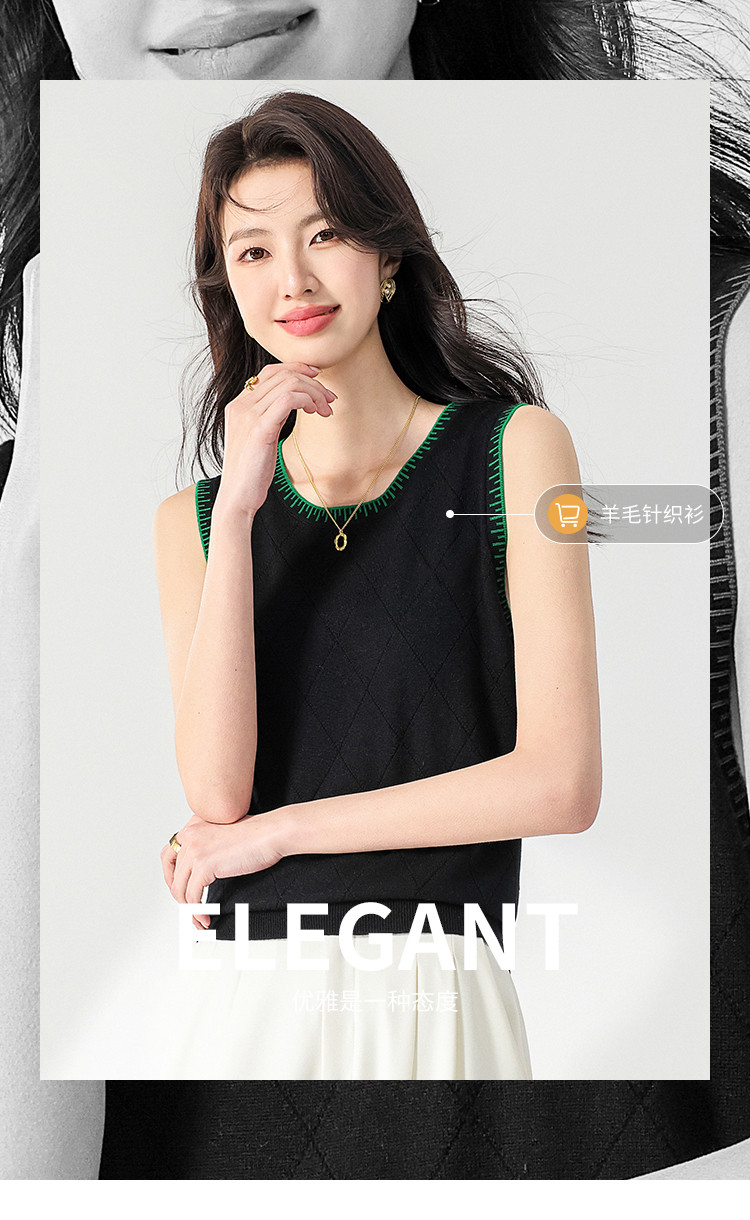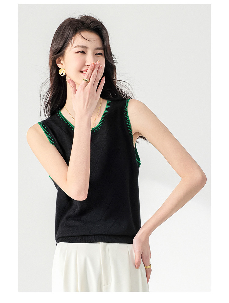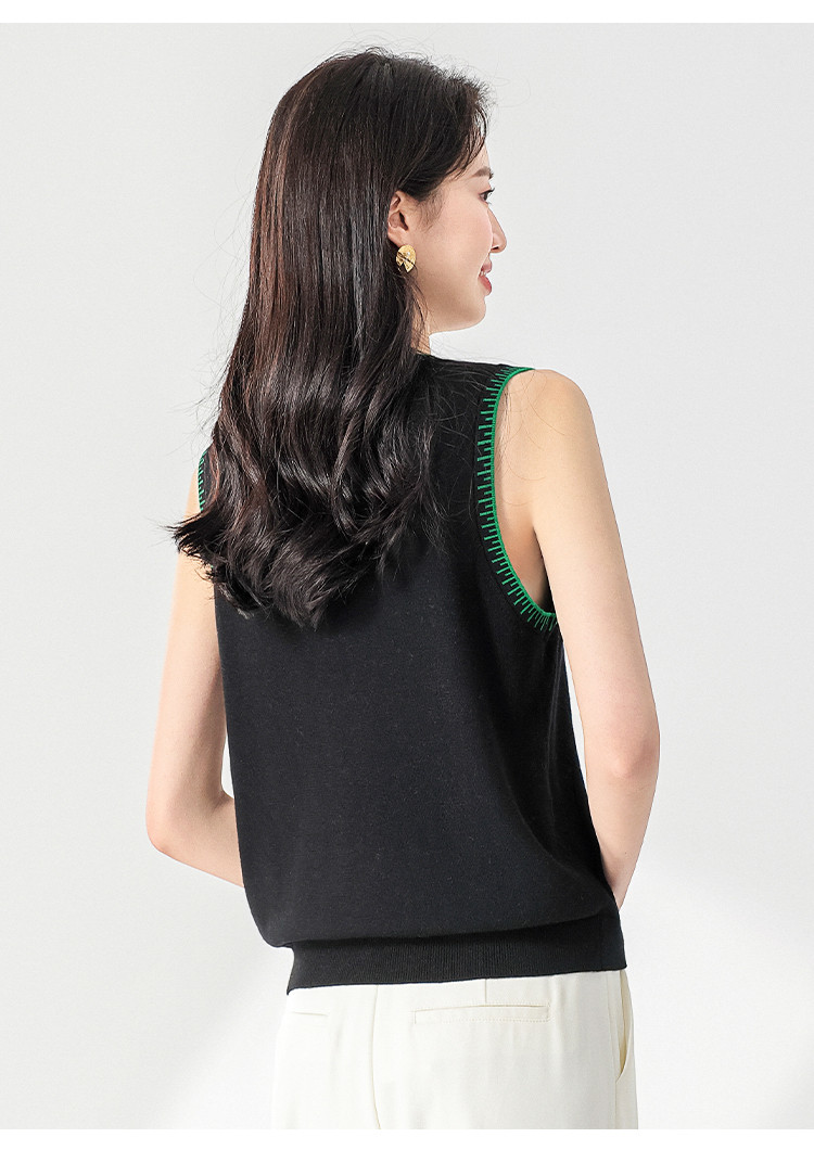 撞色圆领羊毛背心针织打底衫无袖T恤马夹坎肩马甲 878547