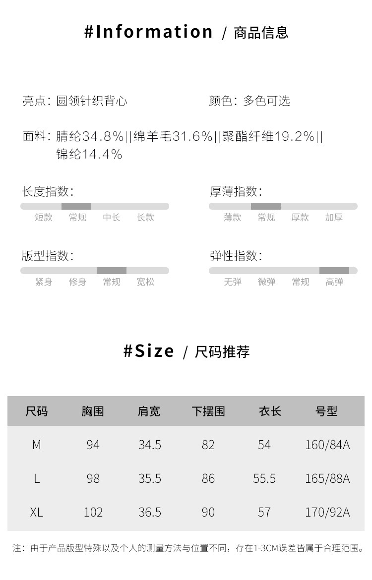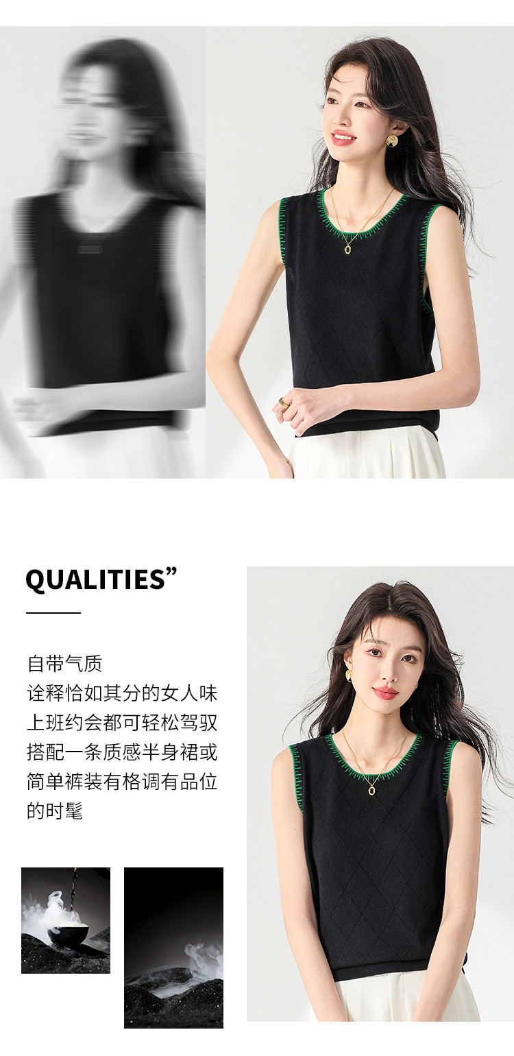 商品名称:撞色圆领羊毛背心针织打底衫无袖T恤马夹坎肩马甲 878547