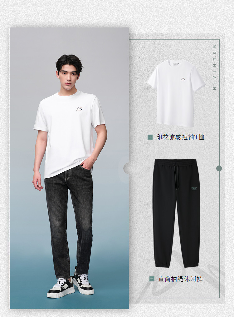【山不在高系列】夏季圆领撞色印花凉感舒适男士短袖T恤 548040