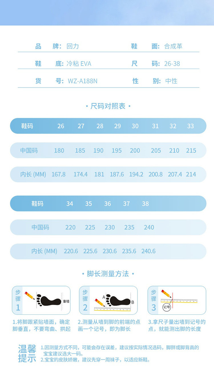 鞋内长(mm)