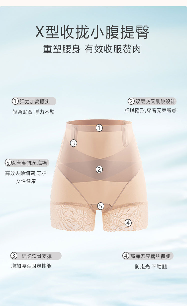 商品名称:【塑形立体提臀】高弹蕾丝轻薄透气高腰微压交叉收腹提臀塑身裤 027038