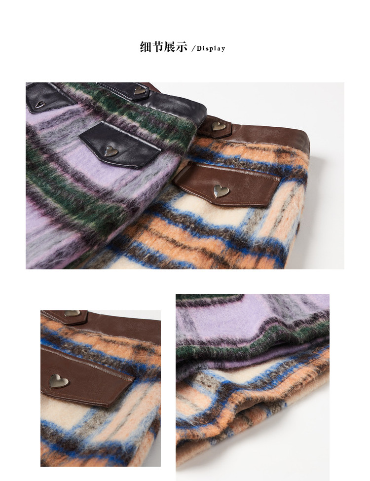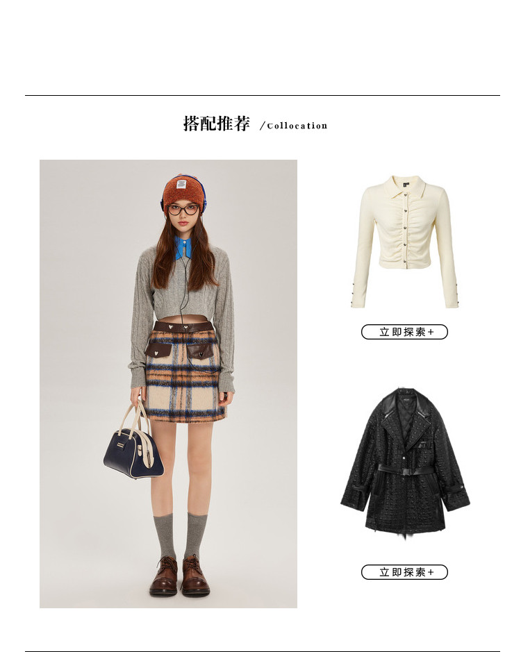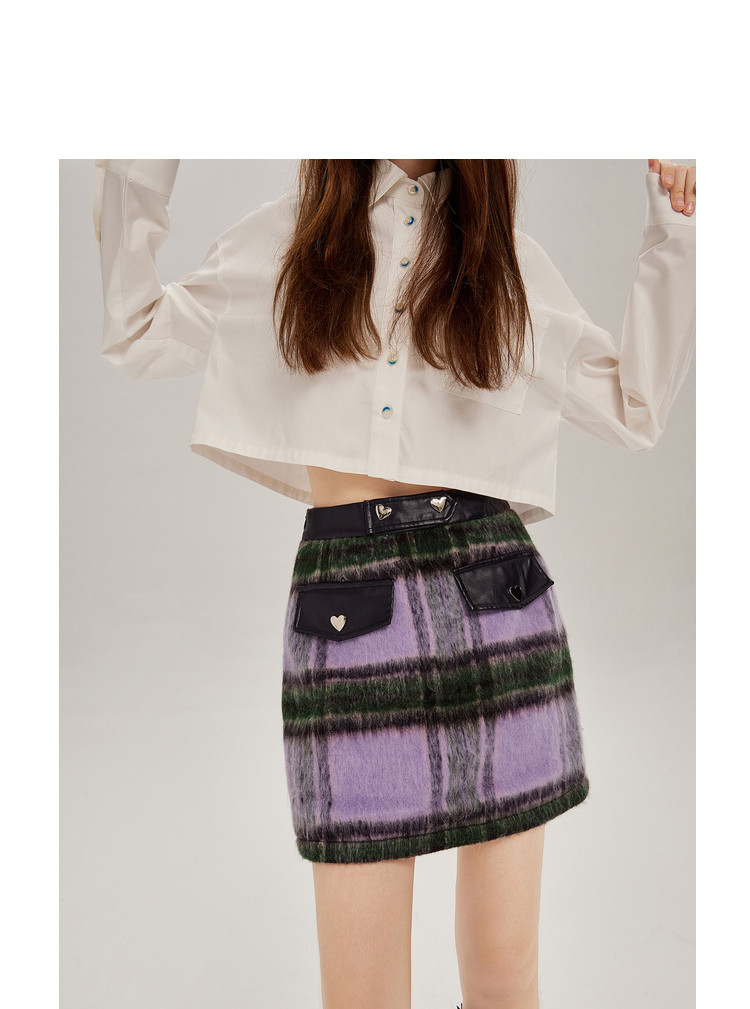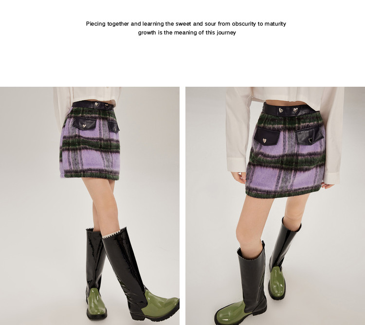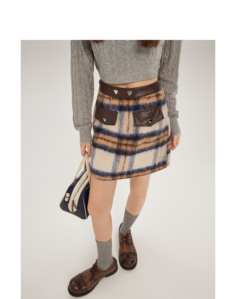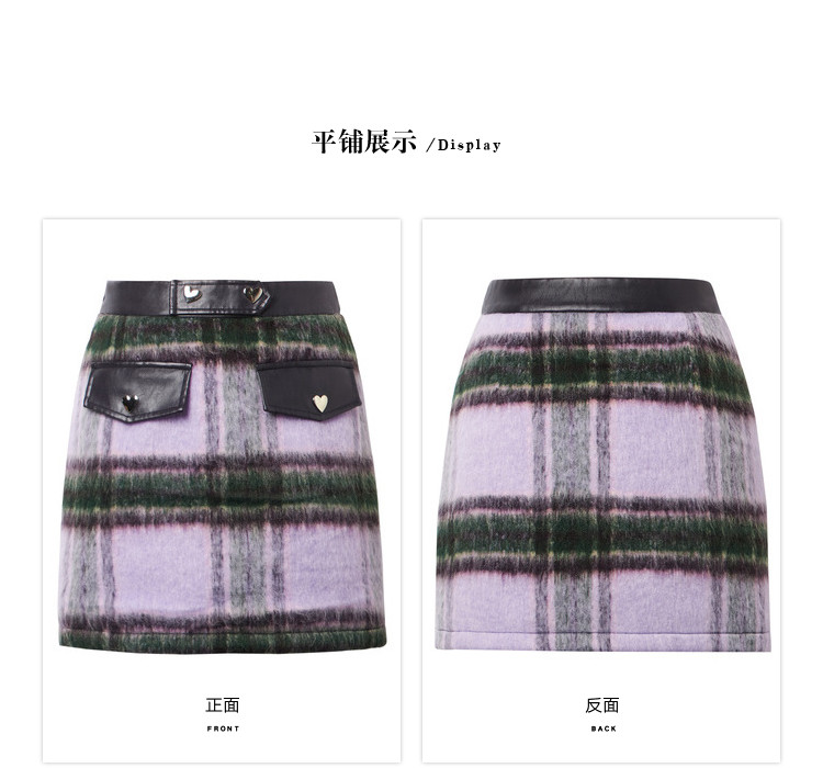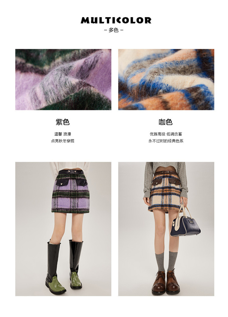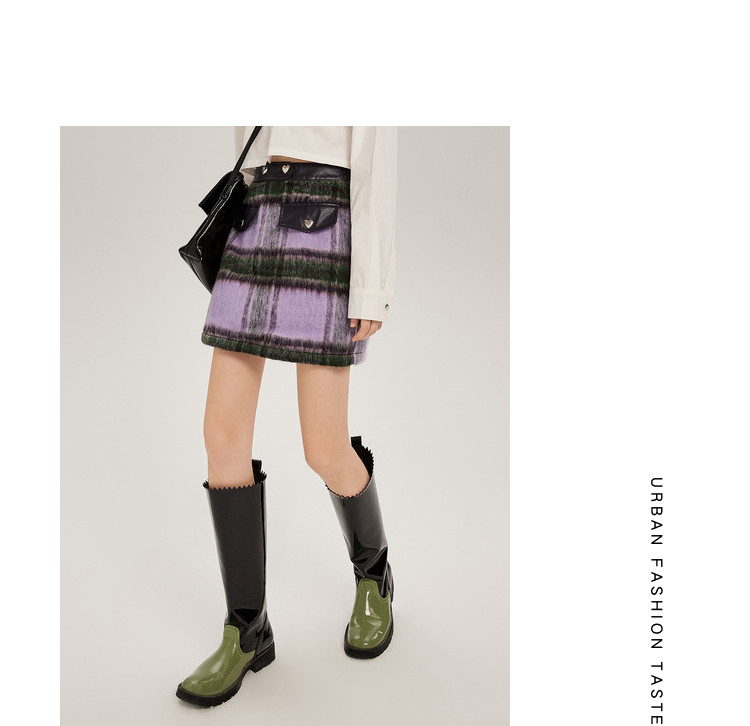 商品名称:秋冬拼接格纹毛呢半身短裙女设计感小众包臀a字裙 748628