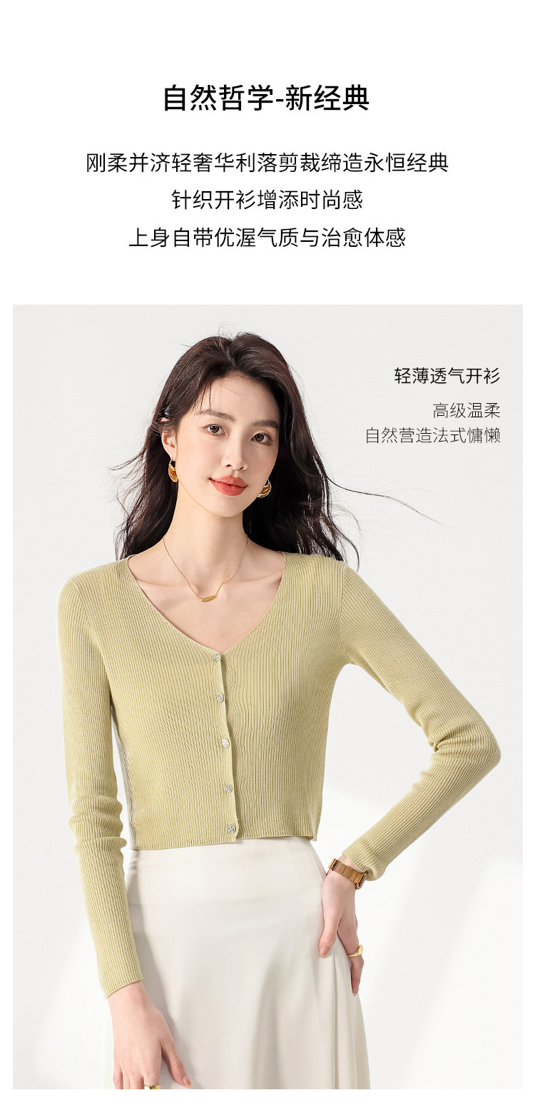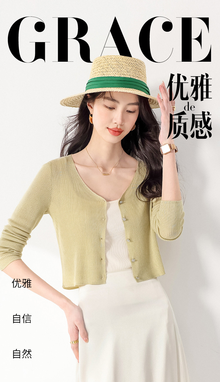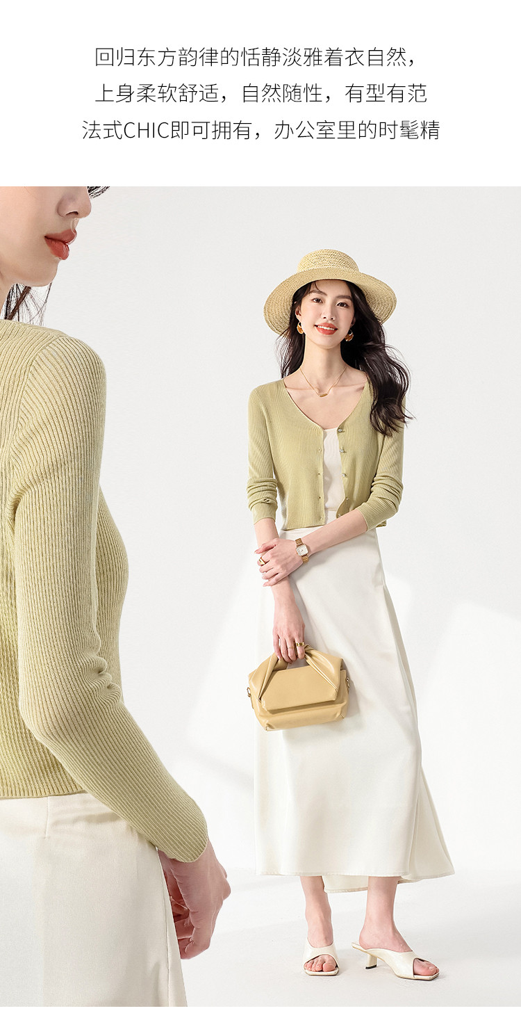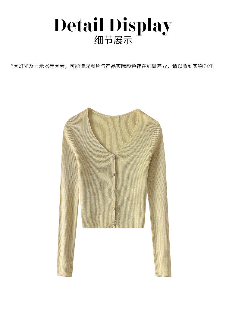 商品名称:【含桑蚕丝】纯色V领抽条长袖针织打底开衫外套夏款空调衫小衫 950547