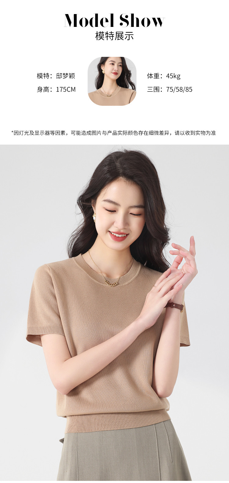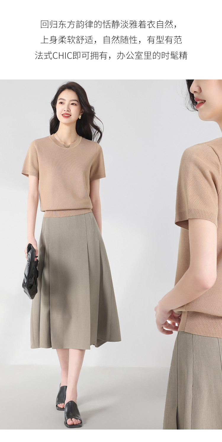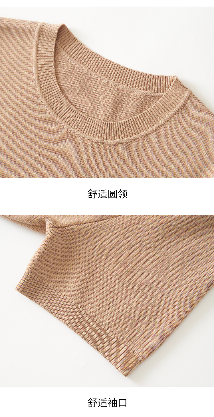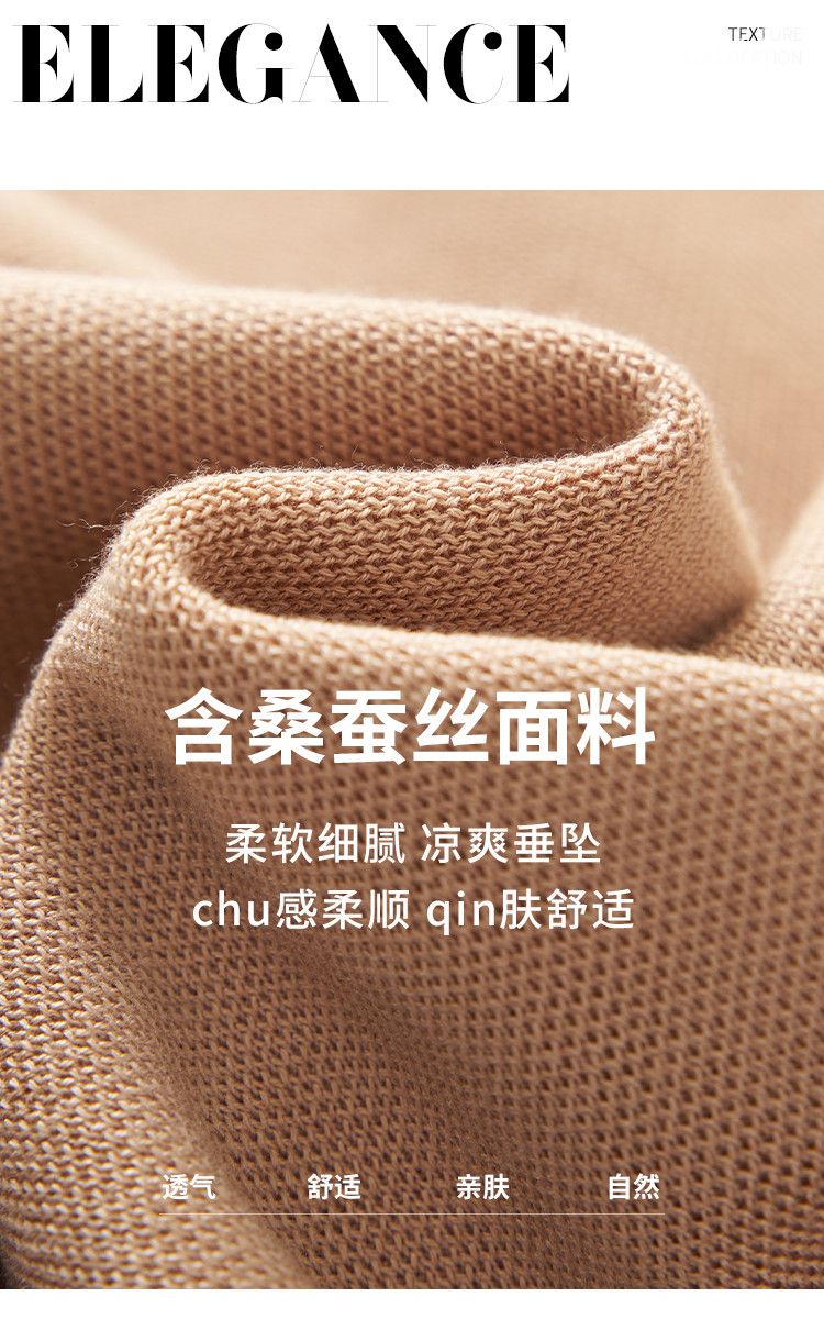 商品名称:基础款纯色百搭圆领含桑蚕丝针织打底衫短袖T恤轻薄透气 444819