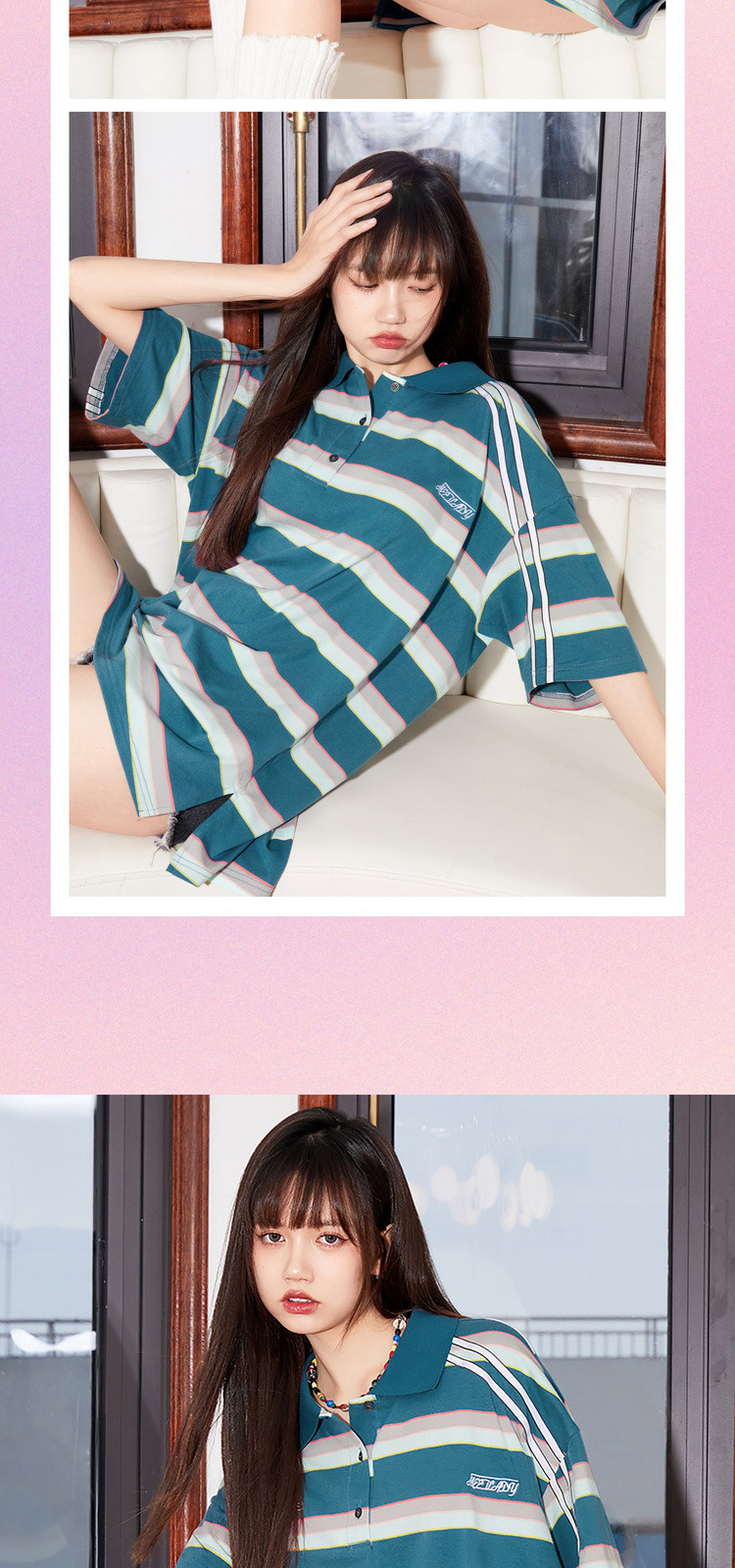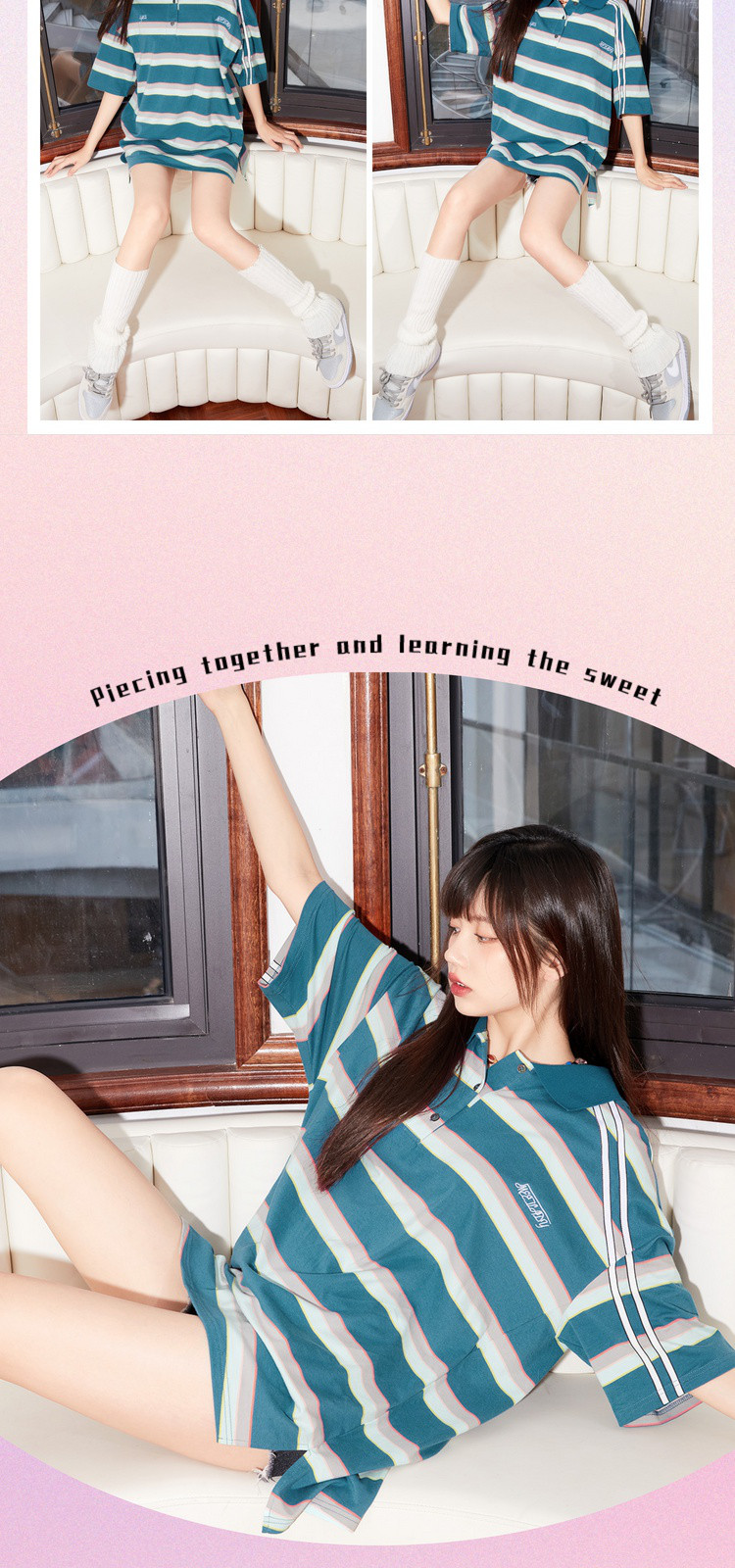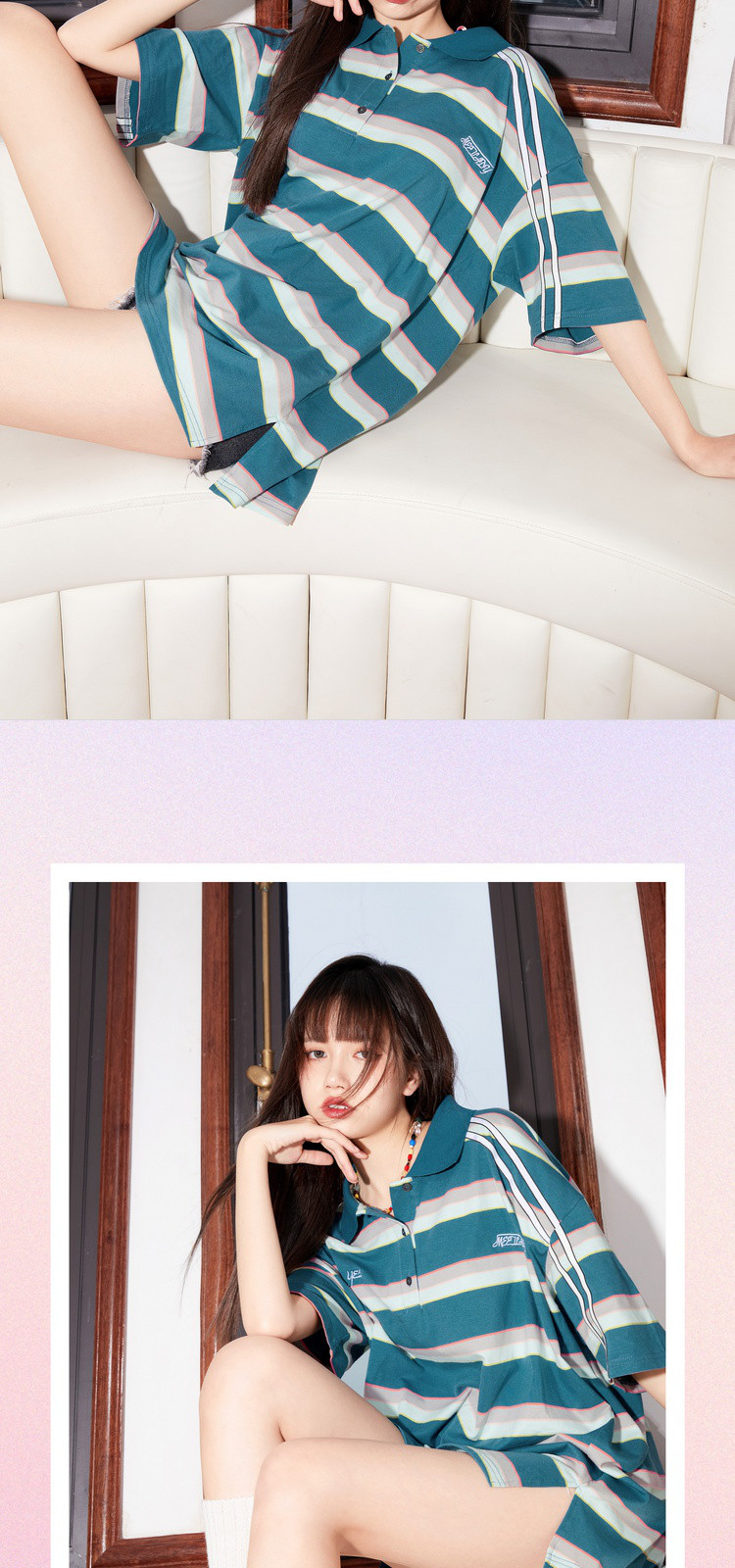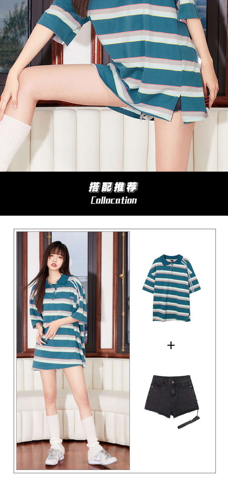 商品名称:夏季日系复古学院风条纹Polo衫女甜酷风小众高级感T恤 722452