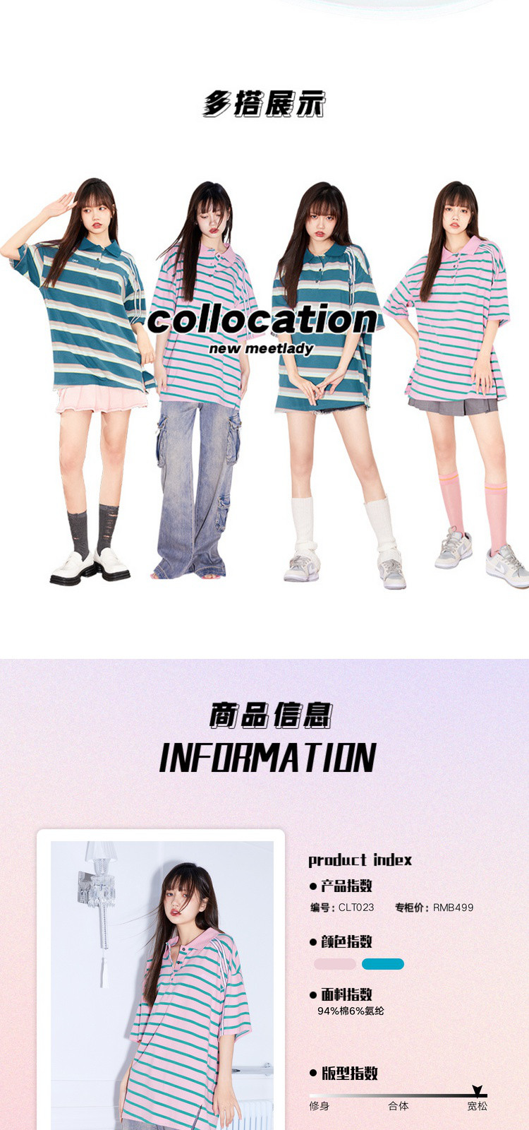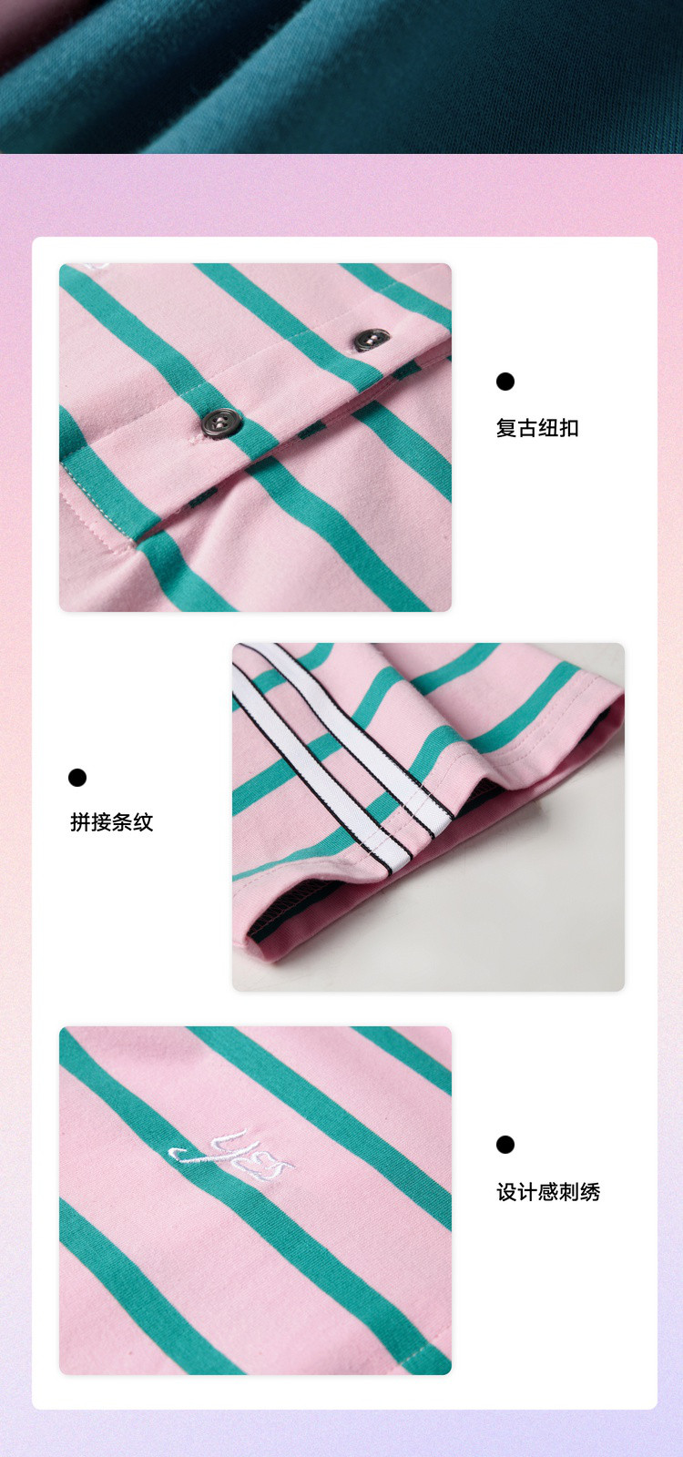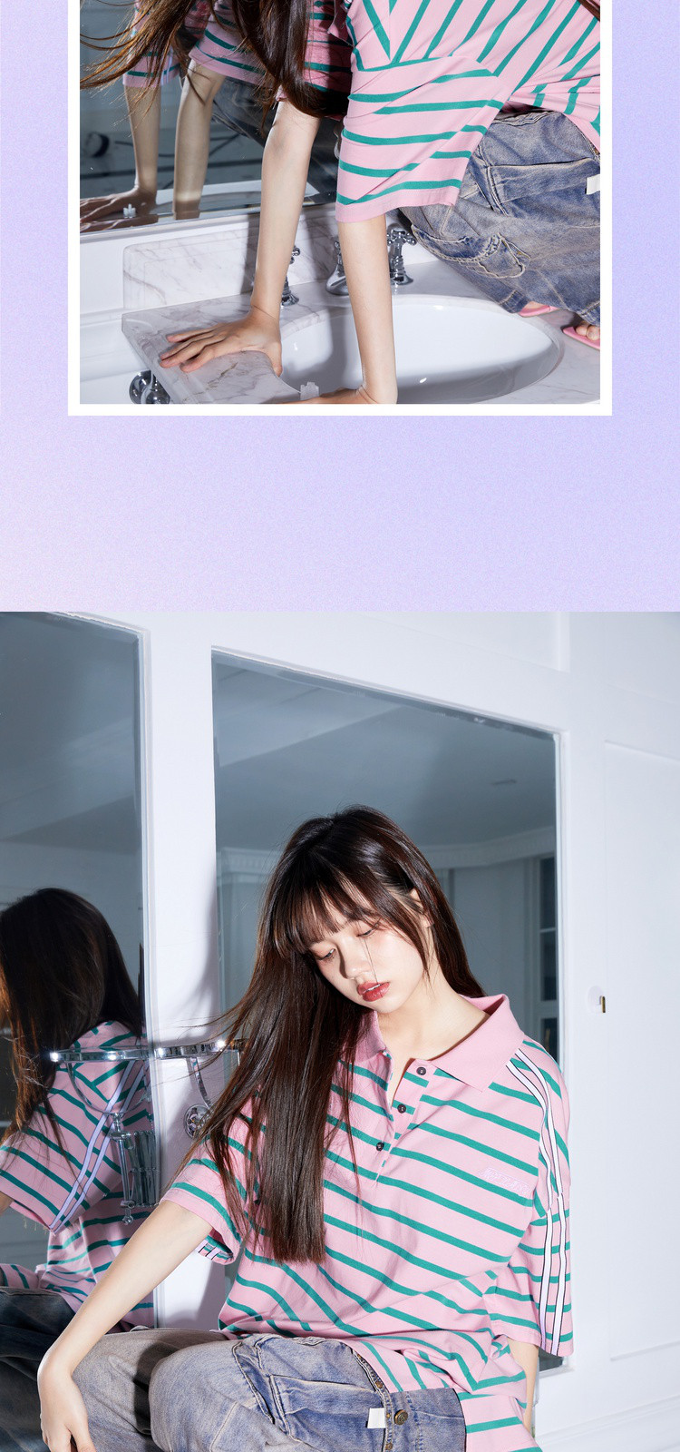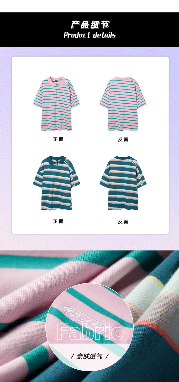商品名称:夏季日系复古学院风条纹Polo衫女甜酷风小众高级感T恤 722452