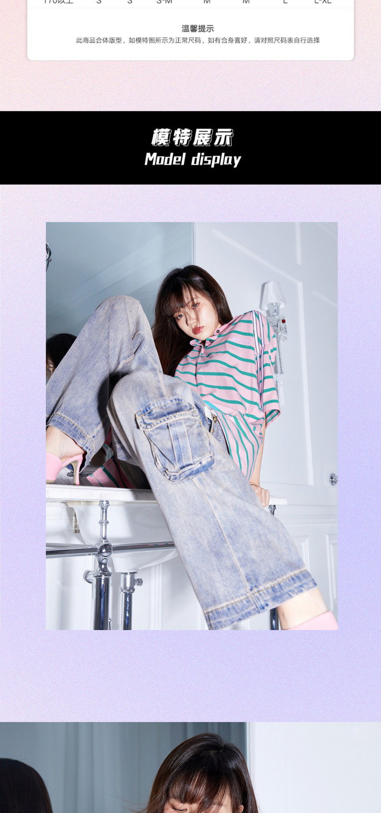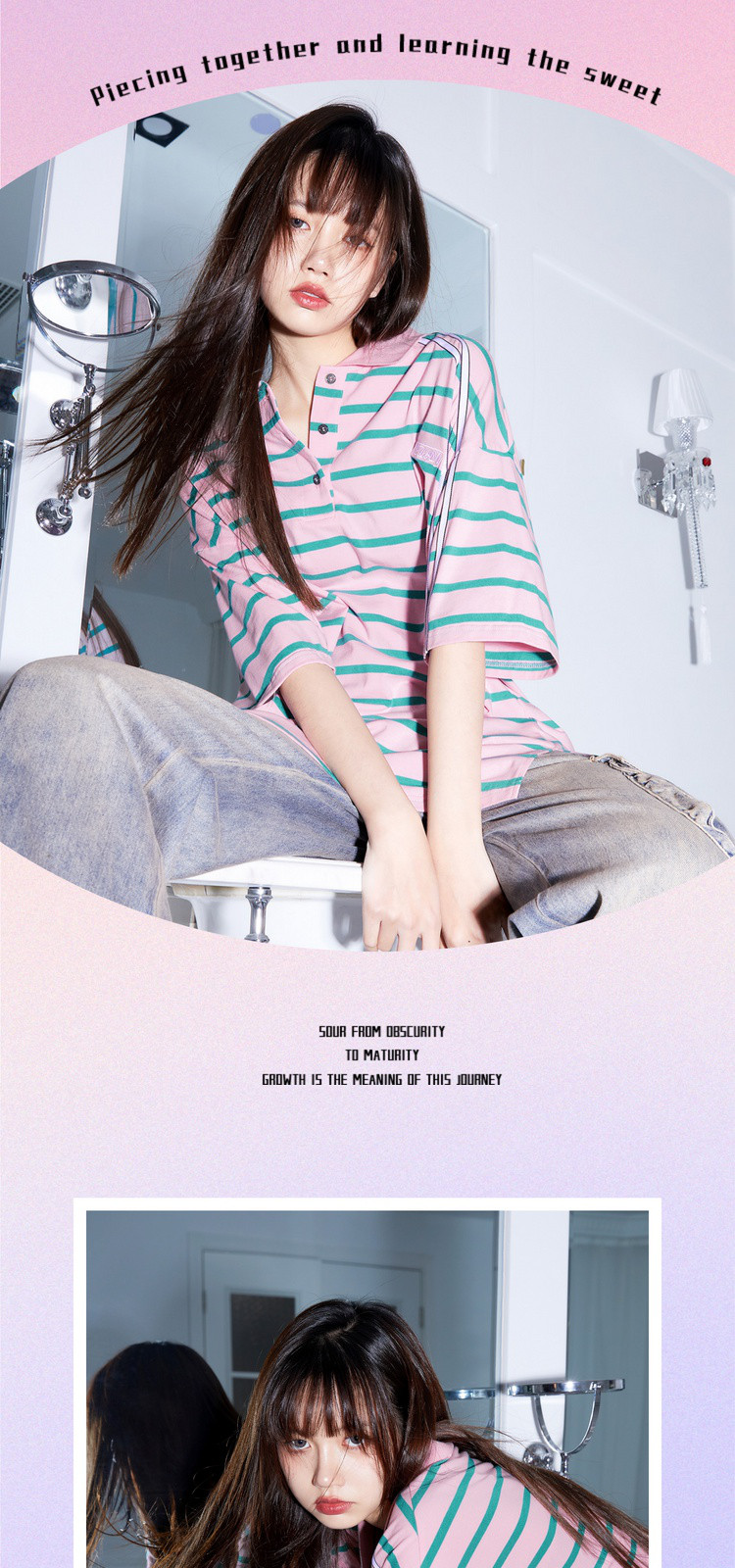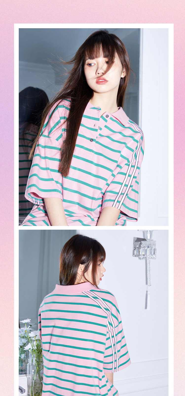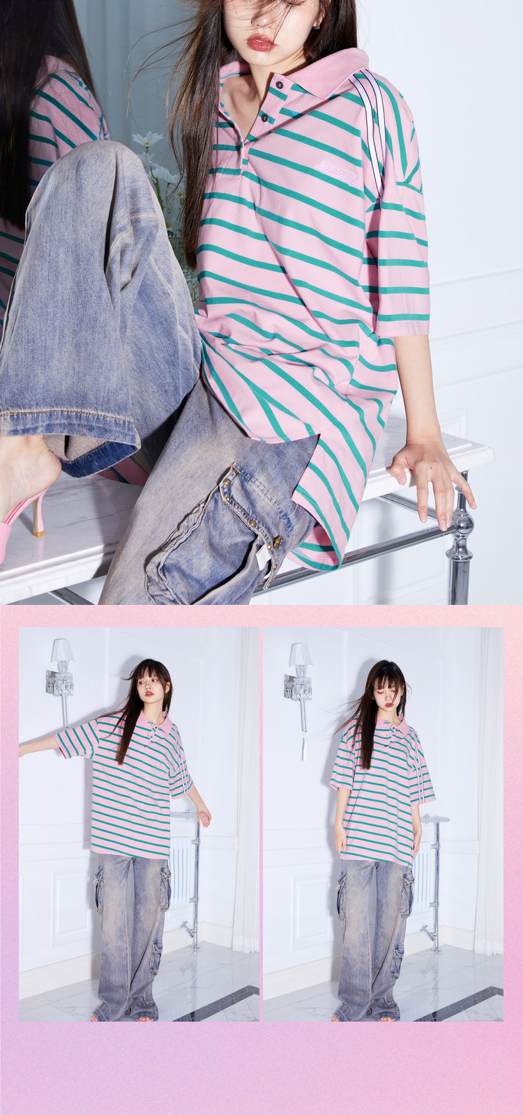 商品名称:夏季日系复古学院风条纹Polo衫女甜酷风小众高级感T恤 722452