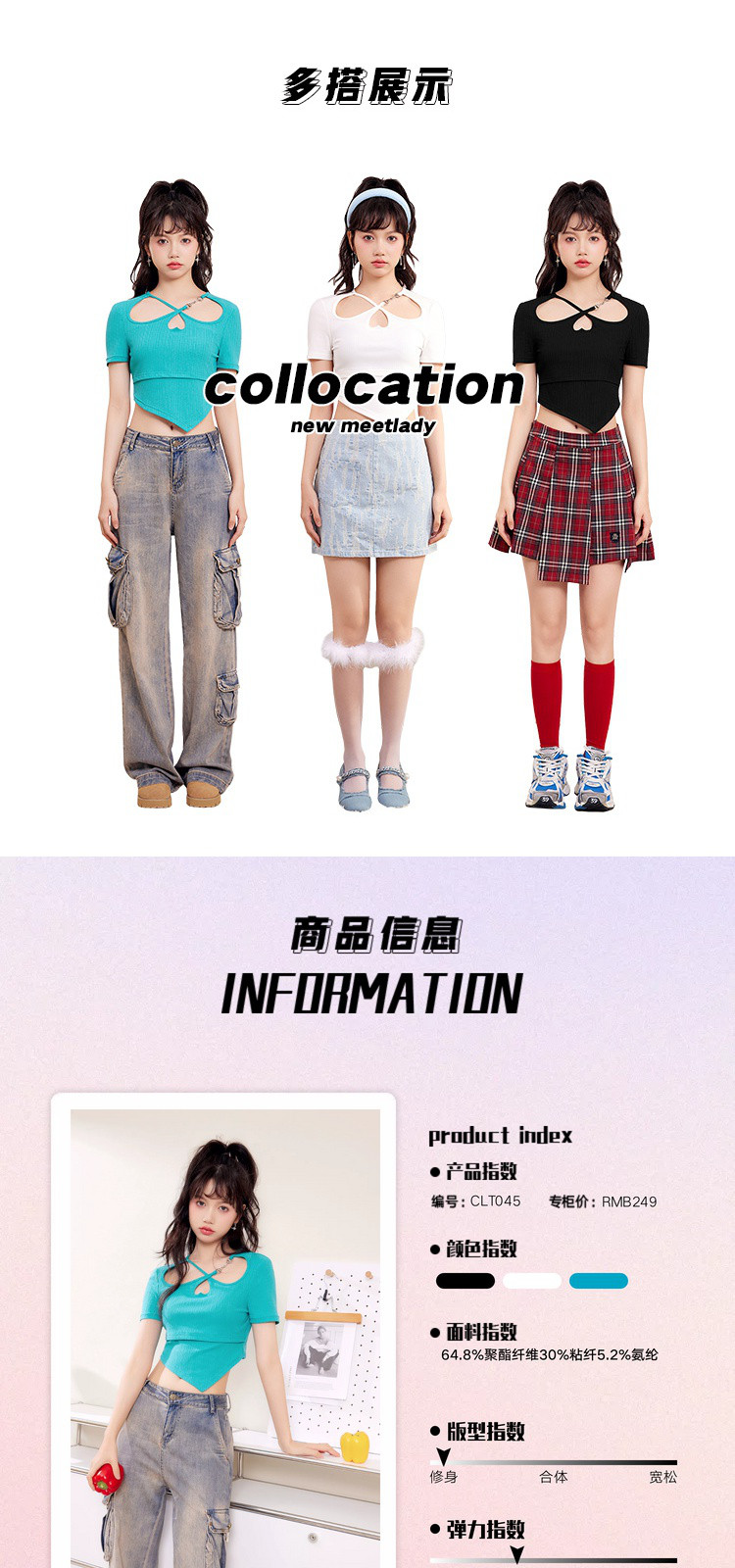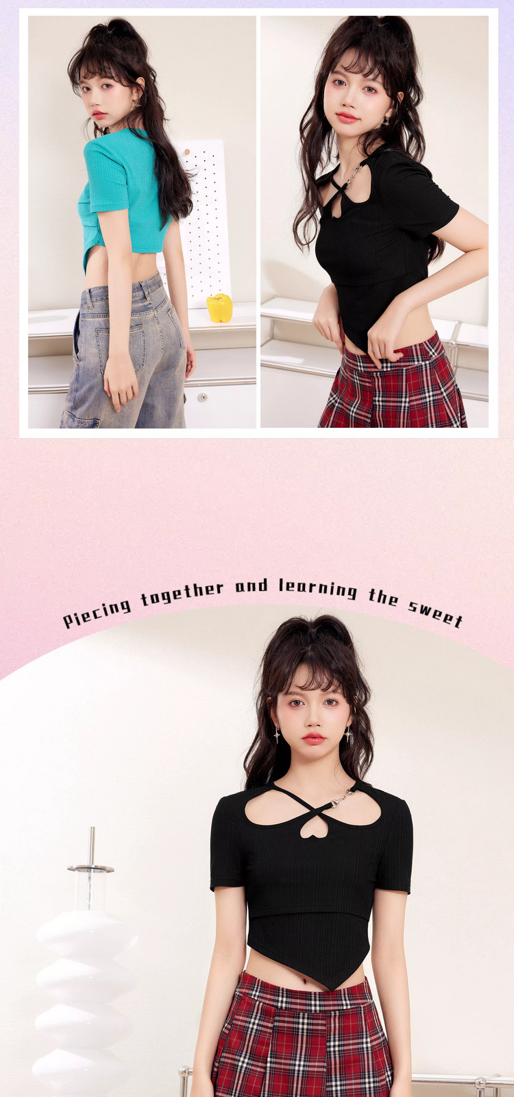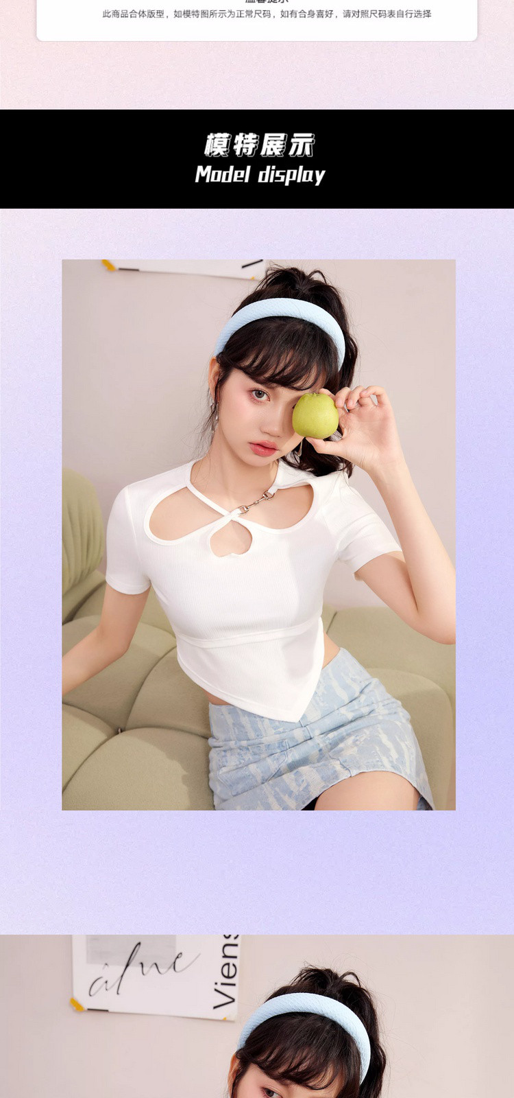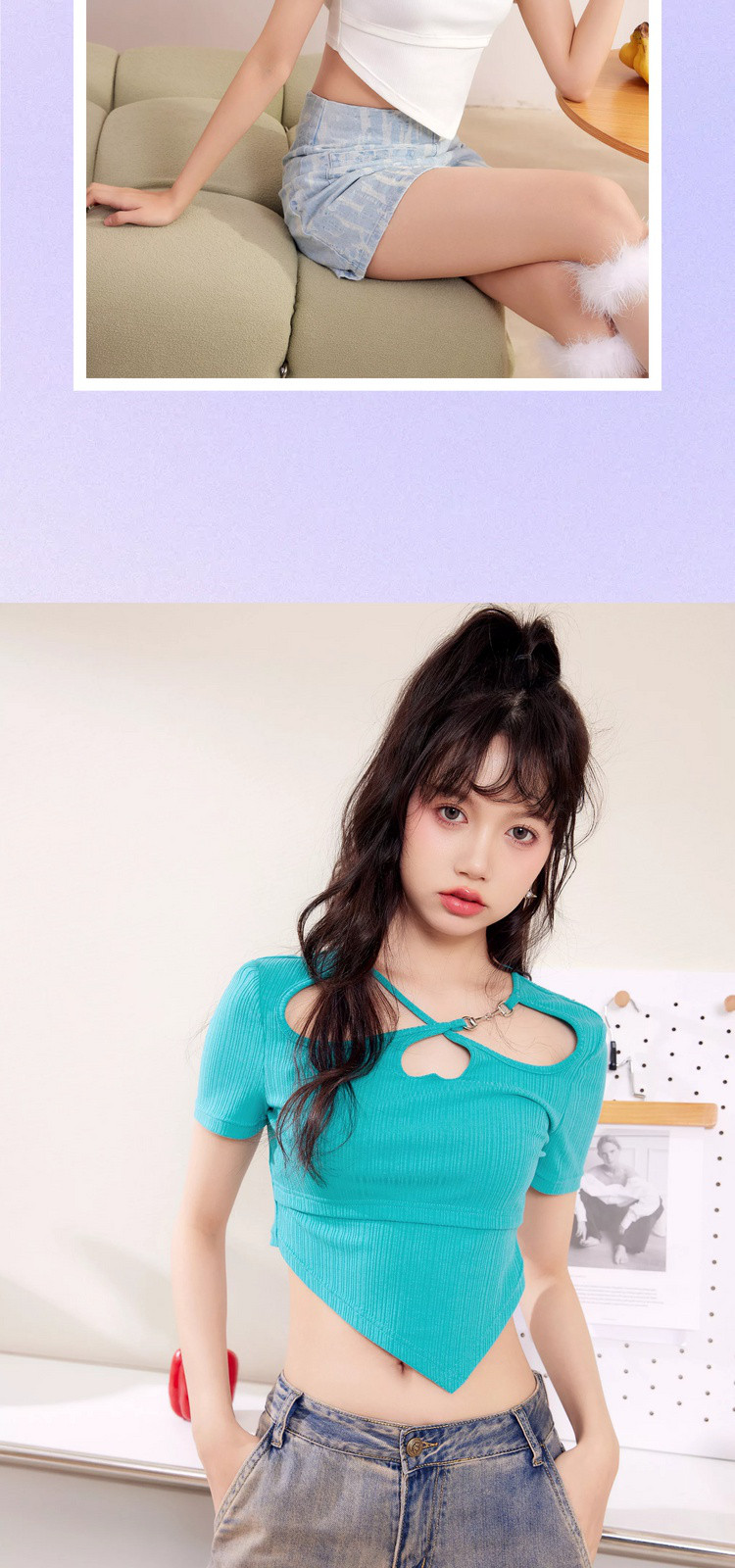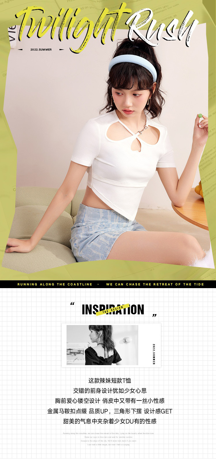 商品名称:夏季辣妹不规则t正肩t恤女韩系chic别致显瘦上衣 206740