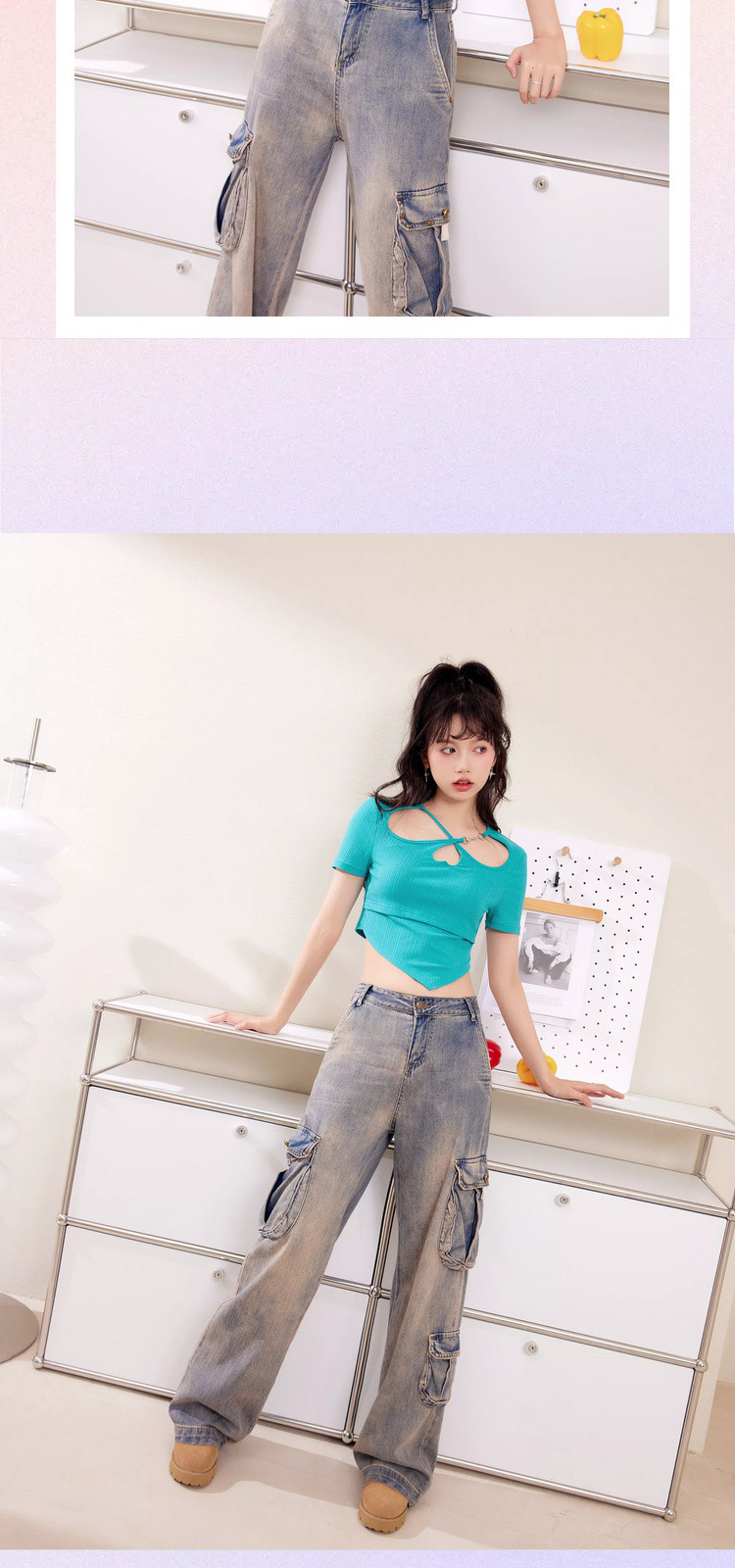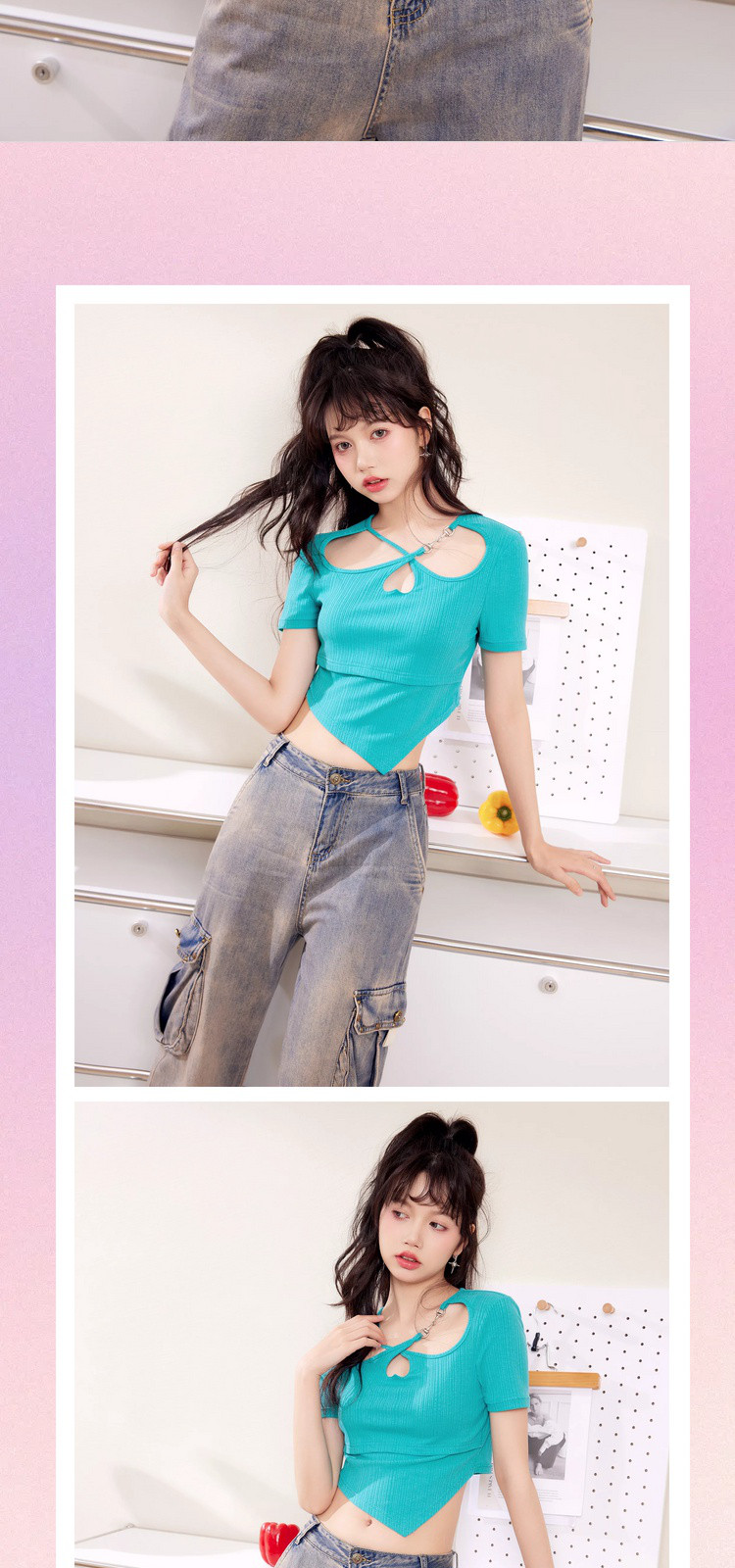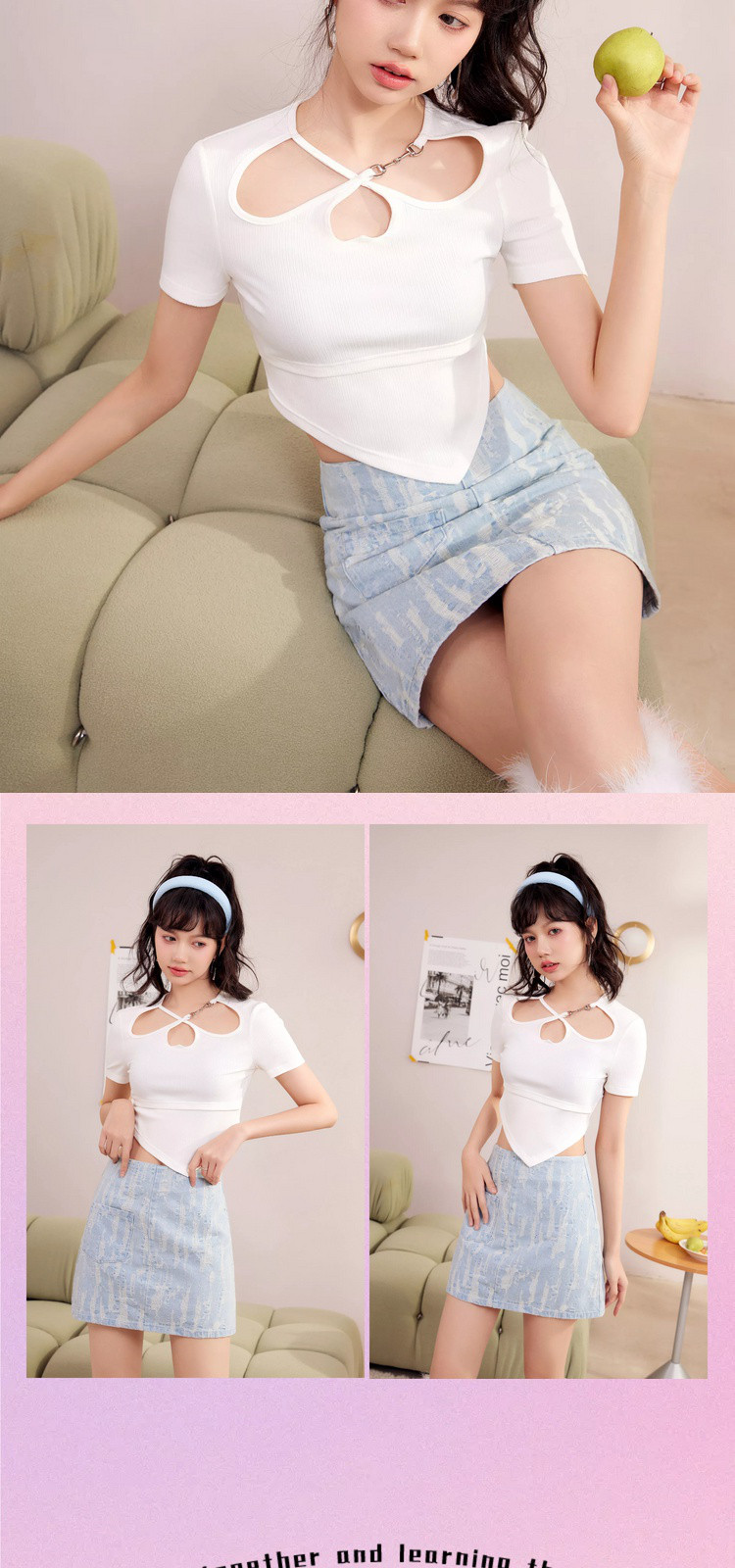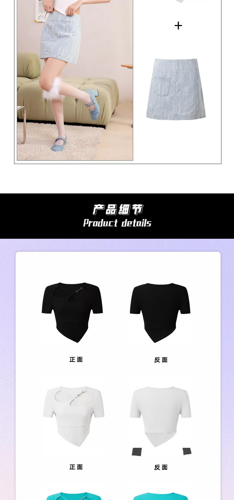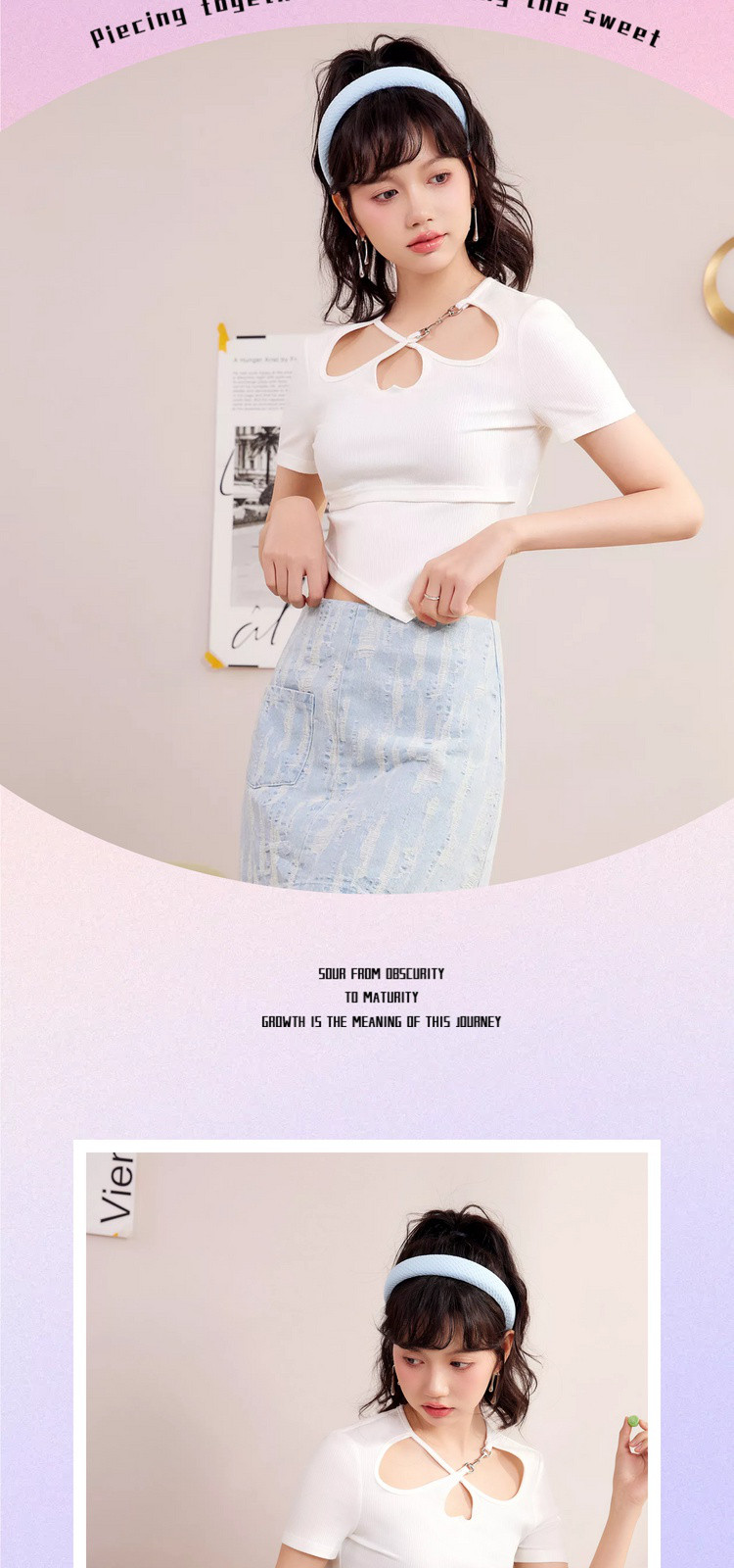 商品名称:夏季辣妹不规则t正肩t恤女韩系chic别致显瘦上衣 206740