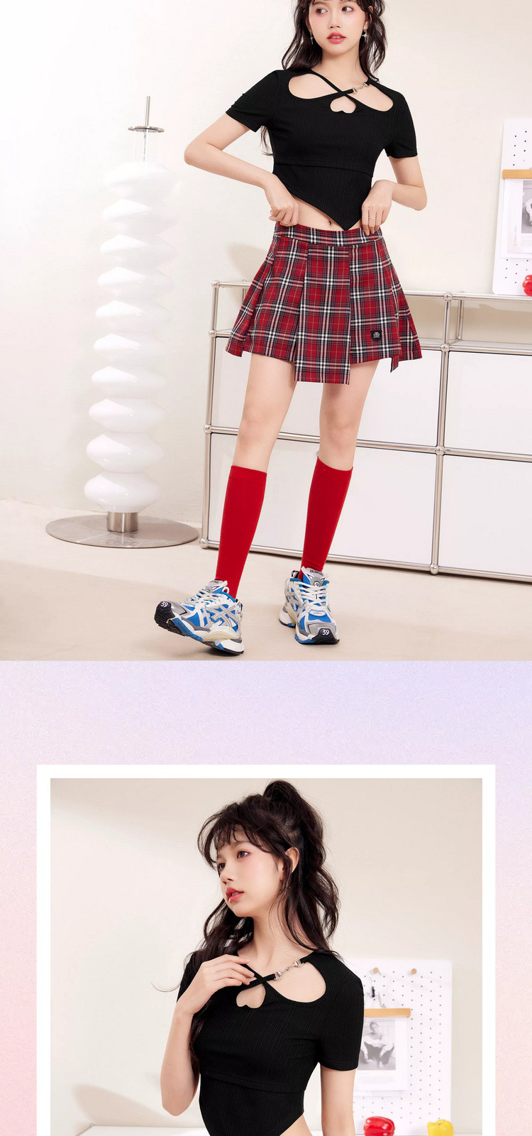 夏季辣妹不规则t正肩t恤女韩系chic别致显瘦上衣 206740
