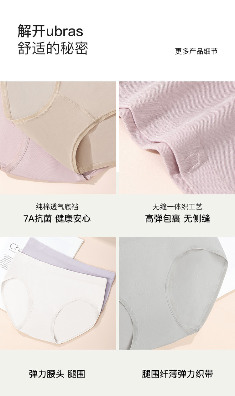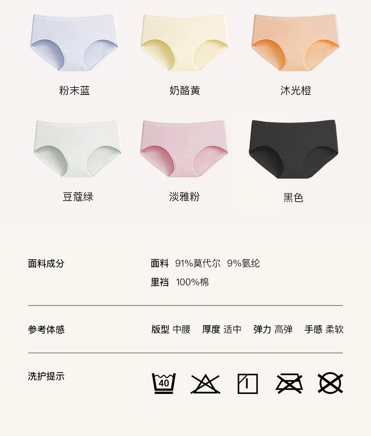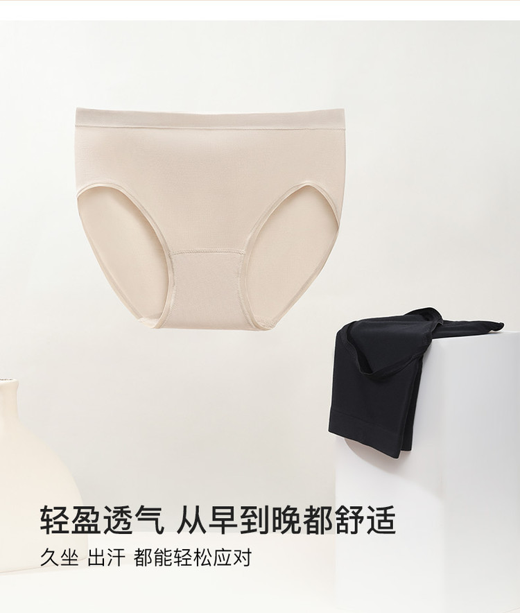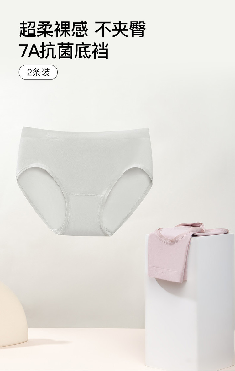 商品名称:【7A抗菌不夹臀】莫代尔纯棉底档中腰三角裤不卷边内裤女2条装 761920