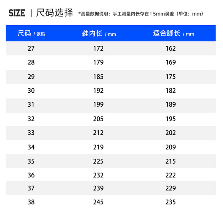 鞋内长(mm)