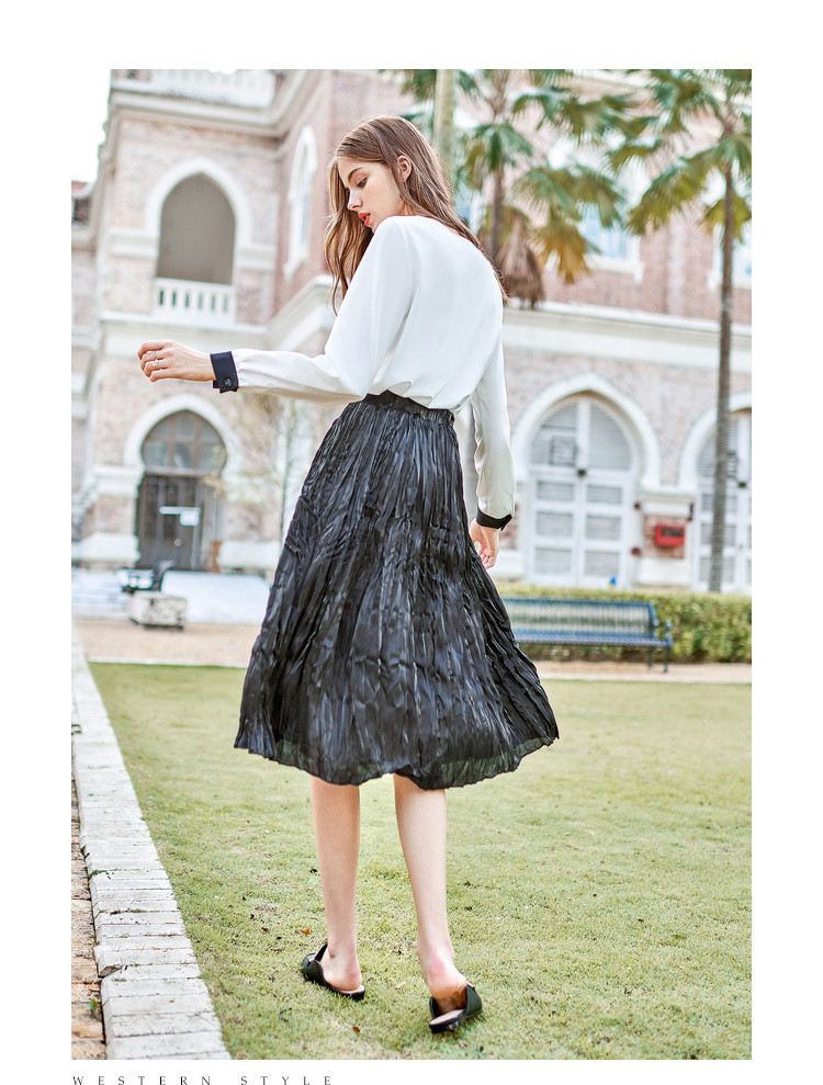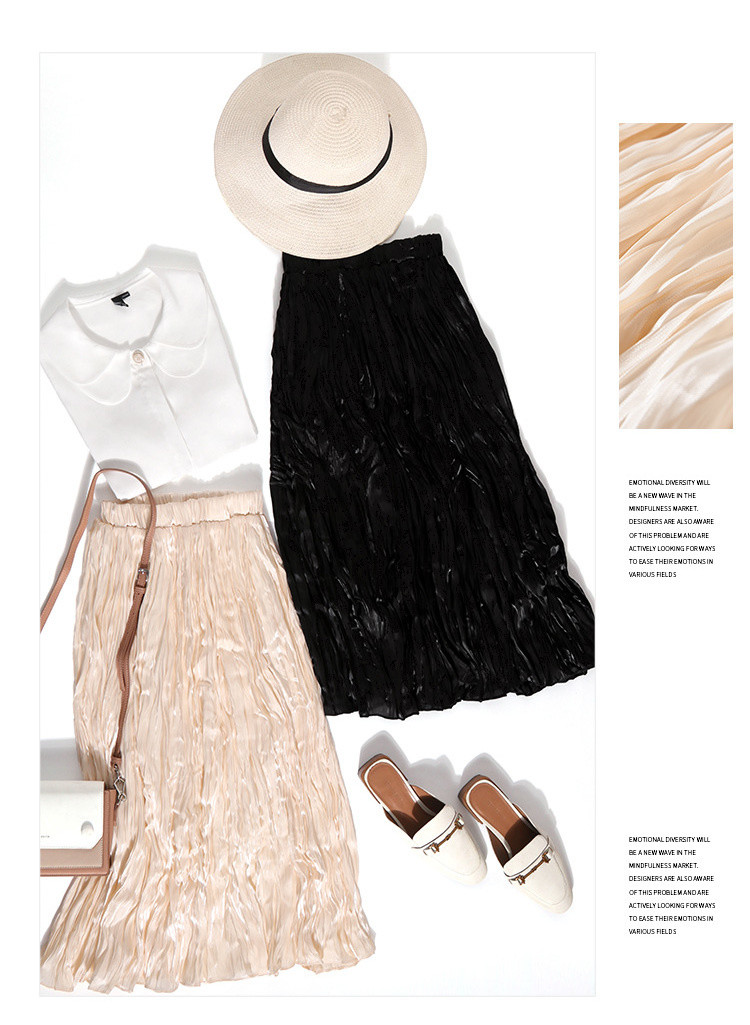 商品名称:夏装纱裙女小清新半身裙ins高腰百褶中长裙女 933204
