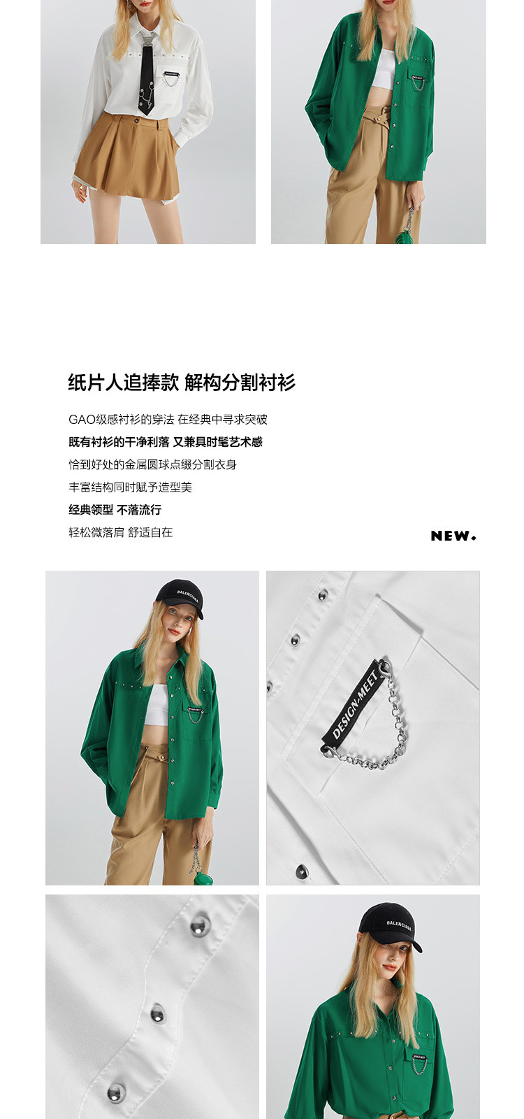 商品名称:结构设计春秋法式宽松长袖衬衫女小众温柔高级感白色上衣 318484