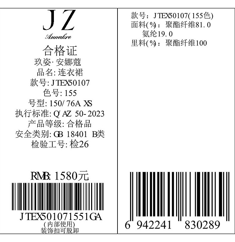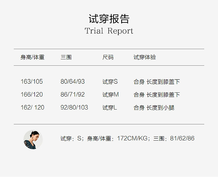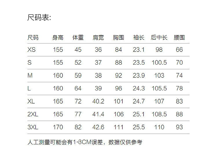 | 尺码 | 裙长(cm) | 肩宽(cm) | 腰围(cm) | 袖长(cm) | 胸围(cm) | 号型 |