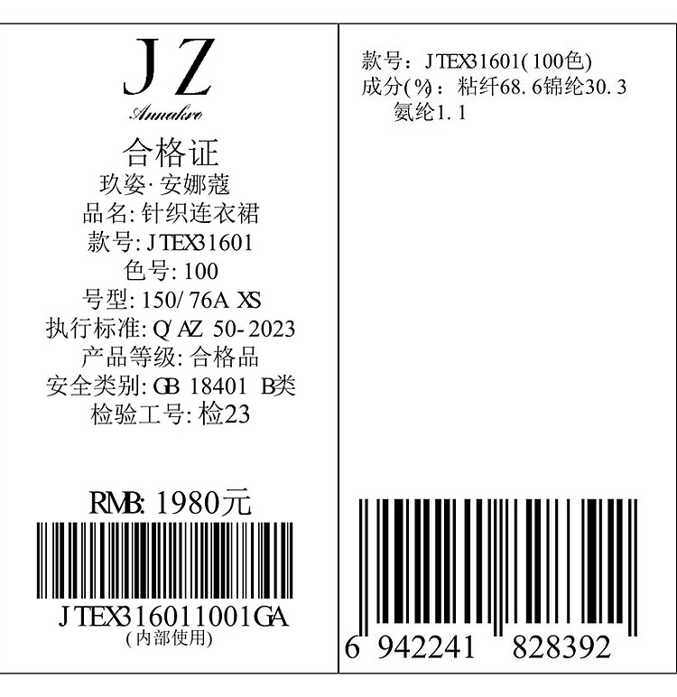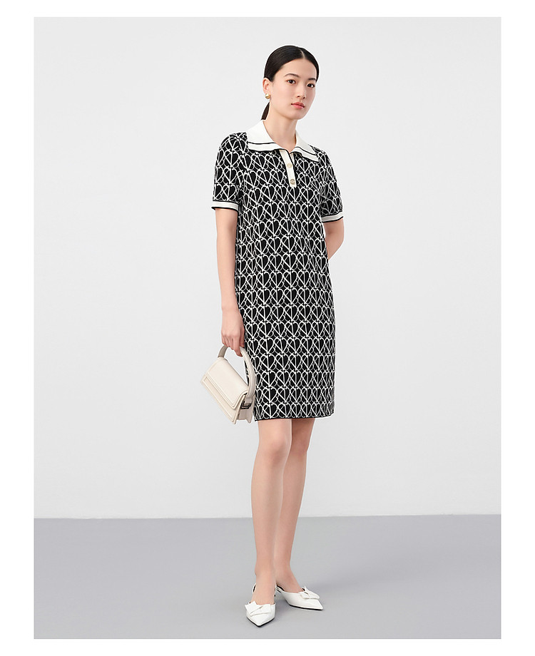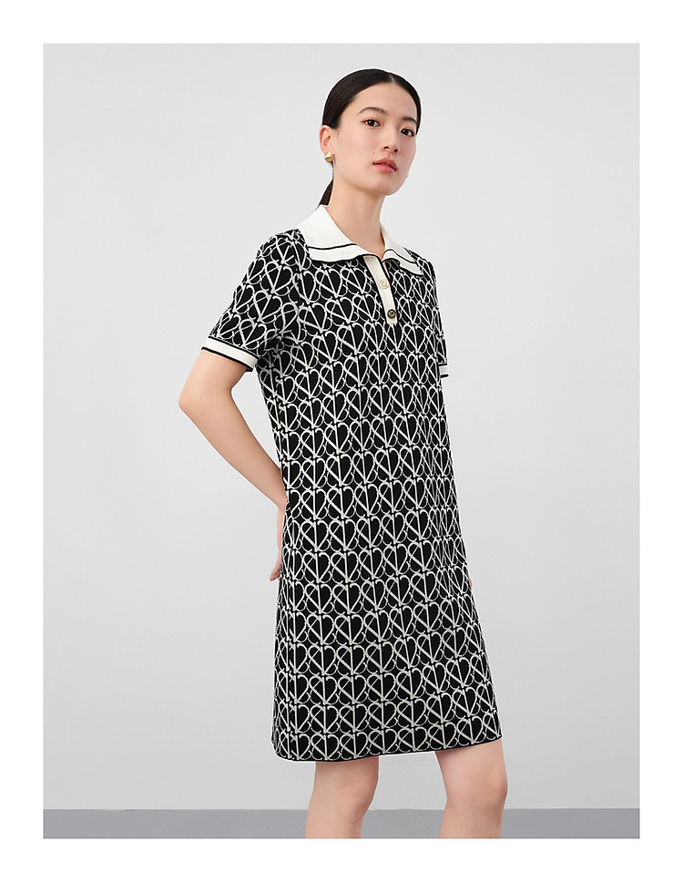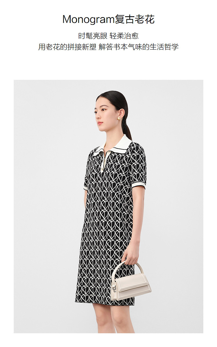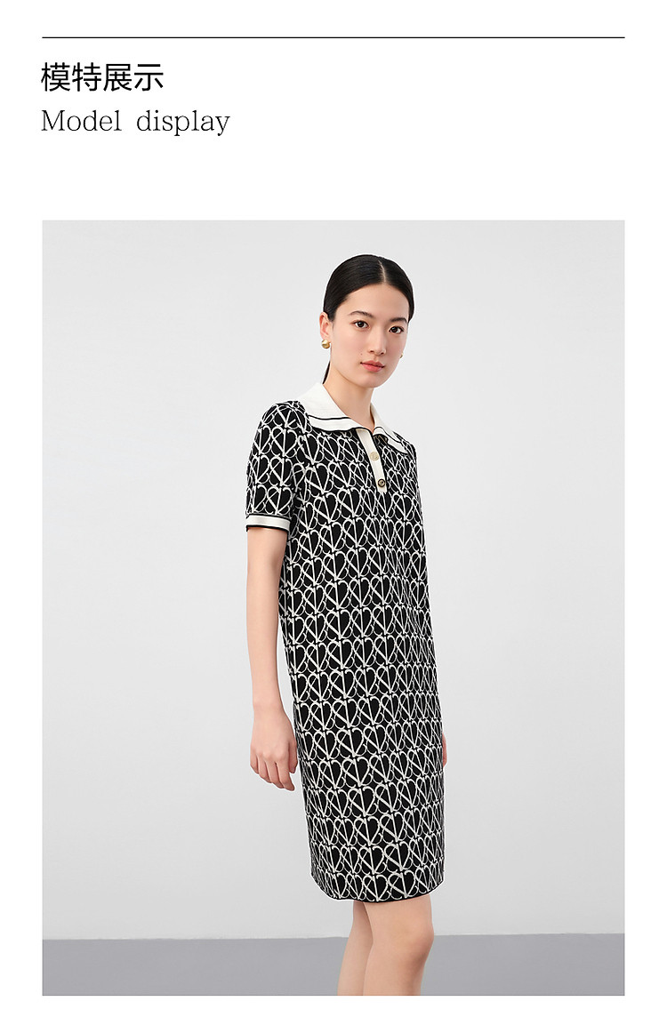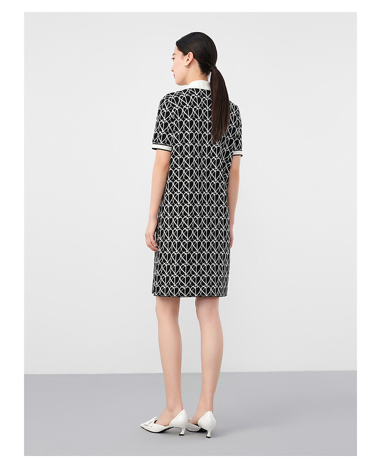 商品名称:玖姿旗下安娜蔻系列摩登老花撞色提花针织直筒连衣裙女 561164
