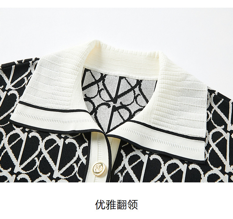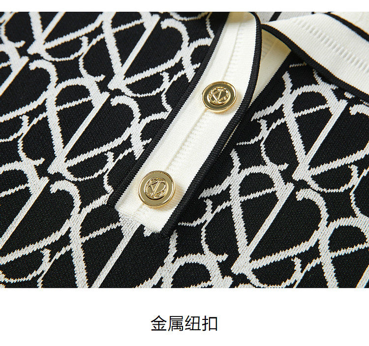 玖姿旗下安娜蔻系列摩登老花撞色提花针织直筒连衣裙女 561164