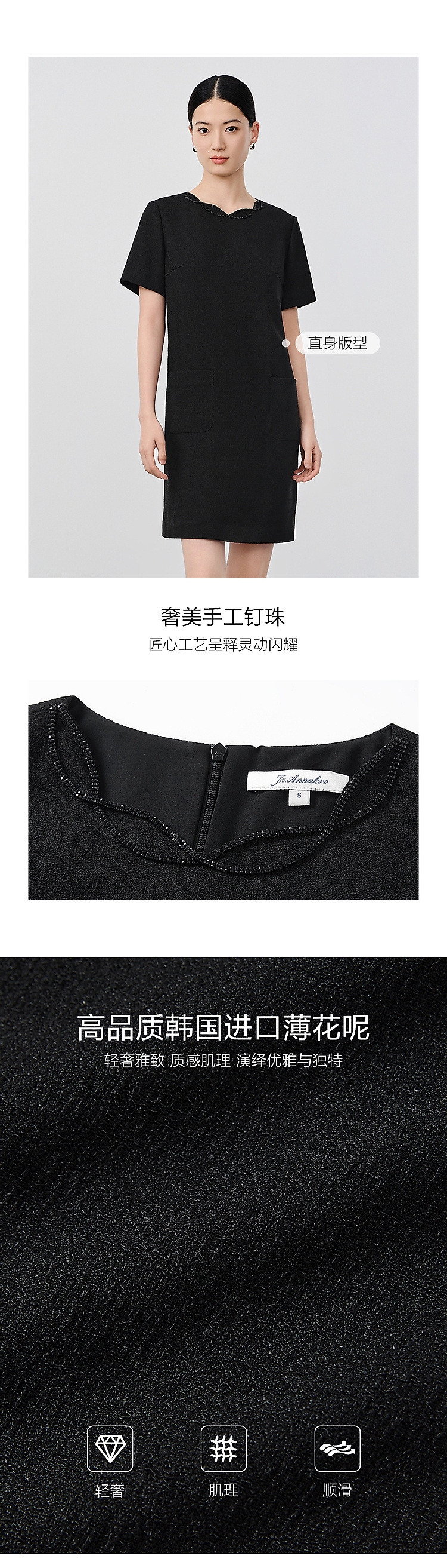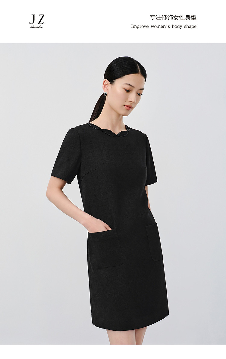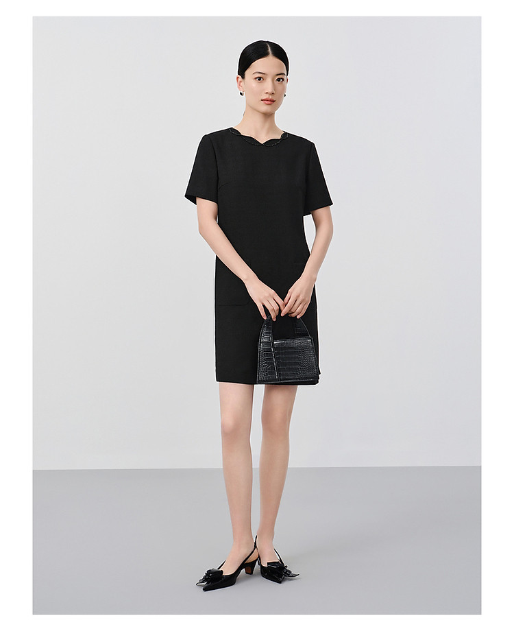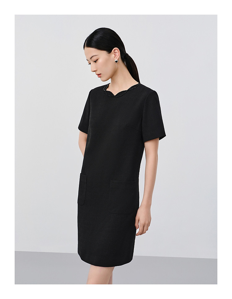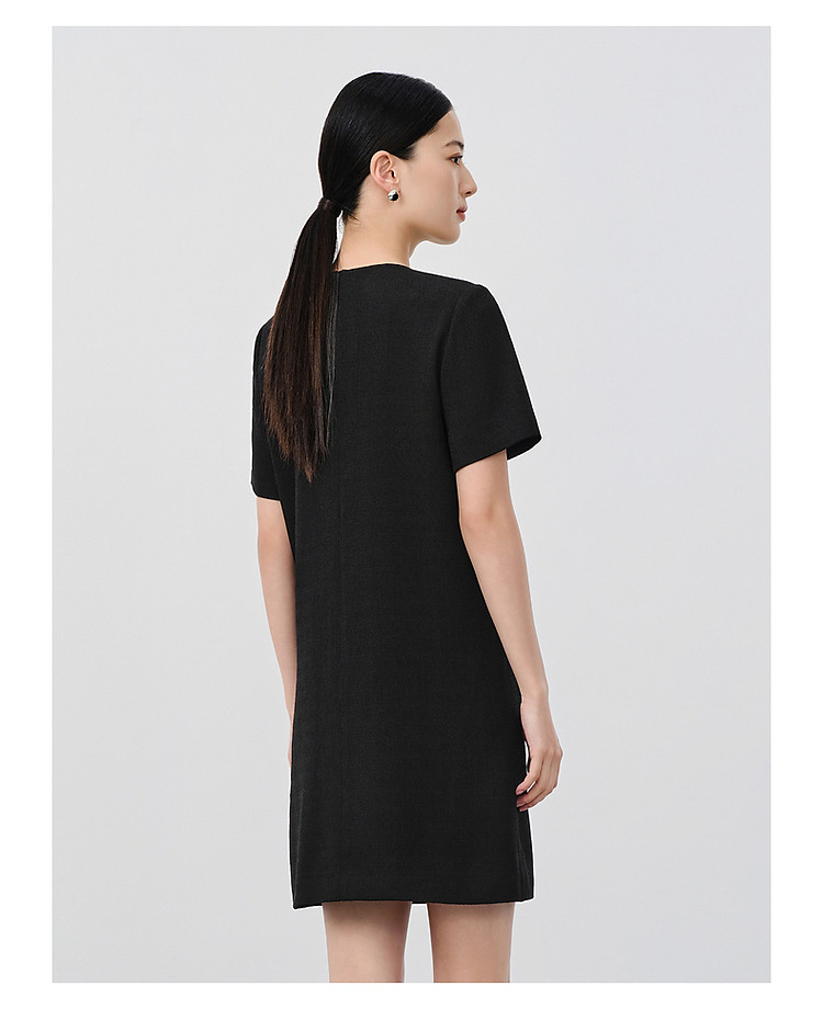 旗下安娜蔻系列优雅简约小黑裙薄花呢直筒轻礼服连衣裙女夏季 490828