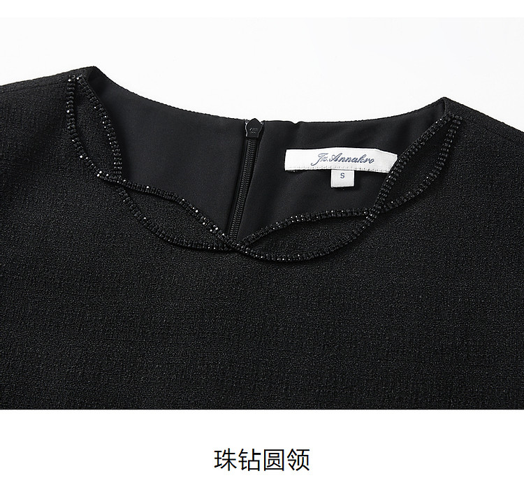 商品名称:旗下安娜蔻系列优雅简约小黑裙薄花呢直筒轻礼服连衣裙女夏季 490828