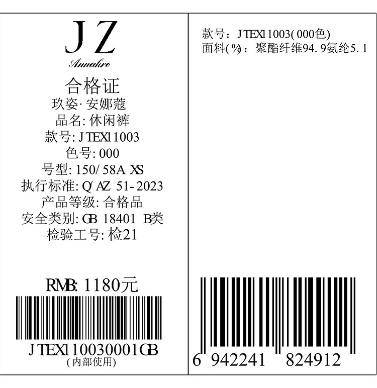 商品名称:玖姿旗下安娜蔻系列优雅淑女通勤绣花微喇休闲裤女夏季 126860