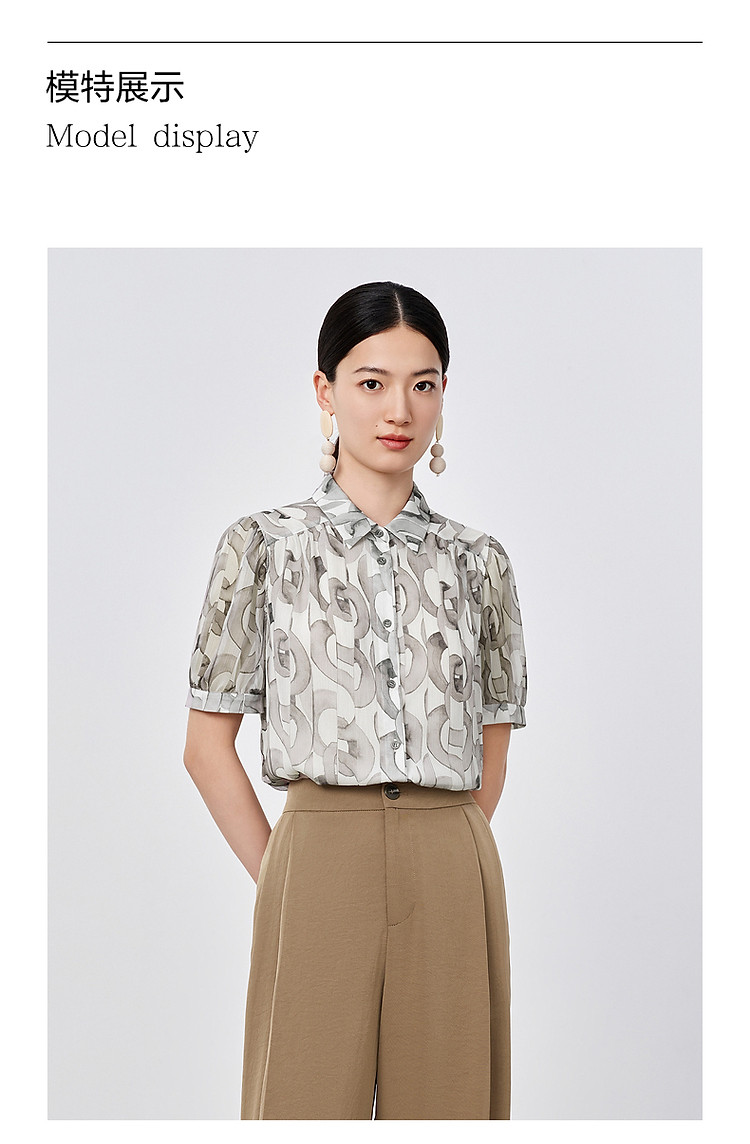 商品名称:玖姿旗下安娜蔻系列水彩手绘风通勤轻薄宽松衬衫女夏季 693132