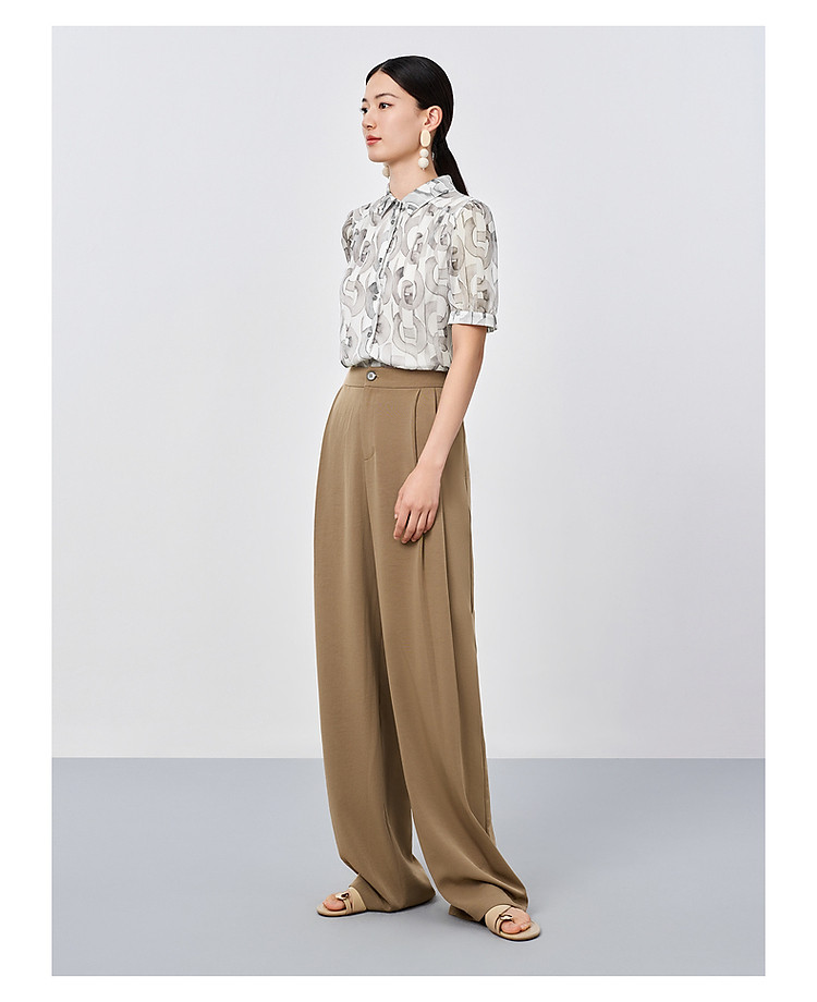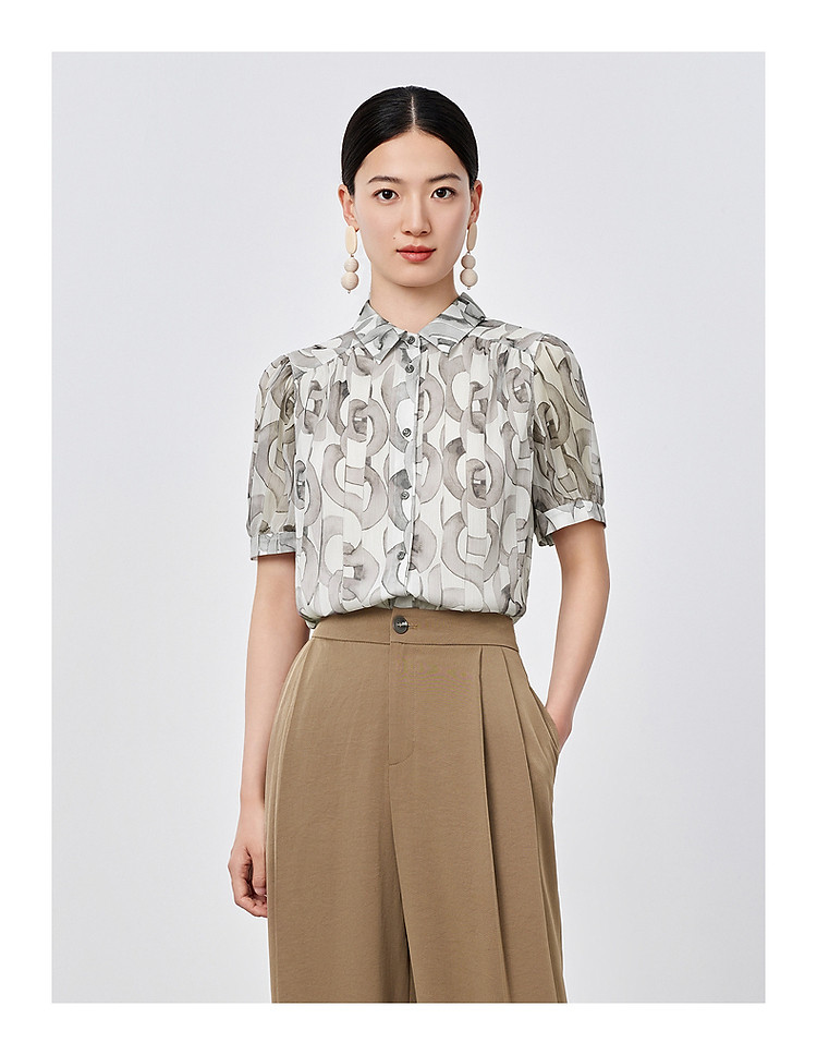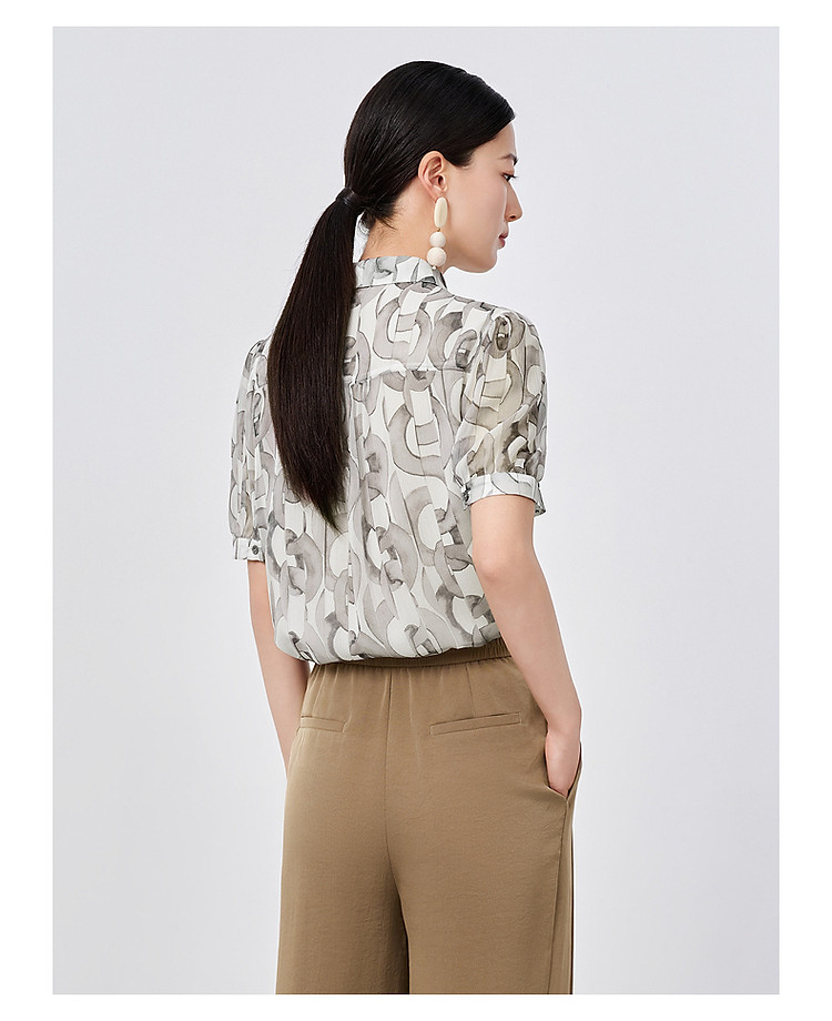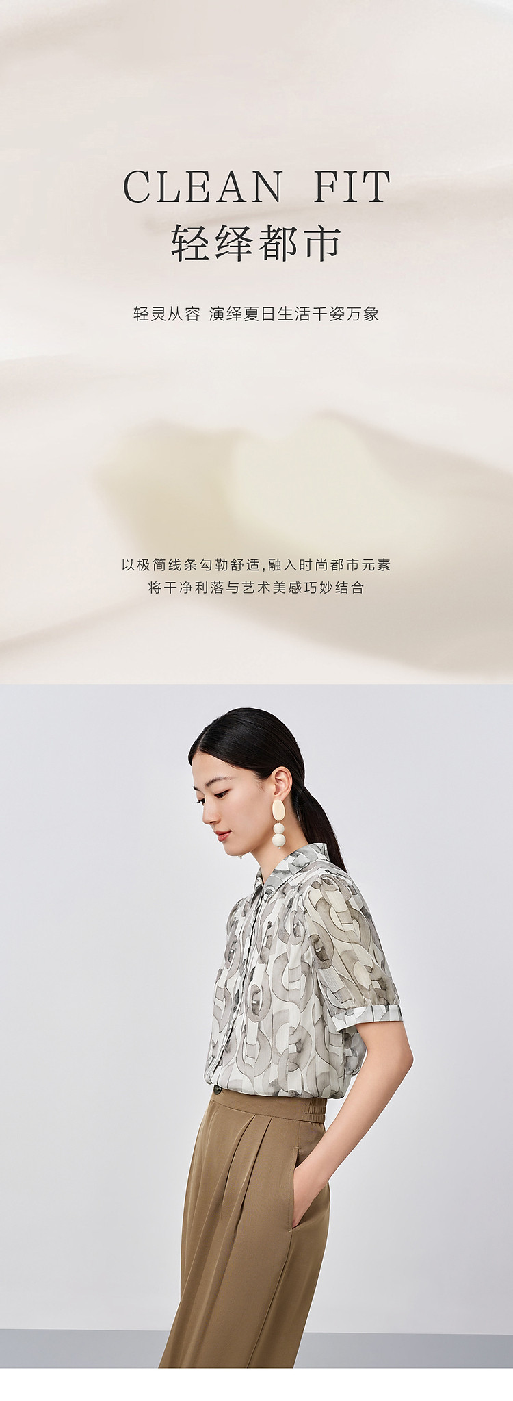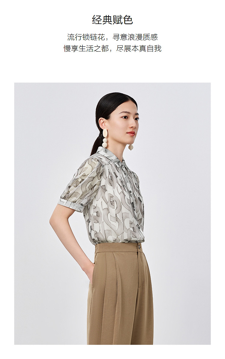 玖姿旗下安娜蔻系列水彩手绘风通勤轻薄宽松衬衫女夏季 693132