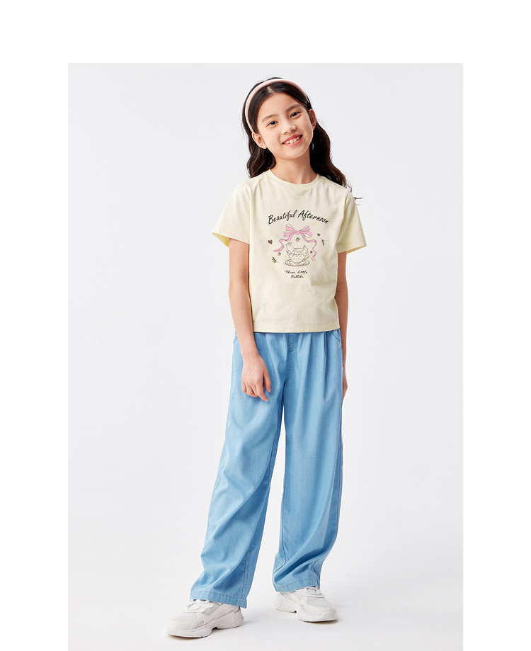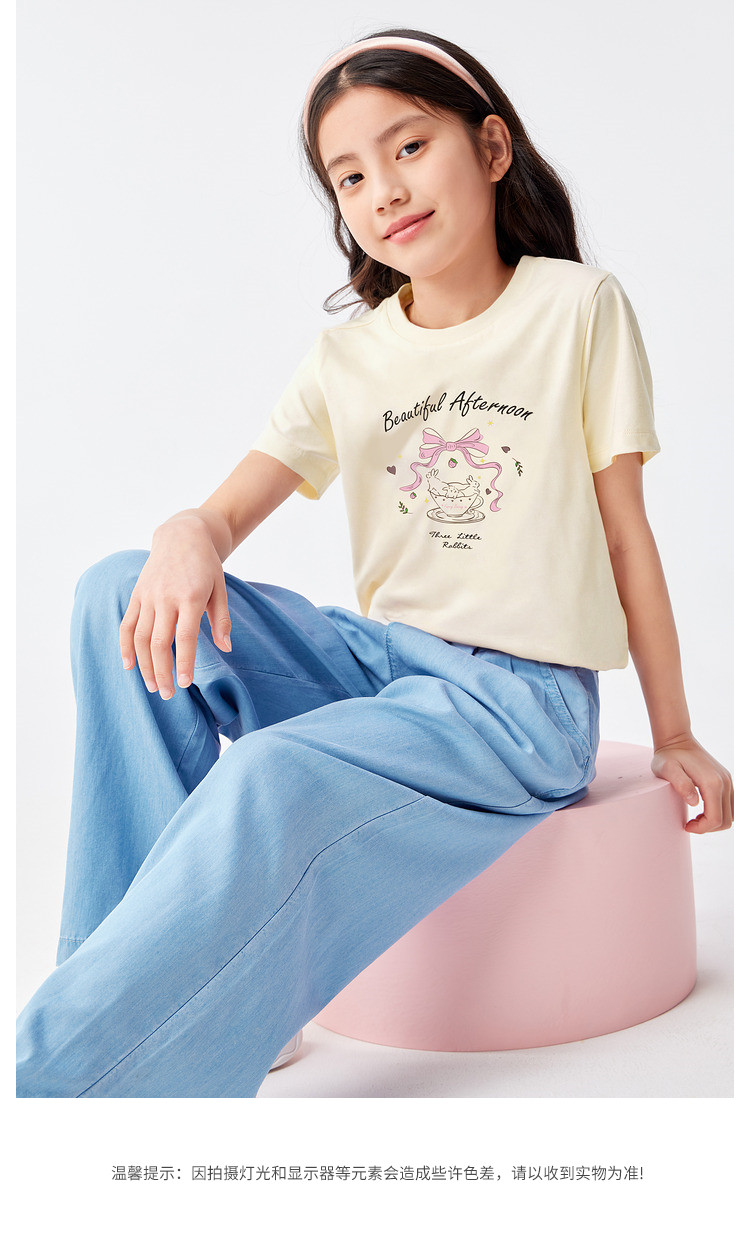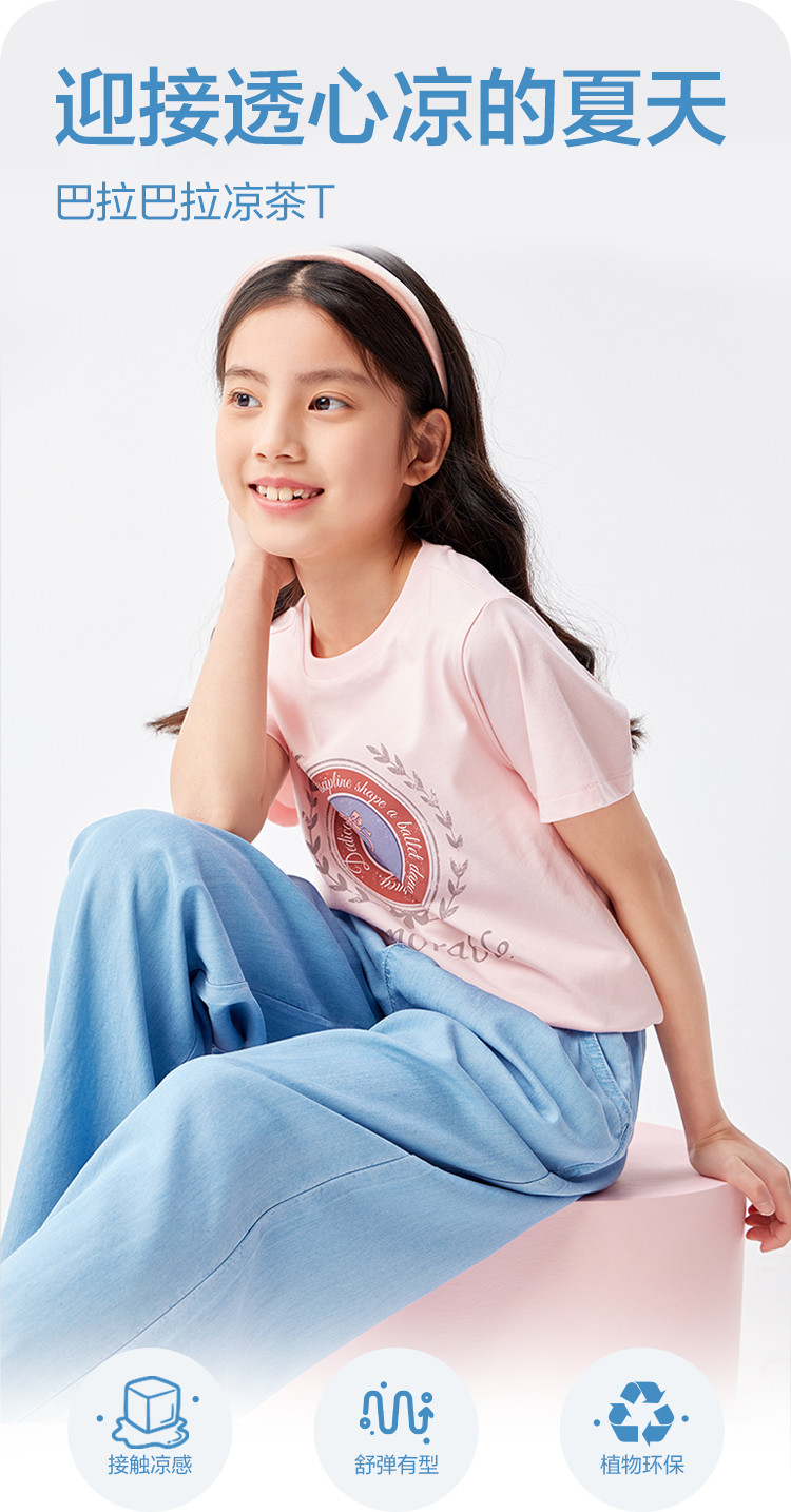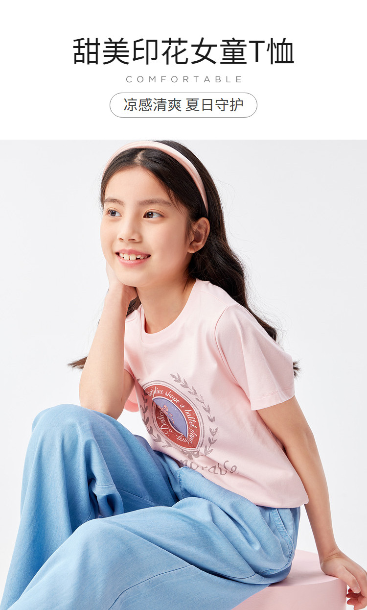 商品名称:凉感女童t恤儿童短袖夏季薄款大童透气印花打底上衣 231877