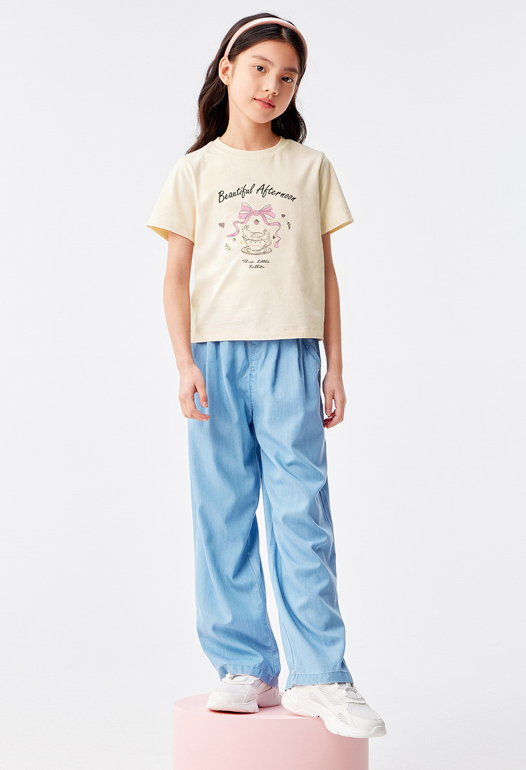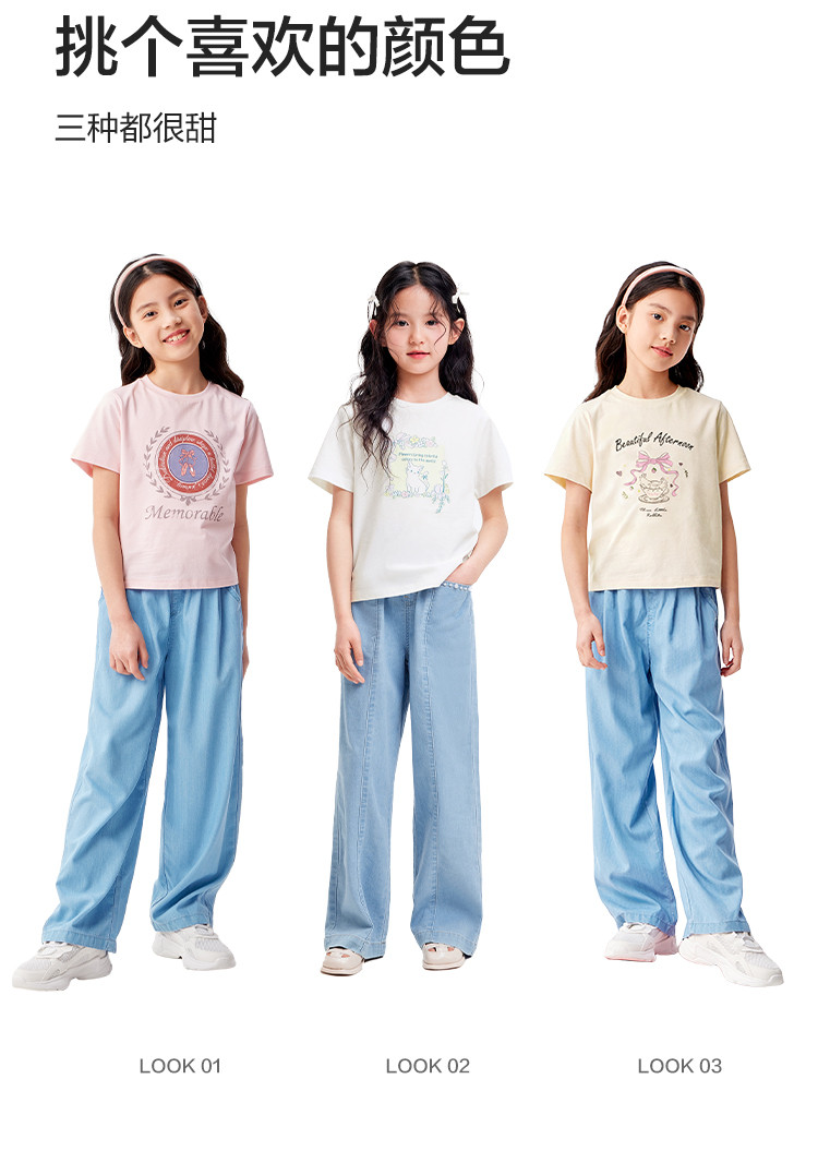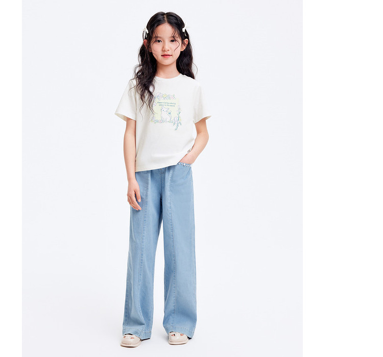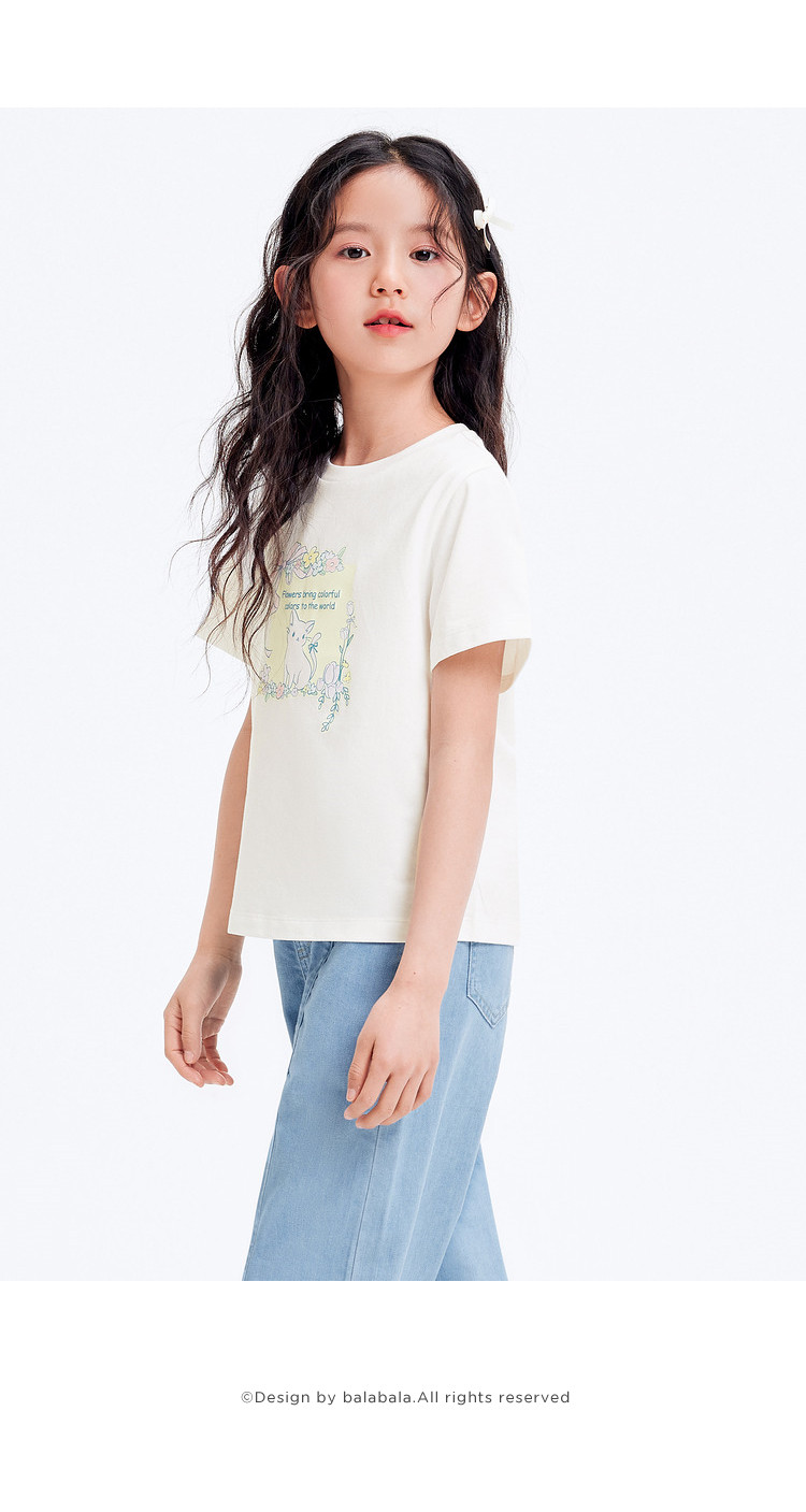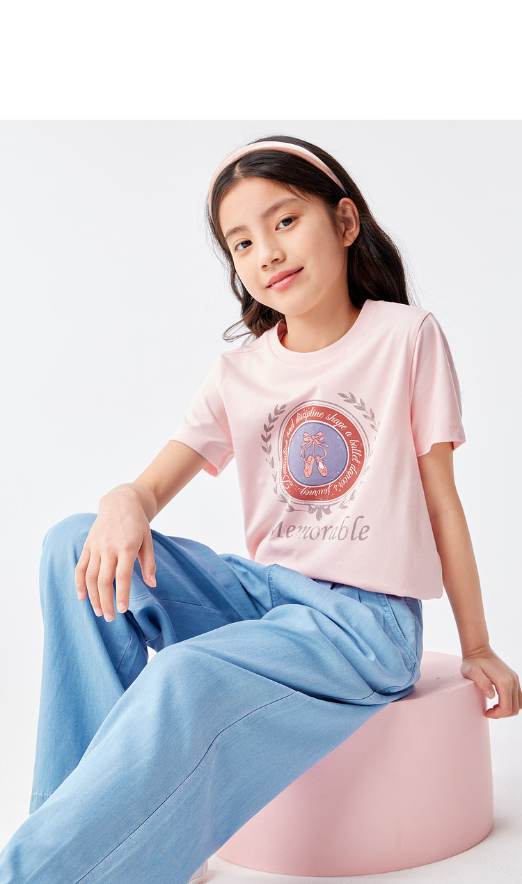 商品名称:凉感女童t恤儿童短袖夏季薄款大童透气印花打底上衣 231877