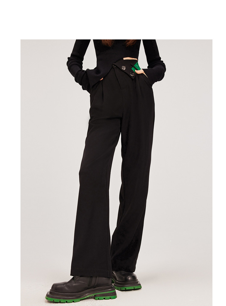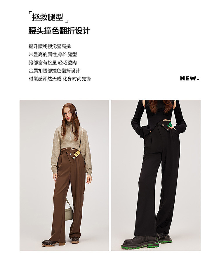 【翻折腰头】冬装垂感阔腿休闲裤女小众设计感宽松长裤 926356