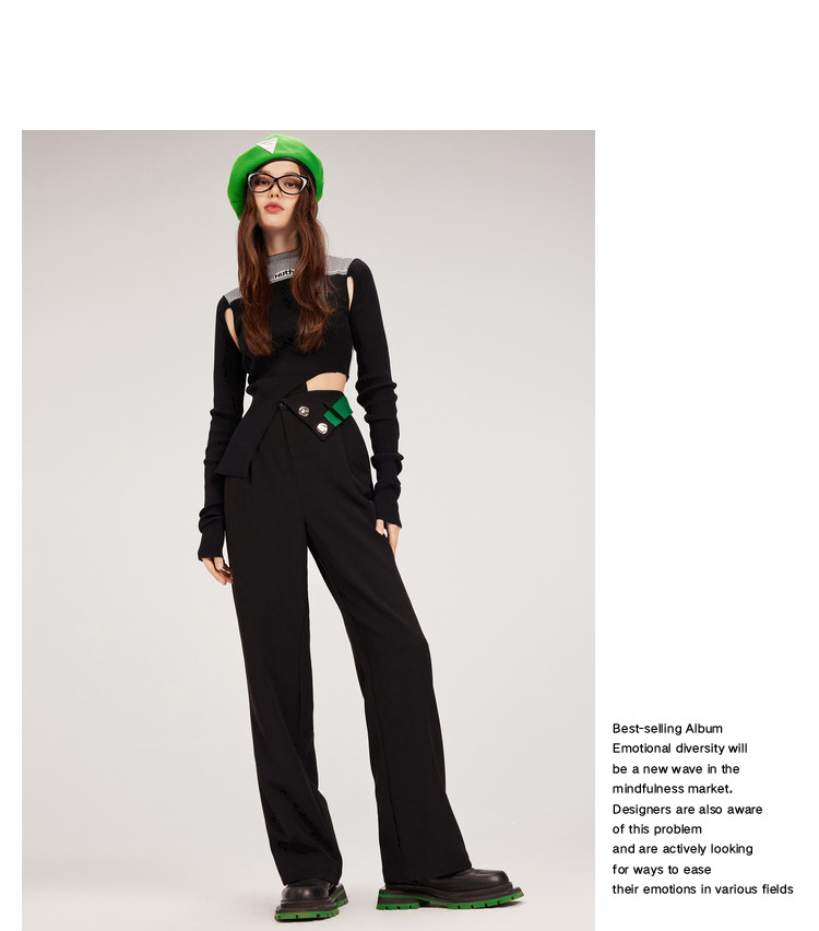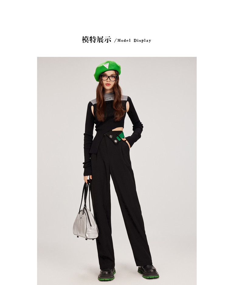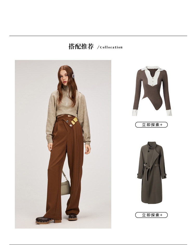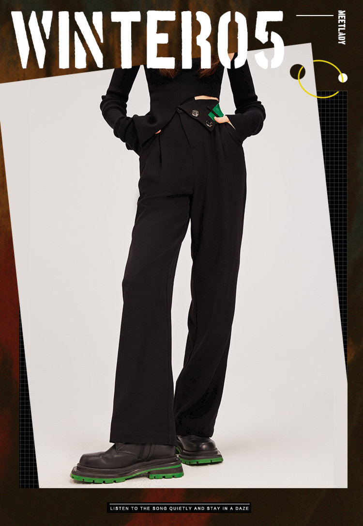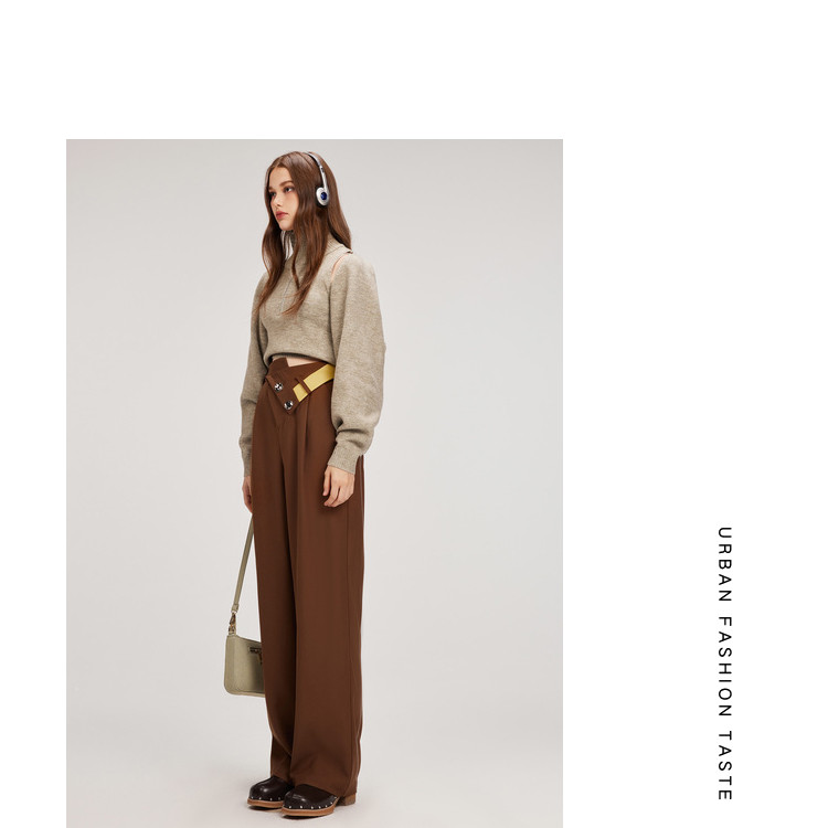 商品名称:【翻折腰头】冬装垂感阔腿休闲裤女小众设计感宽松长裤 926356