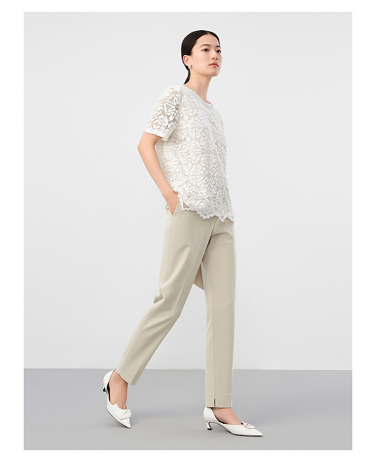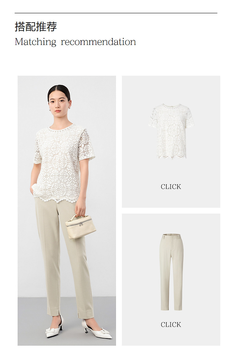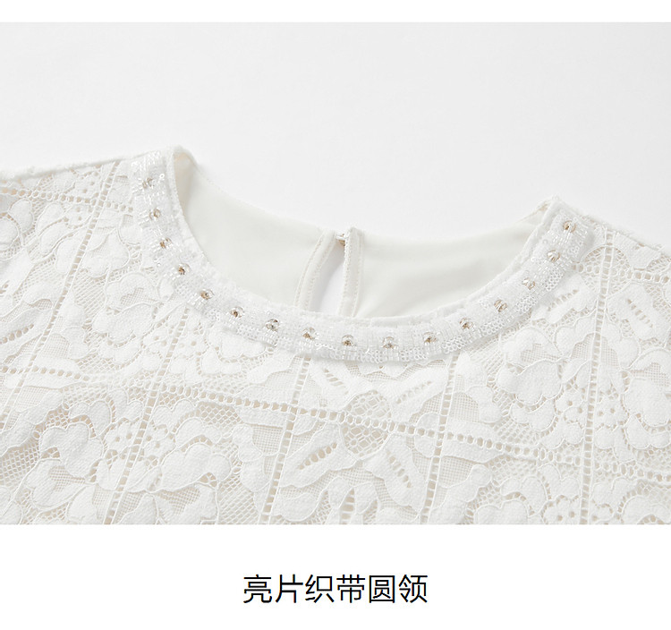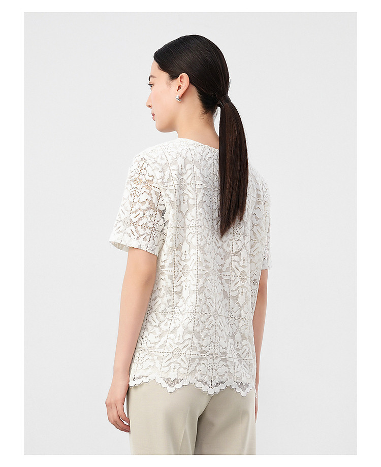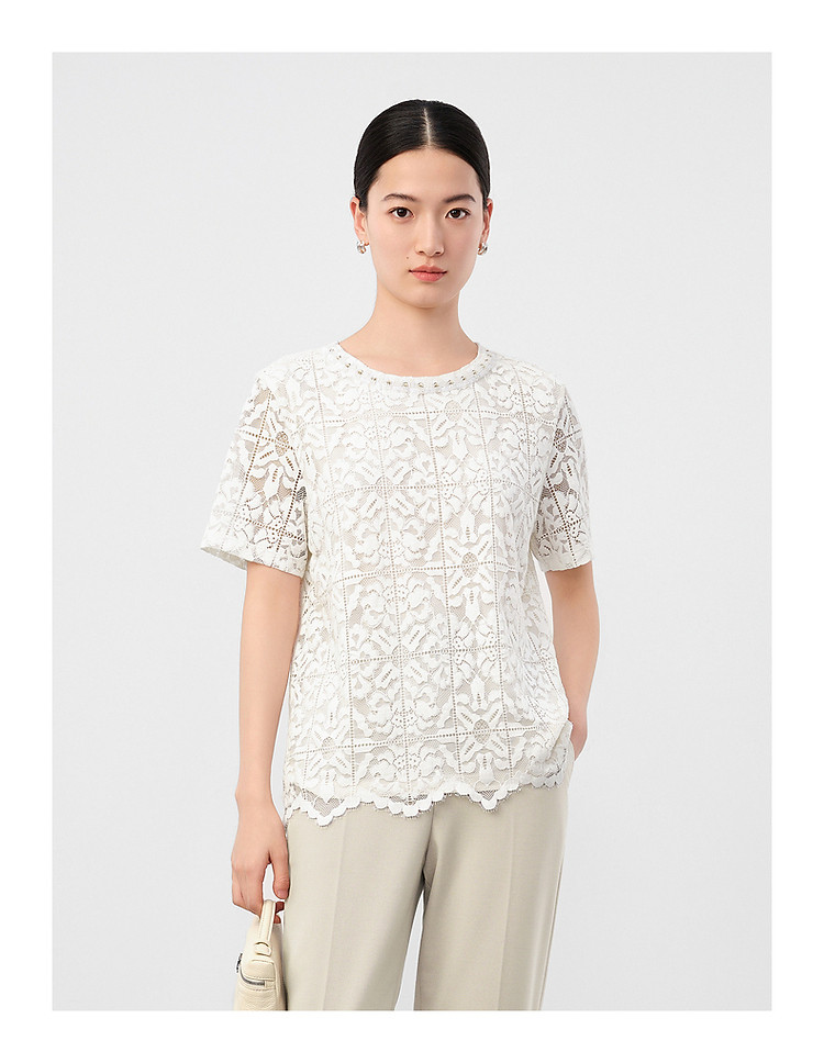 商品名称:玖姿旗下安娜蔻系列优雅轻熟风经典蕾丝钉珠花边宽松T恤女 033676