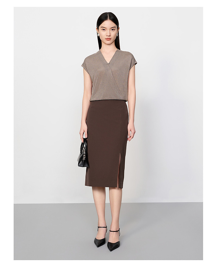 玖姿旗下安娜蔻系列轻熟风优雅开叉修身包裙半身裙女夏季 217996