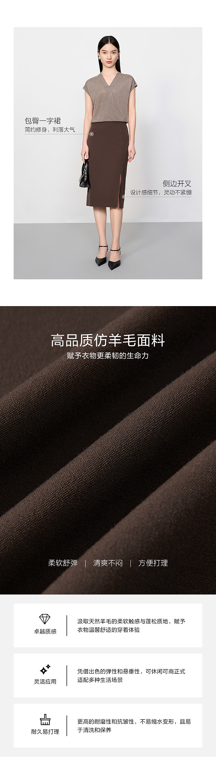 商品名称:玖姿旗下安娜蔻系列轻熟风优雅开叉修身包裙半身裙女夏季 217996