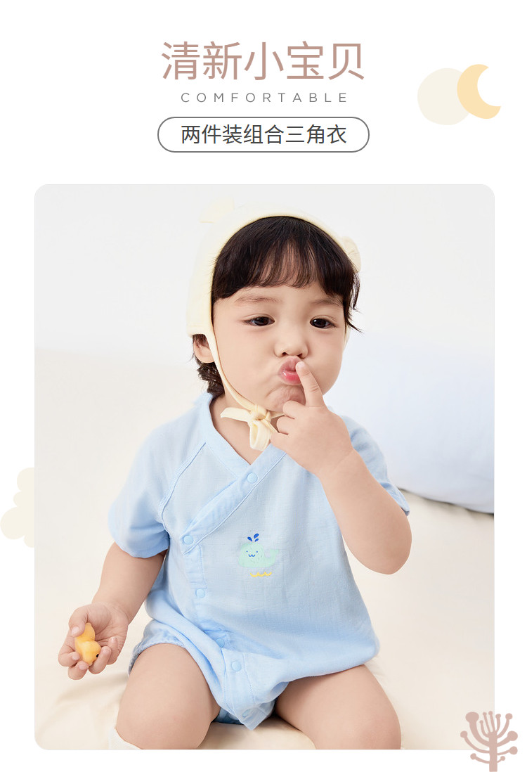 商品名称:抗菌新生儿衣服宝宝包屁衣男童女童2024夏装薄款三角衣两件装 282757