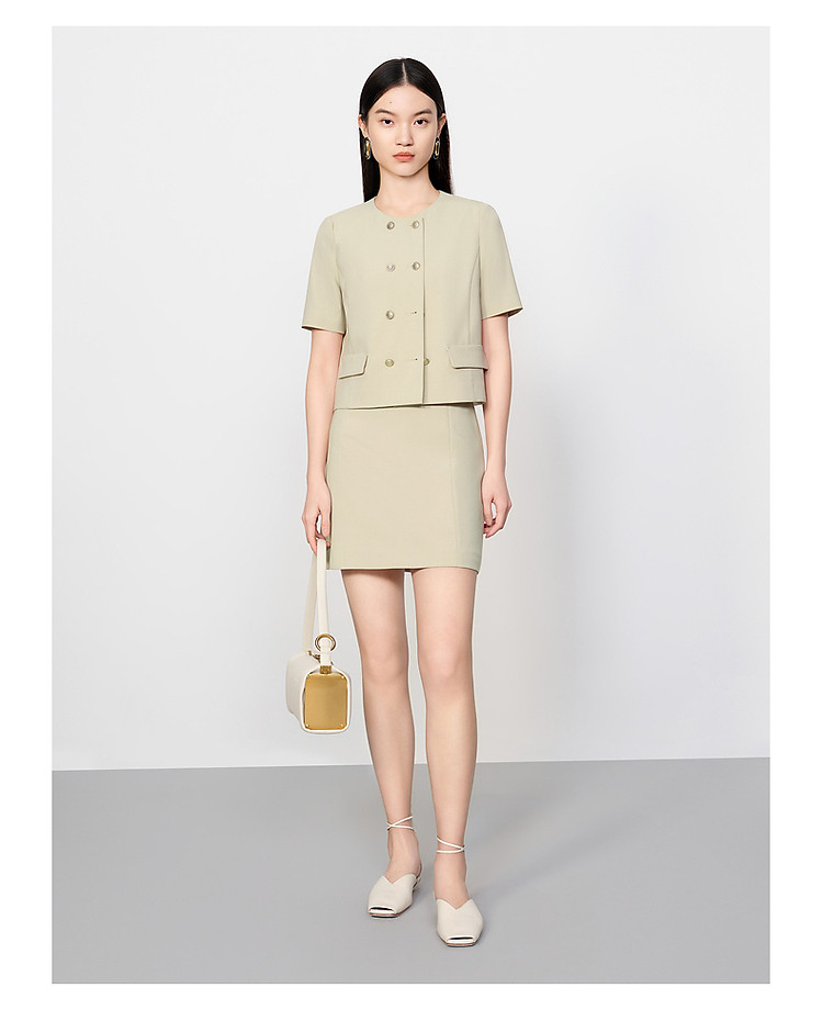【薄荷曼波】旗下安娜蔻系列双排扣优雅小香风短款外套女夏季新 669452