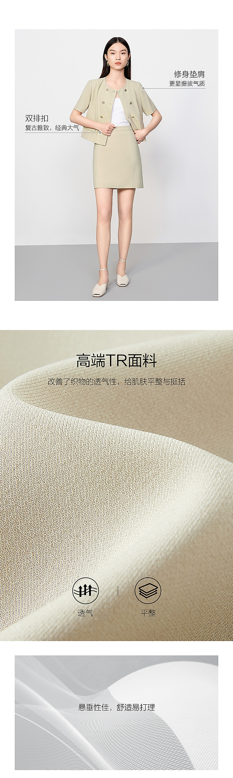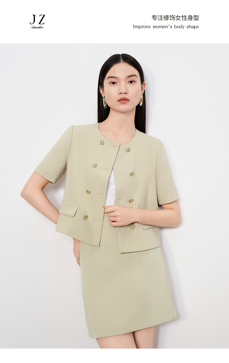 商品名称:【薄荷曼波】旗下安娜蔻系列双排扣优雅小香风短款外套女夏季新 669452